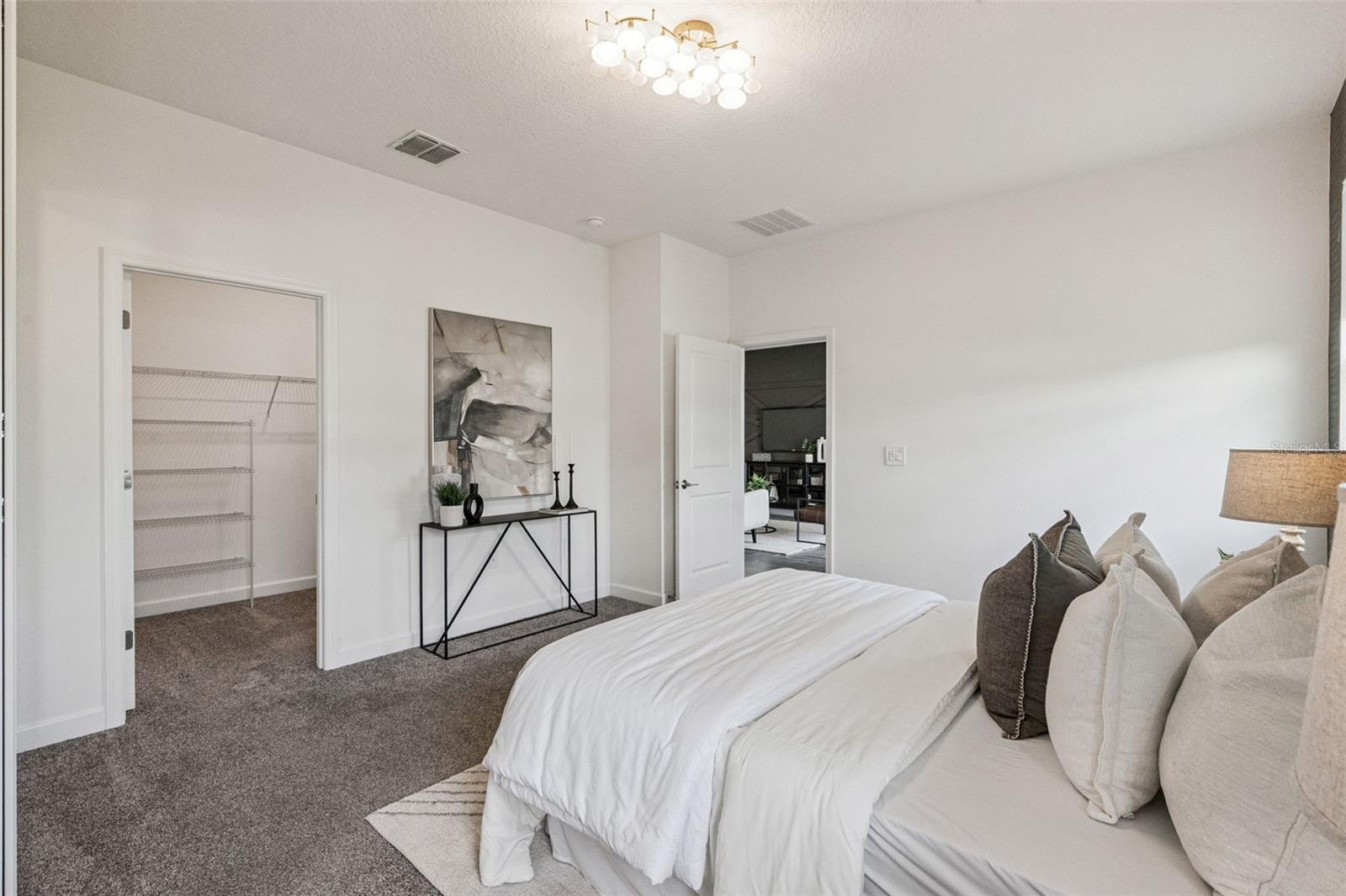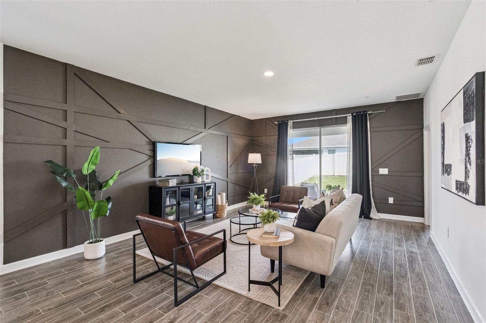 Welcome to 1751 Good Neighbor Loop, a Bourne II model by Lennar, ideally positioned on a tranquil pond-view homesite in the highly sought-after Tohoqua community. Built in 2022 and offering 2,068 square feet of thoughtfully designed living space, this home blends modern design, smart functionality, and resort-style surroundings in a way that feels both polished and effortless. Curb appeal makes a strong first impression with a brick paver driveway, manicured landscaping, and a welcoming covered front porch. Inside, the home opens to a bright, airy layout enhanced by neutral tile flooring, recessed lighting, and abundant natural light. The open-concept design draws your eye straight to the heart of the home—the kitchen—where 42” white cabinetry, quartz countertops, a large center island with seating, stainless steel appliances, and a walk-in pantry create a space that’s equally suited for entertaining and everyday living. The family room is a standout, featuring a custom modern accent wall that adds architectural interest and designer flair, while large sliding glass doors connect seamlessly to the covered rear patio—ideal for morning coffee and evening unwinding. This indoor-outdoor flow overlooks a spacious backyard, already partially fenced on two sides. At the front of the home, a flexible bonus room offers endless possibilities as a home office, gym, playroom, or media space. The split-bedroom floor plan ensures privacy, with the primary suite tucked away as a true retreat. The spacious bedroom is complemented by another custom accent wall and leads to a spa-inspired ensuite bath featuring dual sinks and a quartz vanity, a soaking tub, and a separate walk-in shower. Two additional bedrooms are generously sized and share a well-appointed full bath with modern finishes. A dedicated laundry room includes the washer and dryer, adding everyday convenience. The two-car garage goes above expectations with a NEMA 14-50 EV charging outlet and custom storage racks, perfect for today’s lifestyle needs. Additional highlights include window blinds throughout, smart home technology, a water softener, and a video doorbell. Beyond the home itself, Tohoqua offers a true lifestyle community: a resort-style zero-entry pool, expansive clubhouse, fitness center, tennis courts, playgrounds, dog park, and over five miles of scenic trails. These trails connect to the Twin Oaks Conservation Area, the Florida National Scenic Trail, and even provide kayak and canoe access to the St. Cloud Canal and Lake Toho. A Village Center and nearby K–8 and high school campuses further enhance long-term value and convenience. Centrally located near Florida’s Turnpike, US-192, Valencia College’s Osceola Campus, shopping, dining, and entertainment, this home checks every box—design, efficiency, location, and lifestyle. This is more than a home; it’s a place where everyday living feels intentional and easy to love.