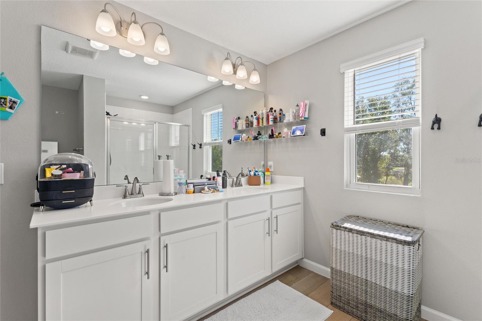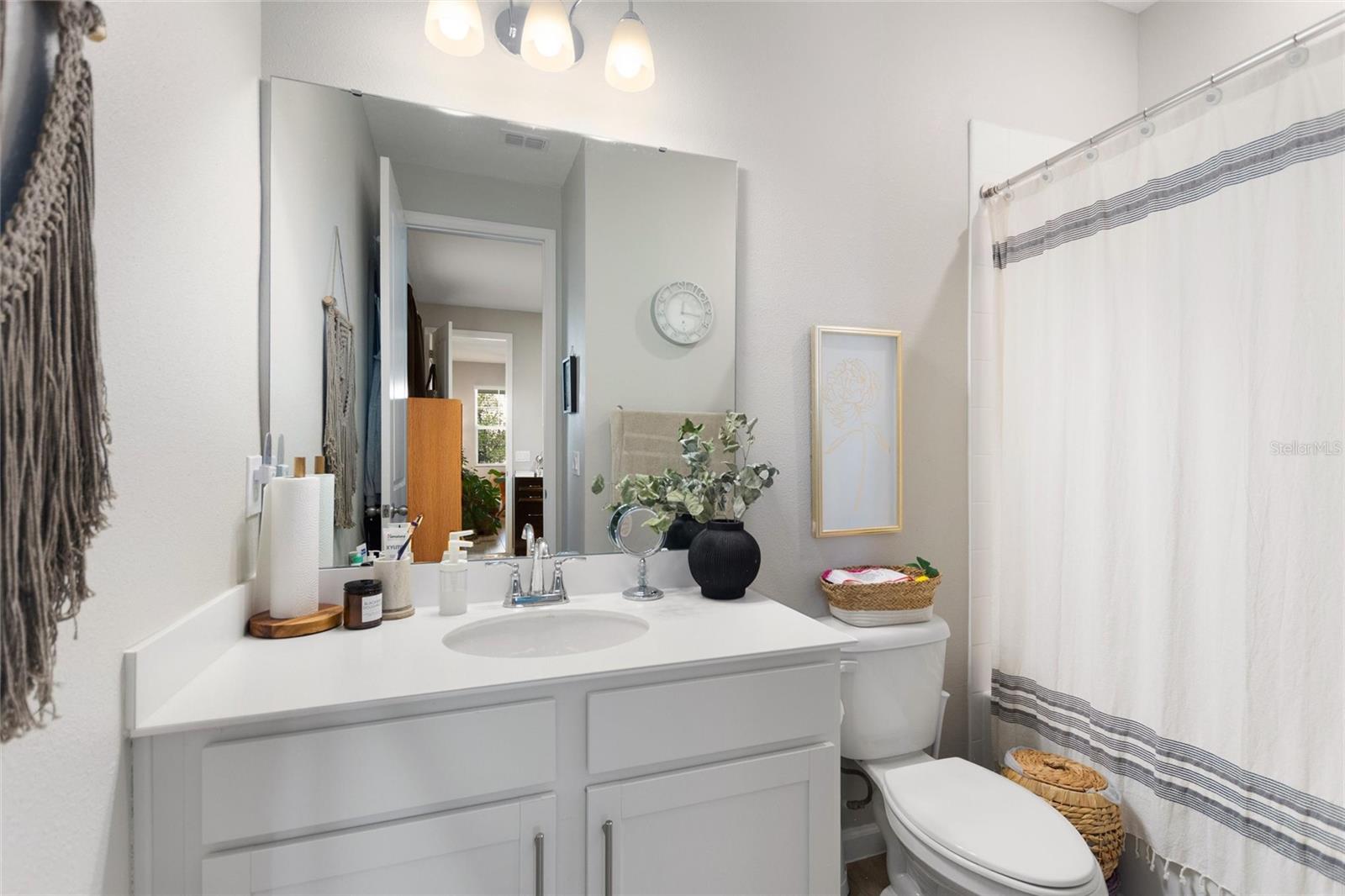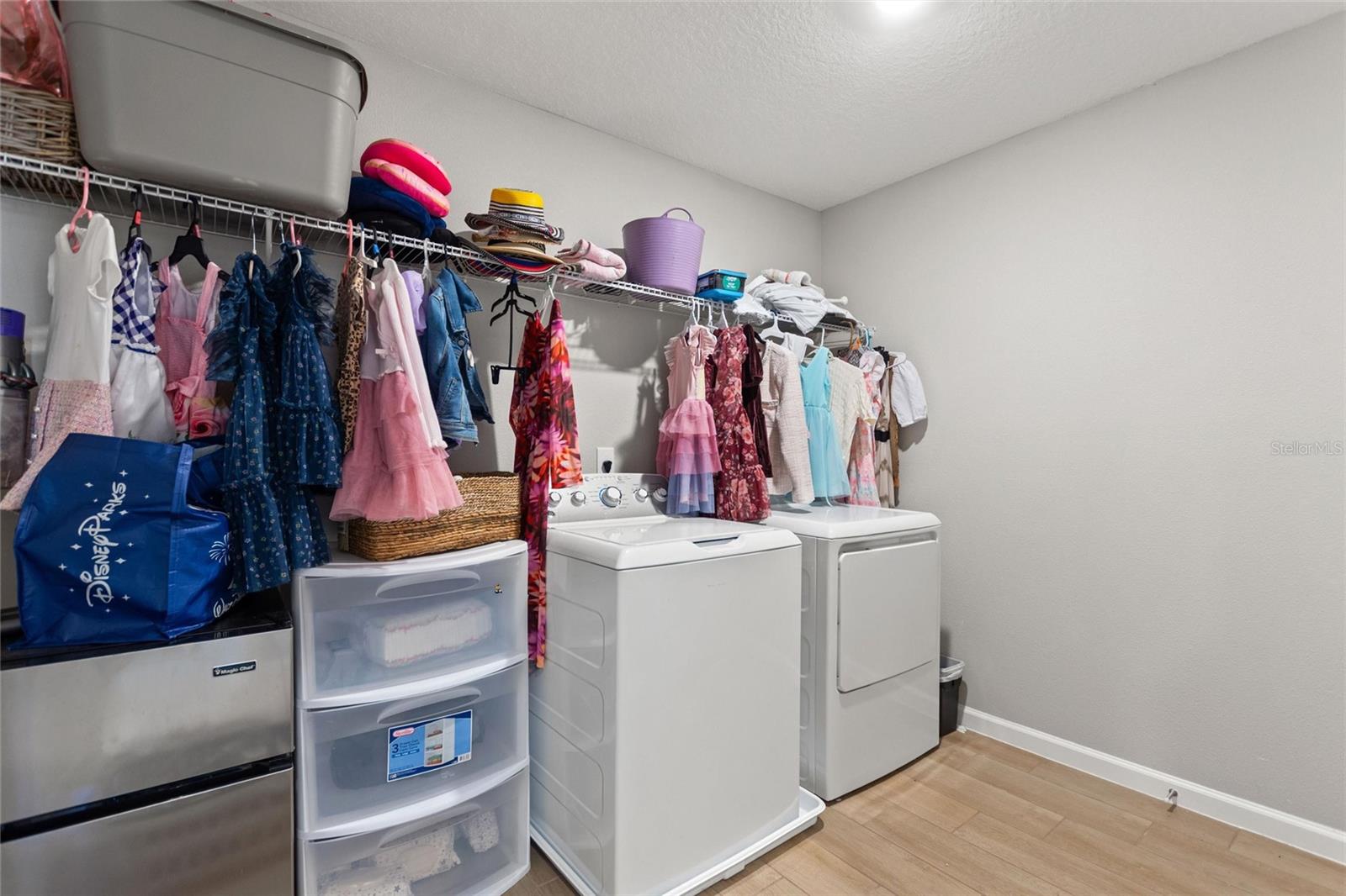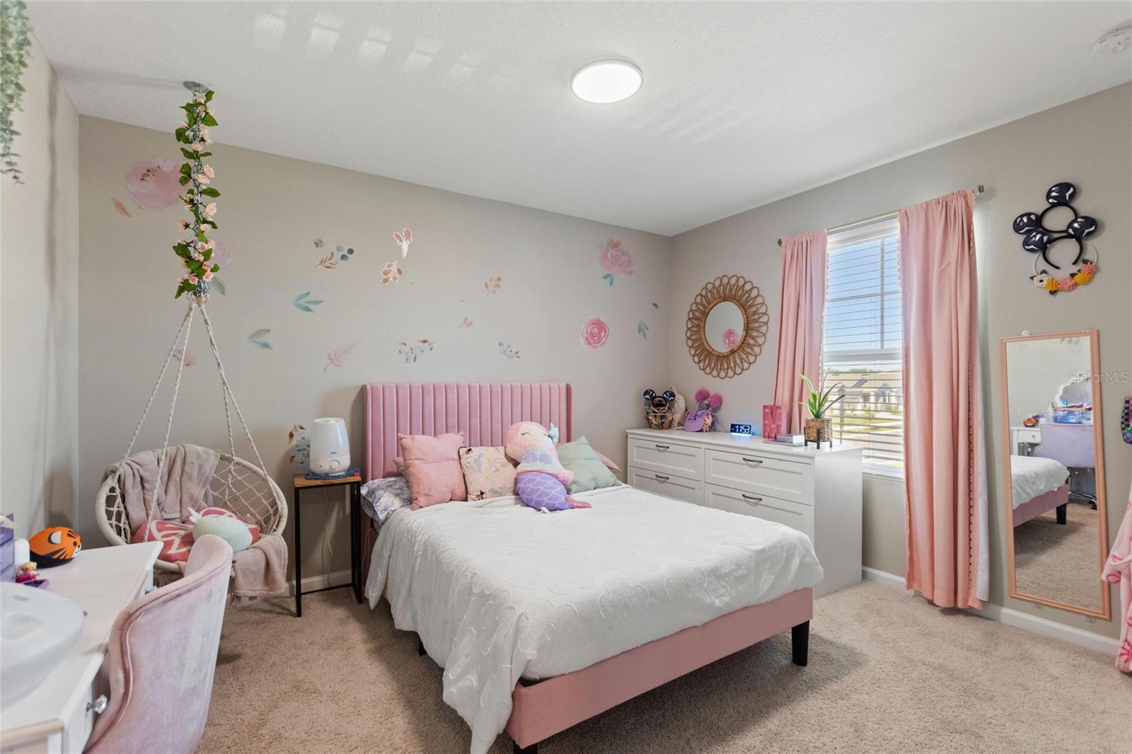 Fall in love with this spacious and thoughtfully upgraded 5 bedroom, 3.5 bath home situated on a premium lot in the highly desirable Seasons at Big Sky community in Kissimmee. This low HOA, no CDD neighborhood offers both value and lifestyle. The property provides excellent parking with a three-car garage, oversized driveway, and installed garage storage racks for added organization. The main level features a versatile in-law suite with an upgraded kitchenette and a private en suite bathroom, ideal for extended family, guests, or flexible living arrangements. A convenient half bath with a pedestal sink is also located on the first floor. The open-concept layout flows seamlessly from the upgraded kitchen complete with a center island, 42-inch white cabinetry, and quartz countertops into the dining area and living room, creating an inviting space for everyday living and entertaining. Sliding glass doors bring in abundant natural light and lead directly to the patio. Upstairs, the primary suite offers a private en suite bathroom and an exceptionally large walk-in closet. Additional guest bedrooms share a full bath, and a generous loft provides the perfect space for a home office, den, or bonus living area. Step outside to enjoy the private screened lanai and extended paver patio, ideal for relaxing in the Florida sunshine year-round. Additional features include a Ring doorbell, washer and dryer, and negotiable furniture. Residents of Big Sky enjoy access to a community pool, playgrounds, pickleball court, and walking trails. Conveniently located just minutes from Walt Disney World, major airports, shopping, dining, entertainment, and medical facilities, this home delivers an outstanding combination of comfort, location, and value. Schedule your private showing today as opportunities in this newly built sought after community are limited.