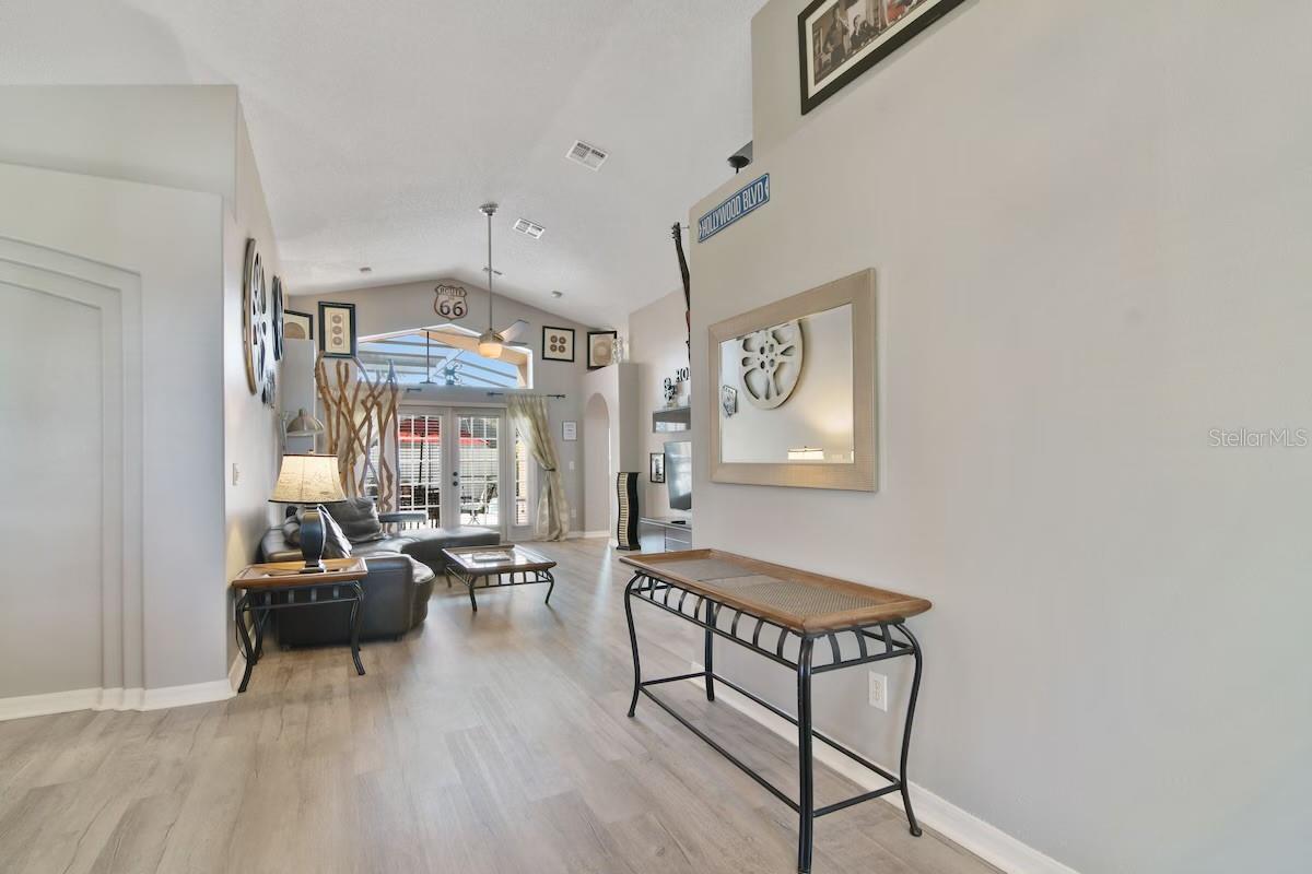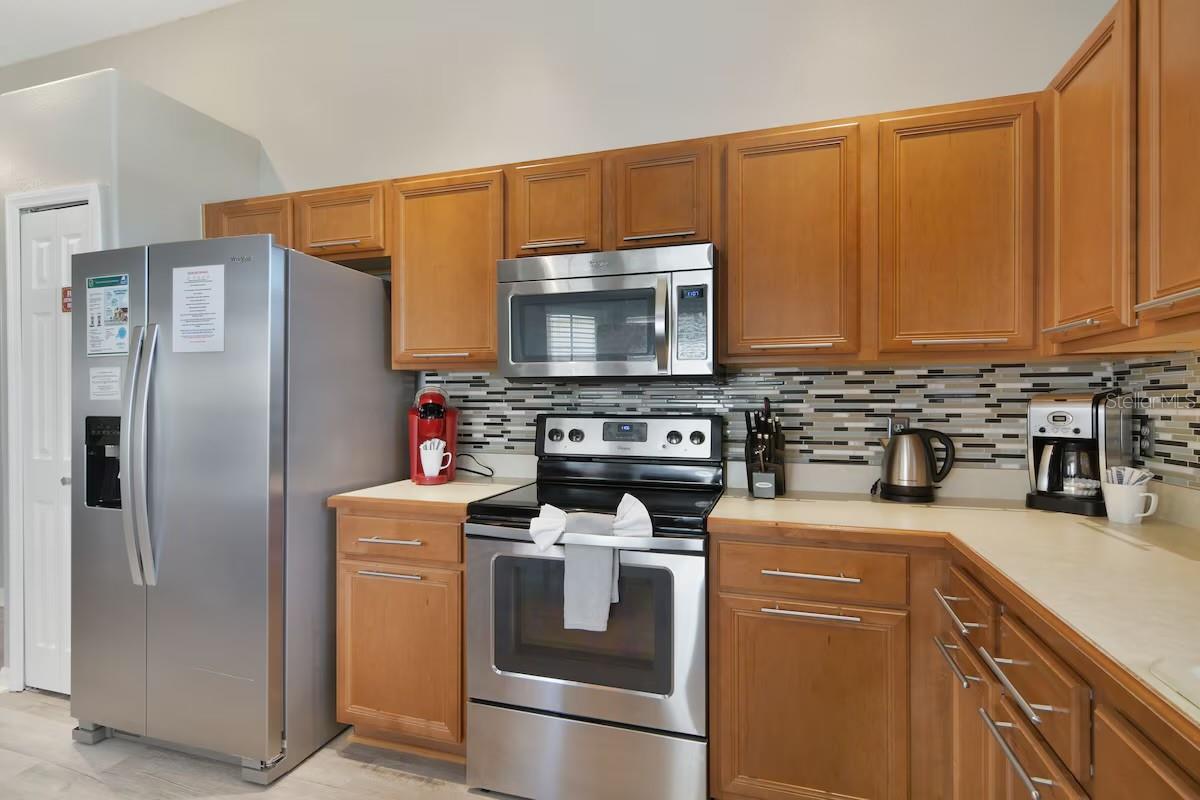 Wel Maintained Beautiful FULLY FURNISHED short-term rental home , This 4-Bed, 3-Bath home boasts an open floor plan with plenty of natural light. All living areas except kichen have Vinyl wood flooring, Kitchen has ceramic tile making cleaning a snap.Kitchen also has SS appliances and eat in area . Dining room is off by itself.The large family room with French doors leading to the covered lanai makes entertaining a breeze. The Master Suite with access to the lanai area has a garden tub plus a separate walk-in shower. Enjoy the crystal-clear SOUTH FACING POOL with a heated in-ground spa surrounded by privacy fencing for your ultimate swimming pleasure and total relaxation. The garage is now a Games Room where you can enjoy foosball,air hockey,or shoot pool. Roof was replaced in 2025, AC replaced 4-5 yrs ago. close to 192,I-4,and 429, make access to all attractions,shopping centers, and beaches very easy. Only minutes and a short 3 miles from Disney make this a house you want to call home.
