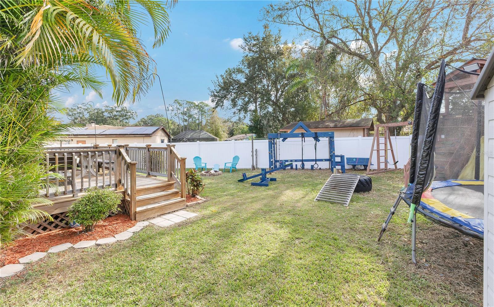 Seller is offering $10,000 towards closing costs. Welcome to your vacation style home that lives big, plays bigger, and was built for making memories. And did we mention there is no HOA! This 3-bedroom, 2-bath layout offers unique and rare amenities that will be difficult to find elsewhere. You’ll love the endless kitchen counter space and large center island, and enjoy having the formal living room separate from the large family room, which is perfect for a movie room, game room, home gym, playroom, or a dedicated work-from-home zone. The flow is comfortable, functional, and ideal for everyday life and entertaining. Step outside and you’ll see what makes this property truly special: a backyard destination that feels like your on vacation everyday. Cool off in the pool, host unforgettable get-togethers on the massive 21’ x 20’ party deck with railings and a tree swing, and enjoy evenings around the fire pit. The two-story playground is complete with a seesaw, sandbox and swings, plus a separate ninja course and trampoline, this yard is seriously designed for fun. Need storage, hobby space, or a serious workshop setup? You’ve got it: two sheds plus a large workshop with electric, a portable A/C unit, and a large tool box for tools. This space is perfect for projects, a home business workspace, or your next big idea. If you’re looking for a home with versatile interior space and a backyard that stands out from everything else on the market, look no further and schedule a showing today. *** New HVAC system inside and out completed in 2023. *** New roof installed in 2022. *** Solar panels will be paid off at closing so the buyer will be able to enjoy very low cost electricity.