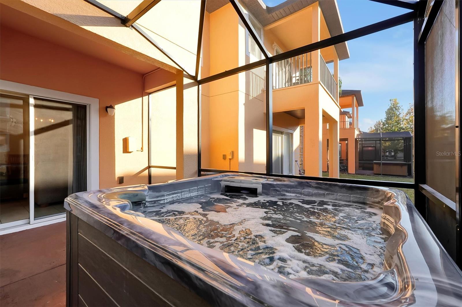 Stunning 3 bedroom 3 bath townhome in the very popular gated community of Regal Oaks. Minutes from Walt Disney Resort, restaurants and shopping. Open main floor with granite counter top kitchen nd powder room. One bedroom and full bath on 1st floor. Sliding doors to over screened lanai with heated hot tub. Second floor with 2 ensuite bedrooms and baths. Primary bedroom with lovely open balcony. Very convenient laundry on 2nd floorTop of the line amenities with resort style zero entry pool, water slide, pool bar and cabanas. Very open and private view. State of the art Clubhouse with restaurant, lounge, games room, fitness center, convenience store and tennis court. This stunning townhome is an investment opportunity in the highly sought-after gated community of Regal Oaks at Old Town. With professional property management already in place, it offers a hassle-free ownership experience and rental potential. Please note, this property is specifically tailored for investors seeking a rental asset.