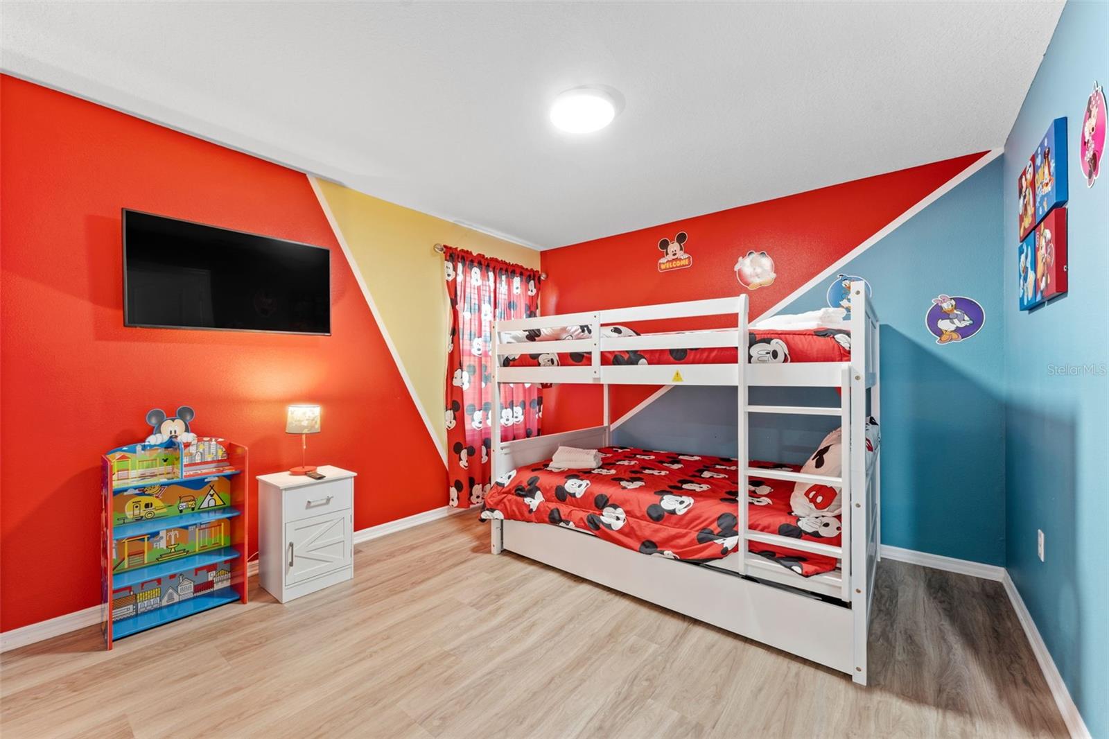 Discover the perfect fusion of elegance, space and prime location inside this fully furnished 6-bedroom, 4.5-bathroom home with a pool, perfectly suited for full-time living, vacation living, or high-yield vacation rental potential . Nestled on a peaceful conservation lot with a private backyard setting, this impressive home delivers exceptional privacy, conveniently located a few minutes from Orlando’s world famous theme parks and entertainment. Upon entering, tile flooring flows throughout the main living areas, creating a bright, open, and low-maintenance space ideal for hosting guests. The private dining area transitions seamlessly into the open-concept living and kitchen combination, offering the perfect gathering space. The kitchen features stainless steel appliances, stone countertops, ample prep space, and a breakfast bar with additional seating, ideal for entertaining large groups. Enjoy the flexibility of two spacious primary suites, each with a luxurious attached bathroom featuring double vanity sinks, a garden bathtub, and a separate walk-in shower. The first primary suite is conveniently located on the main floor, along with a laundry room and half bathroom. Upstairs, the second primary suite is joined by four additional guest bedrooms and a loft area — all with newly installed vinyl flooring. Accompanying the bedrooms are a Jack-and-Jill bathroom, and an additional full guest bathroom, providing comfortable accommodations for everyone. Step through the sliding glass doors to the screened-in private pool, spa, and covered lanai, where you can relax and unwind with no rear neighbors—a highly desirable feature for guest privacy. Located in the highly sought-after Calabria at Westside community, this home is just minutes from Highway 192, US-27, I-4, theme parks, major attractions, shopping, and dining. Properties like this are rarely available—schedule your private showing today and experience the perfect blend of location, privacy, and income-producing potential.