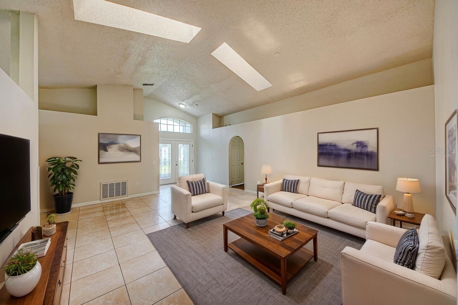 One or more photo(s) has been virtually staged. Discover comfortable living at 3 Cecilia Way in Kissimmee, FL—a well-designed 3-bedroom, 2-bathroom home nestled in a quiet cul-de-sac. With 1,606 sq.ft. of open-concept living space, the home features vaulted ceilings and all-tile flooring throughout. The kitchen offers white cabinetry, tile flooring, and essential appliances including an oven, microwave, and dishwasher. The primary suite features Luxury Vinyl Plank flooring, an ensuite bath with a double vanity, and private access to a large screened-in sunroom. Additional bedrooms include tile floors, ceiling fans, and ample natural light. Bathrooms are appointed with updated white cabinetry, overhead lighting, and a combination of shower and bathtub options. A fenced yard and spacious sunroom enhance outdoor enjoyment, while a dedicated laundry room and electric 2-car garage add everyday convenience. Located near schools, parks, shopping, restaurants, and with easy access to Poinciana Parkway, this home offers everyday ease in a growing and vibrant community.