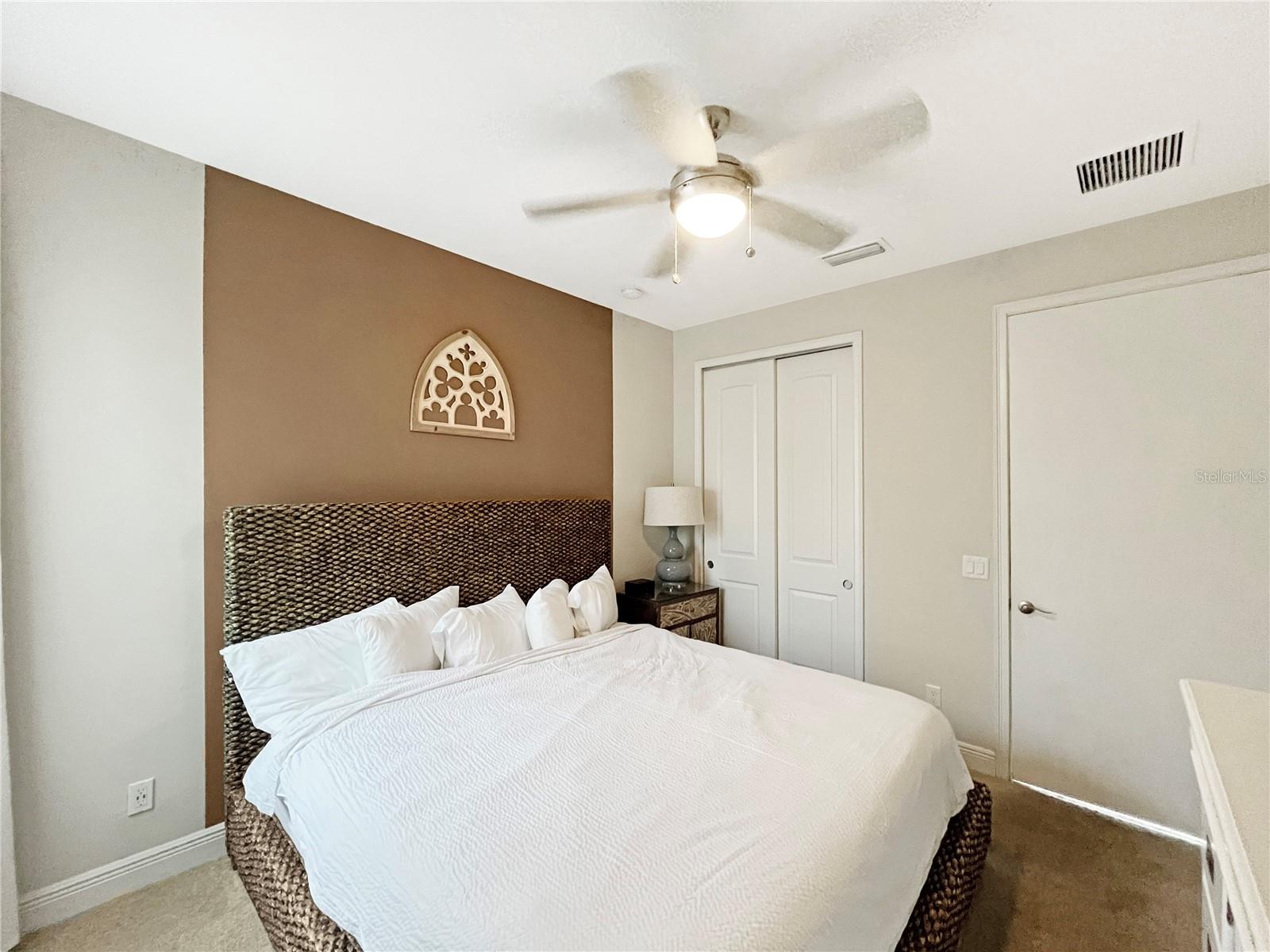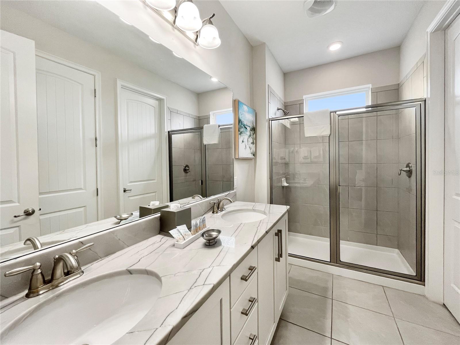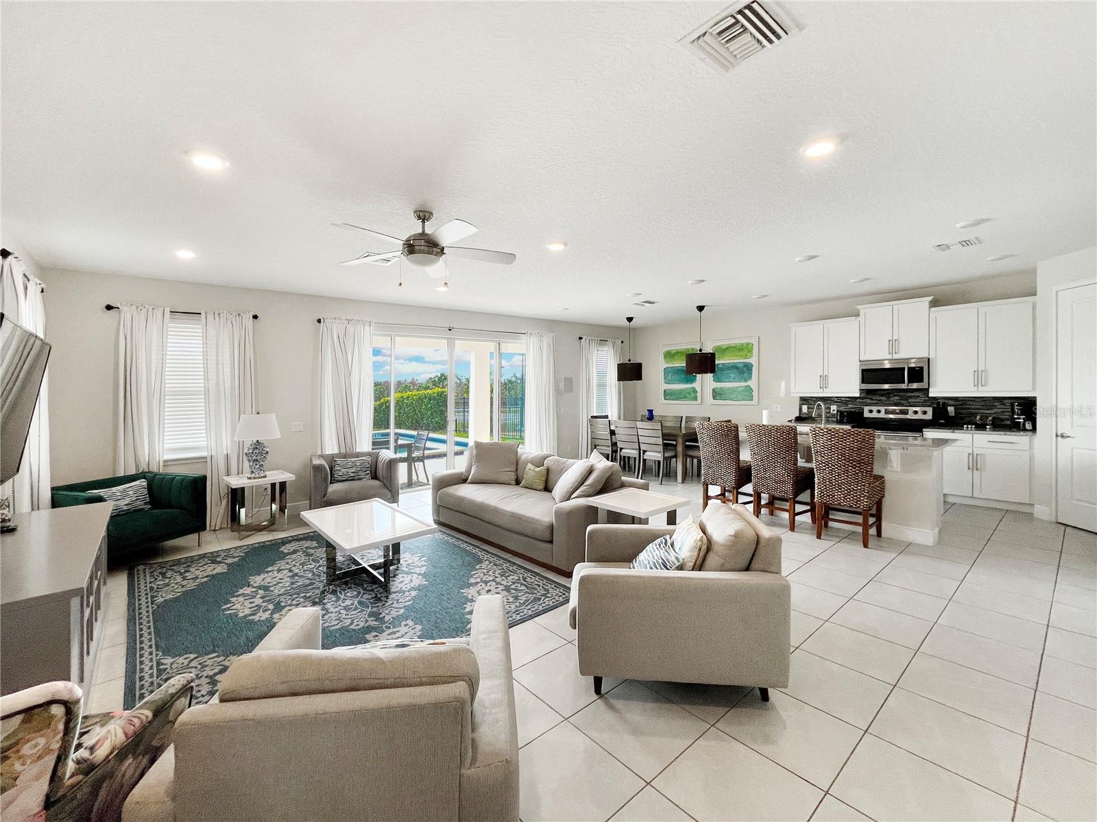 OPTIONALLY FURNISHED! Experience resort-style living in this stunning, corner lot 4-bedroom, 3-bathroom home located in the exclusive gated community of Encore Resort at Reunion, just 10 minutes from Disney. This spacious home features a luxurious master suite with a spa-like soaking tub and a first-floor bedroom with a wheelchair-accessible shower. The master bedroom features hurricane-proof 3-panel windows, designed to significantly reduce nearby highway noise, providing a quieter and more comfortable living space. Enjoy a maintenance-free lifestyle as the HOA takes care of the pool, lawn, and landscaping. Encore Resort offers incredible amenities, including a spectacular water park, a state-of-the-art fitness center, basketball, volleyball, golf courses, and tennis courts, as well as a clubhouse with a market, restaurants, and concierge services! With world-class attractions, dining, and shopping just minutes away, this home is the perfect blend of luxury and convenience. Schedule your private tour today! *Please note, not all of the furniture in the photos may still be available