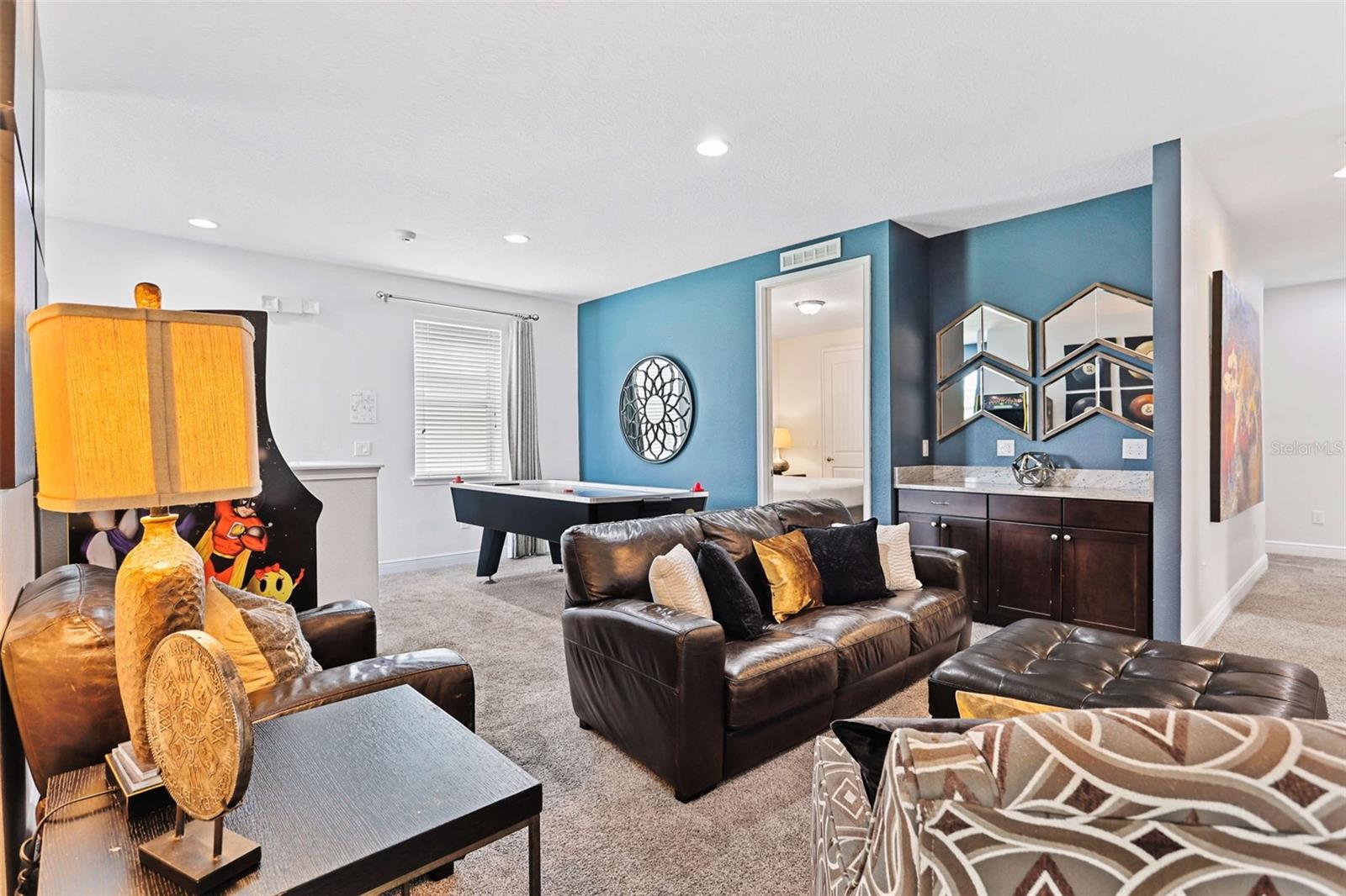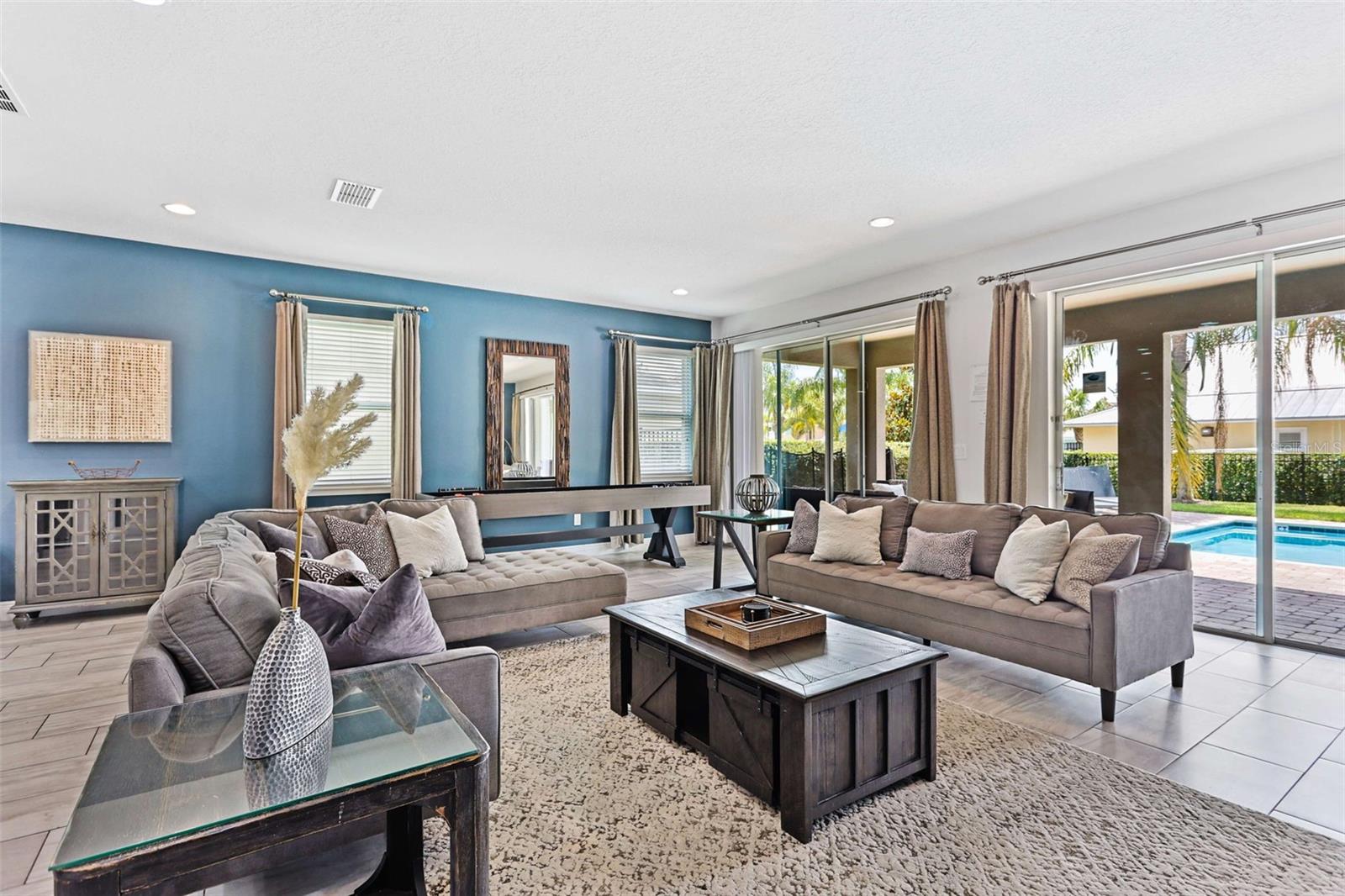 Great Value! Welcome to this stunning 9-bedroom, 8.5-bathroom pool home located in the highly desirable guard-gated Encore Resort at Reunion. Fully furnished and turnkey, this expansive residence offers over 4,600 square feet of beautifully designed living space, ideal as a primary residence, second home, or high-performing vacation rental. Situated on a premium lot with no rear neighbors, the home enjoys added privacy and close proximity to the community's water park, clubhouse and sports courts and soccer field. This two-story home comfortably accommodates up to 20 guests and features a highly popular floorplan, favored by returning vacationers year after year. The main level includes two bedrooms and two-and-a-half bathrooms, while the upper level offers seven additional bedrooms and six full baths. The open-concept layout is enhanced by custom design elements, premium furnishings, and tasteful decor—all included in the sale. Recent upgrades completed in 2024 include a new roof, upgraded kitchen appliances, designer furniture, fresh paint and soft furnishings. Outdoor living is equally impressive with a private heated pool and spa, a covered lounge and dining area, and an oversized driveway with ample parking. Encore Resort offers resort-style amenities such as 24-hour gated security, a full water park, clubhouse, restaurant, fitness center, playgrounds, and shuttle service to Walt Disney World and nearby attractions—all just 15 to 30 minutes away. The listing agent also serves as the property’s managing agent and can provide detailed rental income and expense records upon request, this home has done really well for income over the last 5 years with returning visitors year on year. This exceptional home presents a rare opportunity to own a luxury property in one of Orlando’s top short-term rental communities. All measurements, HOA details, and community information should be independently verified by the buyer or buyer's agent.