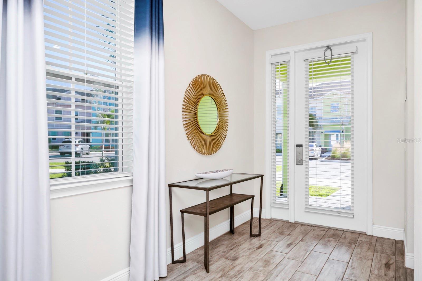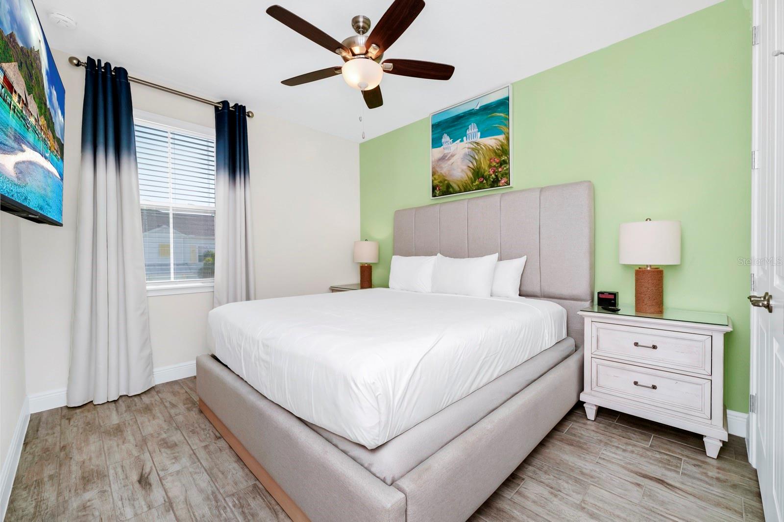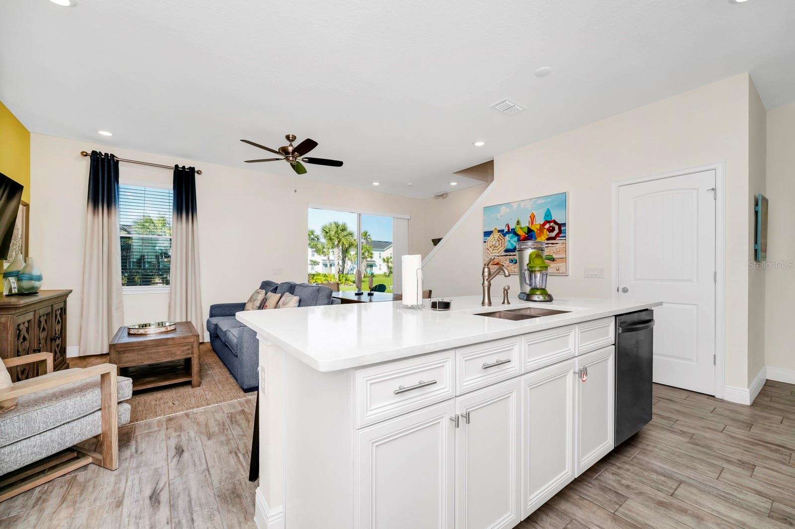 Bright and spacious 4 bedroom POOL FRONT villa located in the heart of Margaritaville Resort just 5 minutes from Disney! This spacious townhome has one bedroom downstairs, and three bedrooms upstairs - plenty of space for your family or guests. It also comes with high end wood look tile, quartz countertops, upgraded appliances, wooden stairs, private owners' closet, high ceilings, and so much more! This property can be used as a full-time residence, second home, or short-term rental property. This resort style community features three large swimming pools near the Margaritaville Resort Hotel, 4 pools just steps from the villa itself, multiple restaurants and bars, fitness center, full-service spa, lush and tranquil walking trails to all ends of the community, as well as a moments walk to all of the restaurants, bars, shops and entertainment that Sunset Walk has to offer! Low maintenance resort living includes fully maintained grounds, home exterior, lawn care, and 24/7 roaming and manned gated security entrance.
