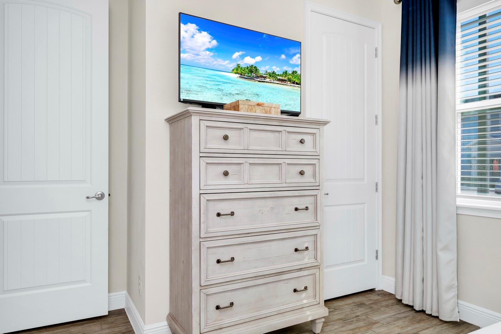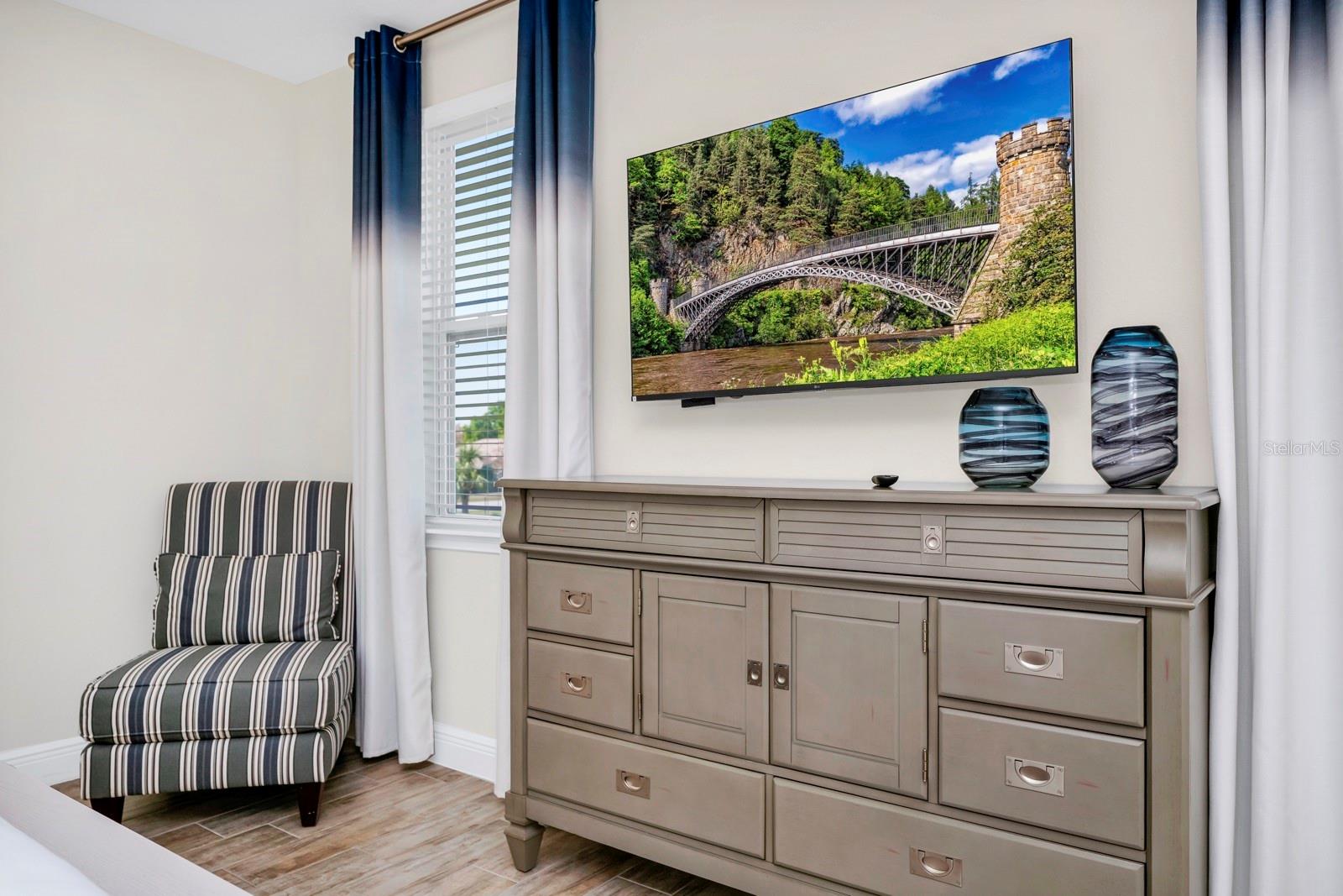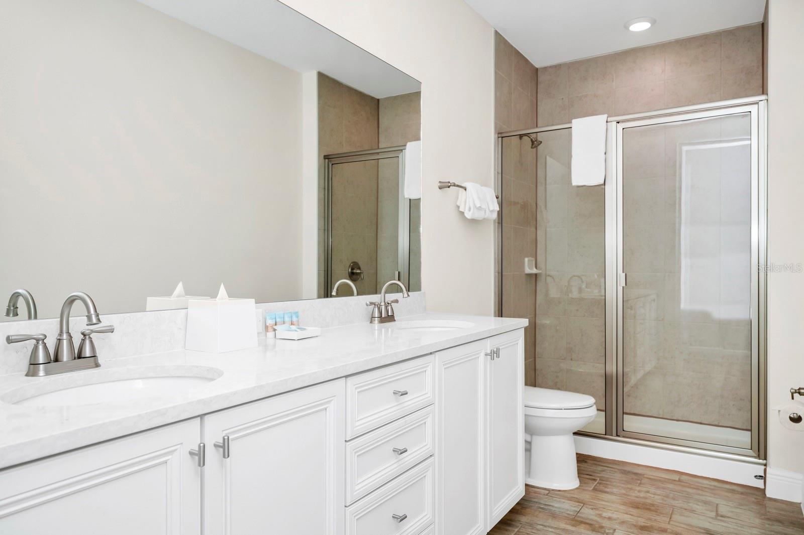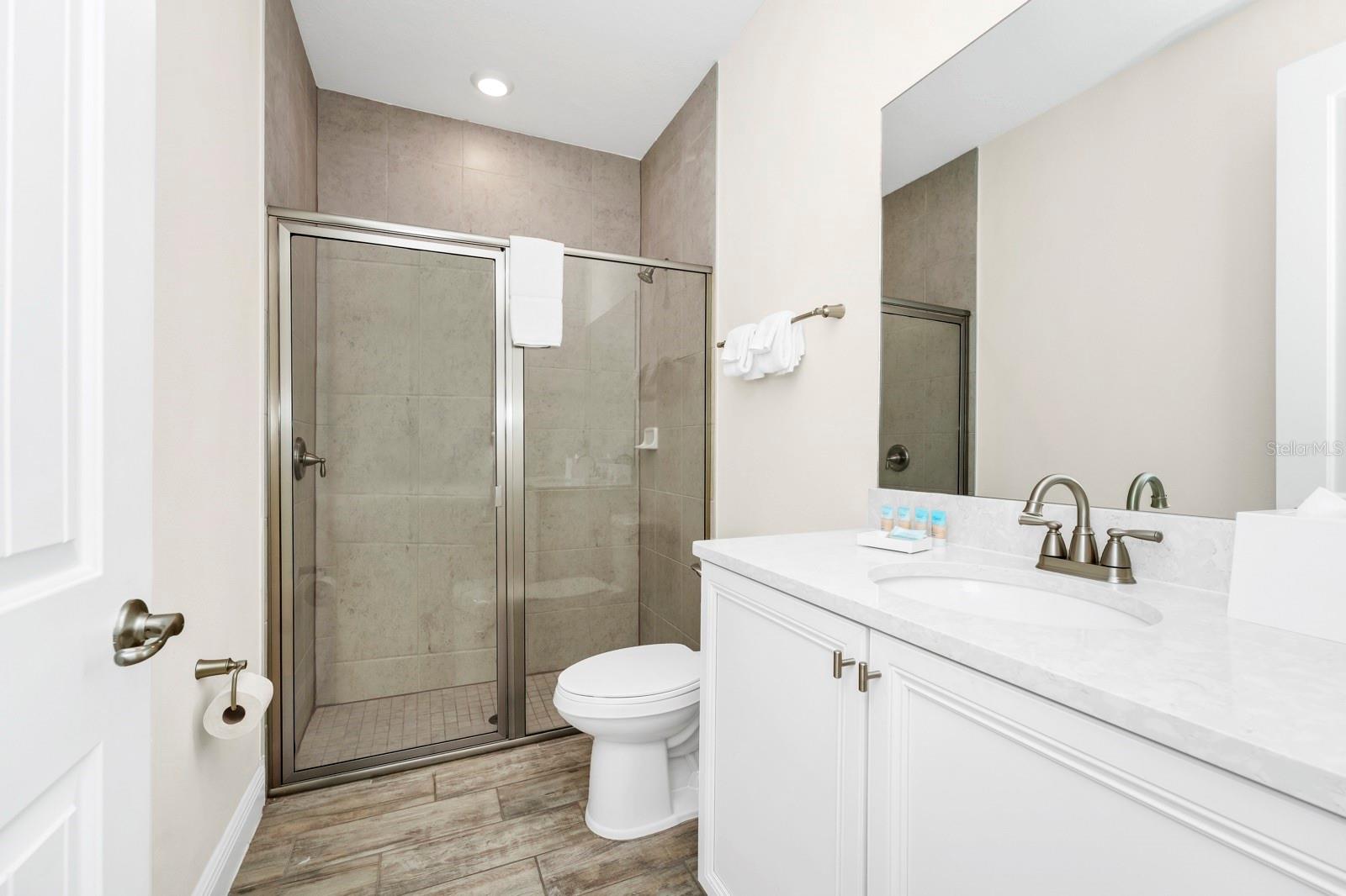Bright and spacious 4 bedroom POOL FRONT villa located in the heart of Margaritaville Resort just 5 minutes from Disney! This spacious townhome has one bedroom downstairs, and three bedrooms upstairs - plenty of space for your family or guests. It also comes with high end wood look tile, quartz countertops, upgraded appliances, wooden stairs, private owners' closet, high ceilings, and so much more! This property can be used as a full-time residence, second home, or short-term rental property. This resort style community features three large swimming pools near the Margaritaville Resort Hotel, 4 pools just steps from the villa itself, multiple restaurants and bars, fitness center, full-service spa, lush and tranquil walking trails to all ends of the community, as well as a moments walk to all of the restaurants, bars, shops and entertainment that Sunset Walk has to offer! Low maintenance resort living includes fully maintained grounds, home exterior, lawn care, and 24/7 roaming and manned gated security entrance.