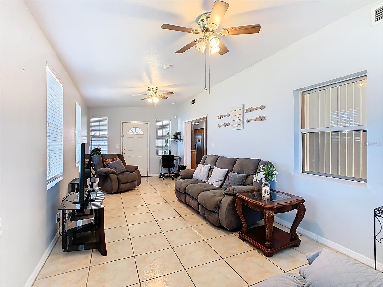Welcome to this beautifully maintained 3-bedroom, 2-bath home offering peaceful lake views and stunning Florida sunsets. Designed for both comfort and functionality, this home features an open floor plan with wood-look ceramic tile throughout the main living areas, creating a warm and cohesive living space. The kitchen is equipped with granite countertops and opens seamlessly to the dining and living areas. Step outside to a spacious outdoor sitting area where you can relax, entertain, or enjoy quiet evenings overlooking the lake. The home also offers a bonus room in the rear, providing extra living space that can be used as a family room, playroom, home office, or flex space to fit your needs. An exterior shed adds even more versatility and can easily serve as a studio, gym, or additional storage. Conveniently located near the Florida Turnpike and SR-417, this property offers quick access to major highways and is just 20 minutes from Lake Nona Medical City. Enjoy close proximity to shopping, dining, and everyday conveniences while coming home to a tranquil lakeside setting. This home delivers the perfect balance of space, location, and lifestyle.