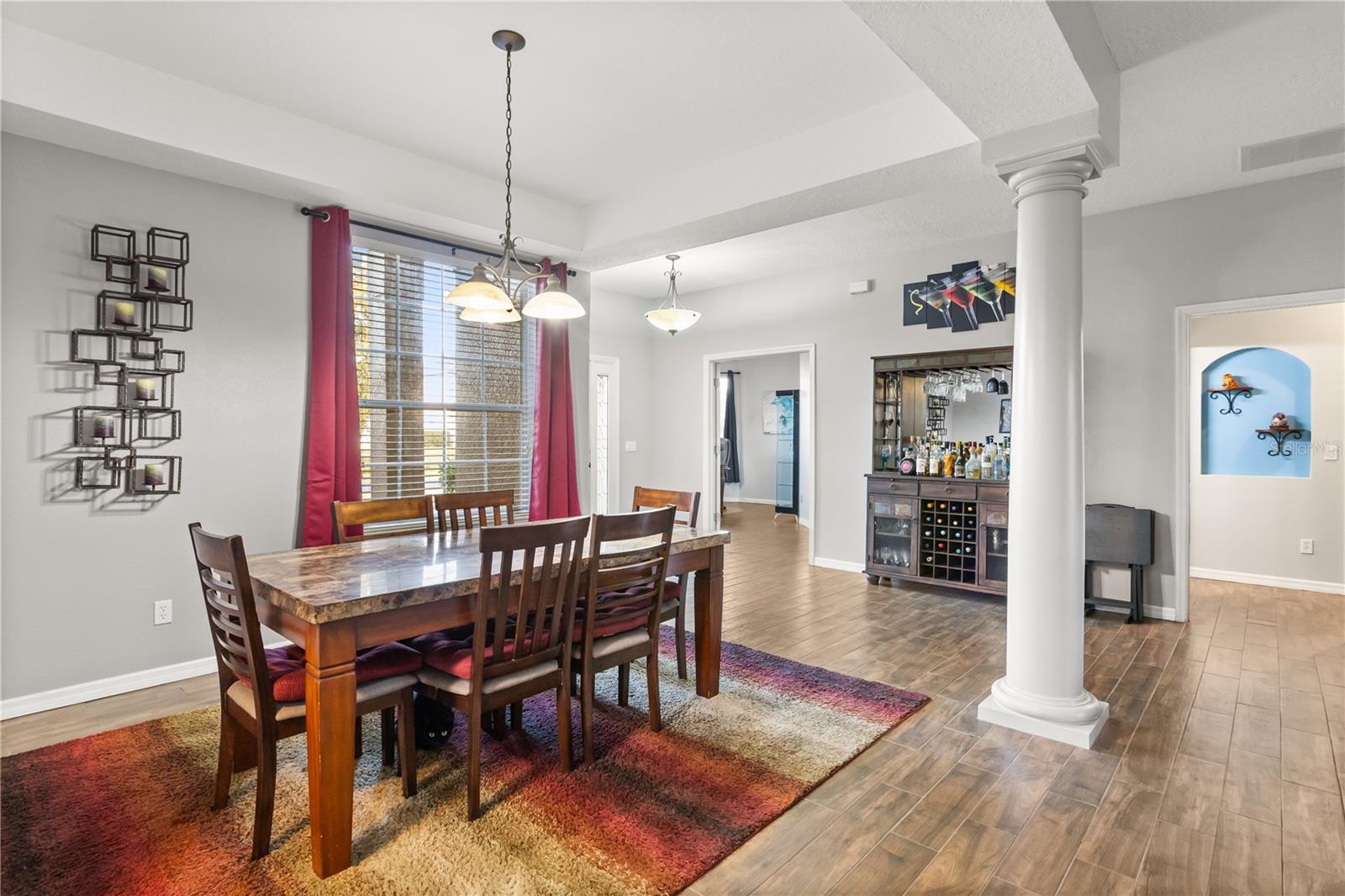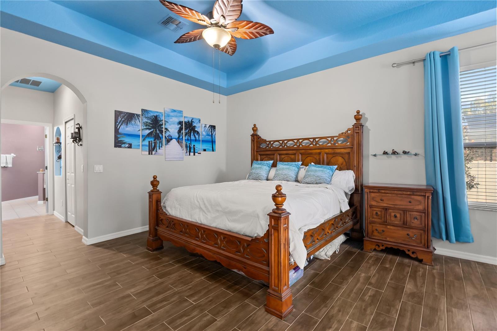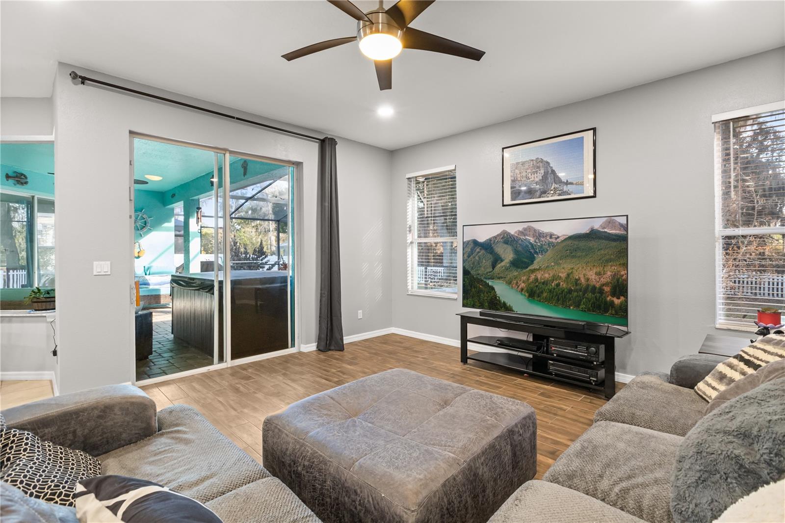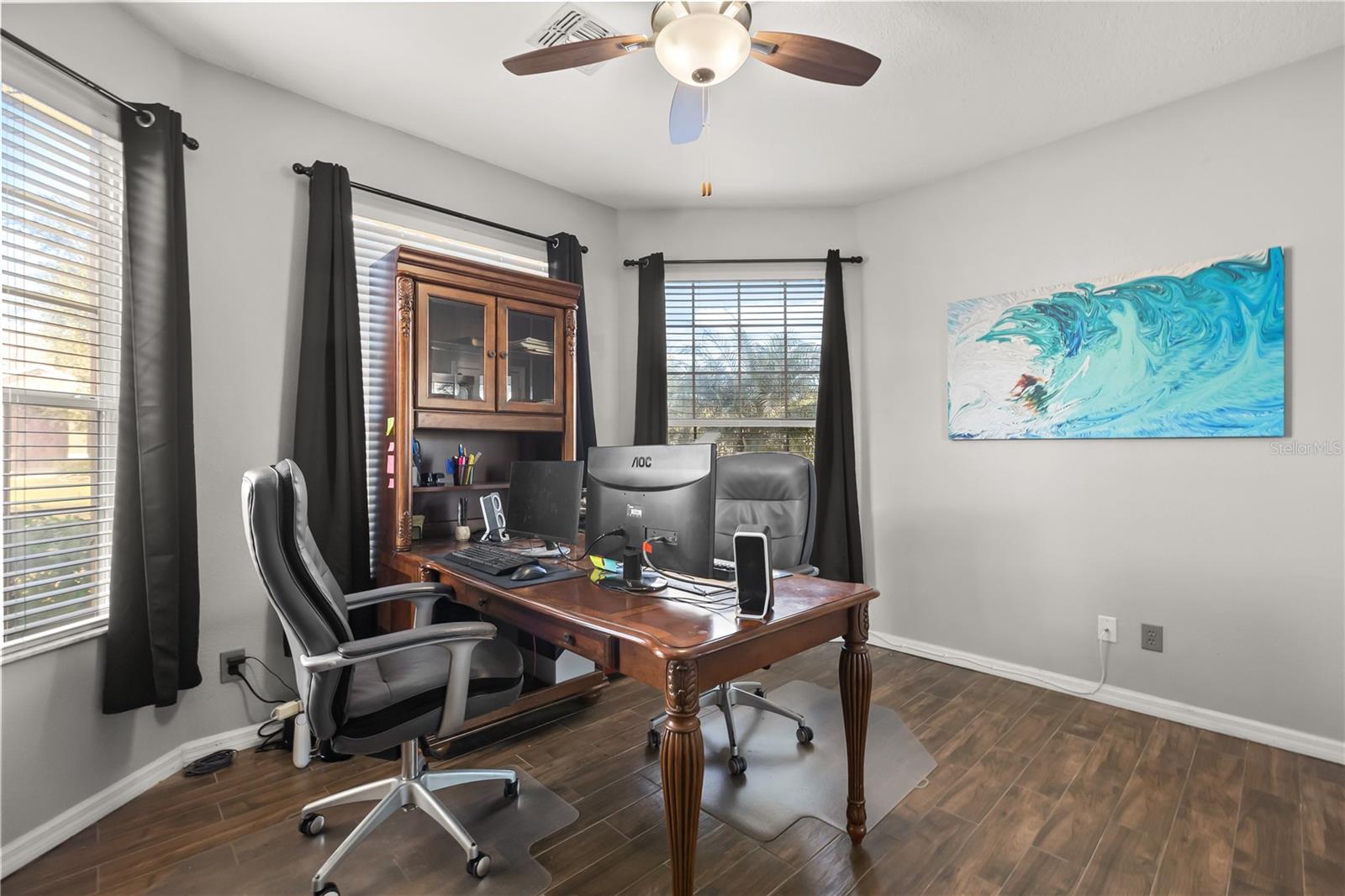 Spacious 3,660 sq. ft. 5-bedroom 3 bath single-family home located in the highly desirable 34744 zip code, just minutes from Lake Nona. This well-maintained property backs to a wooded conservation area and features a fully fenced backyard a newly screened-in lanai with a heated pool and decorative fountain--ideal for privacy and outdoor living. The first-floor primary suite includes plank style porcelain tile and a 6ft sliding glass door wall with direct pool access. An additional downstairs room may be used as a bedroom or office. The large kitchen overlooks the breakfast nook and family room. Upstairs offers three large bedroom's two with flex spaces plus a spacious bonus/game room. Roof is 6 years old and A/C units are 1 year old. Well-kept landscaping, low HOA, and convenient access to Medical City, Orlando International Airport, major shopping and SR-417.