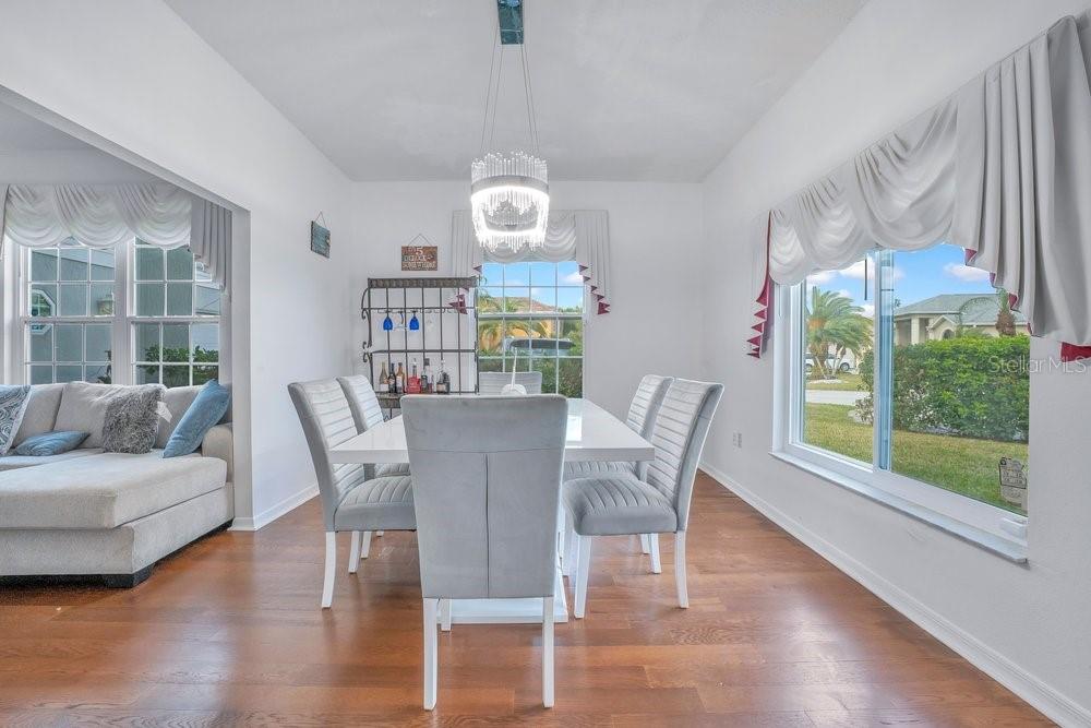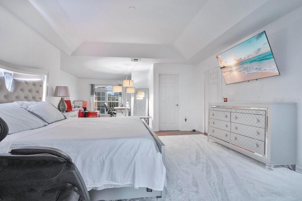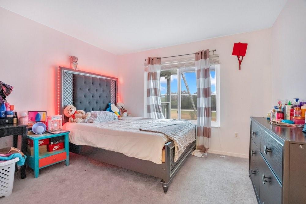 Beautiful 5-bedroom, 3-bathroom home situated on the 13th hole in the gated Remington golf community. This well-designed residence offers a second-floor primary suite with an en-suite bathroom featuring a soaking tub with jacuzzi features and a bidet. Upstairs also includes a spacious bonus room currently used as a family theater. The first floor features a guest bedroom along with a comfortable living area and kitchen, ideal for both everyday living and entertaining. Tasteful light fixtures and chandeliers enhance the home’s elegant appeal. Newer roof (2023), newer water heater (2023), and newer A/C. Residents enjoy access to golf, tennis, a community pool, and walking trails, all while being conveniently located near the Florida Turnpike, Lake Nona Medical City, shopping, and Disney.