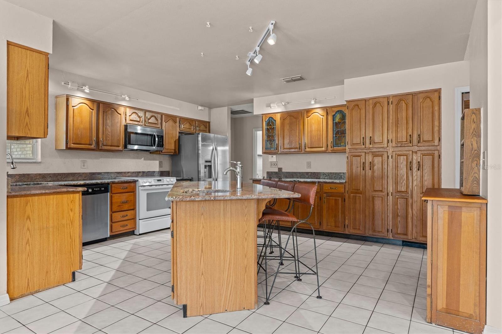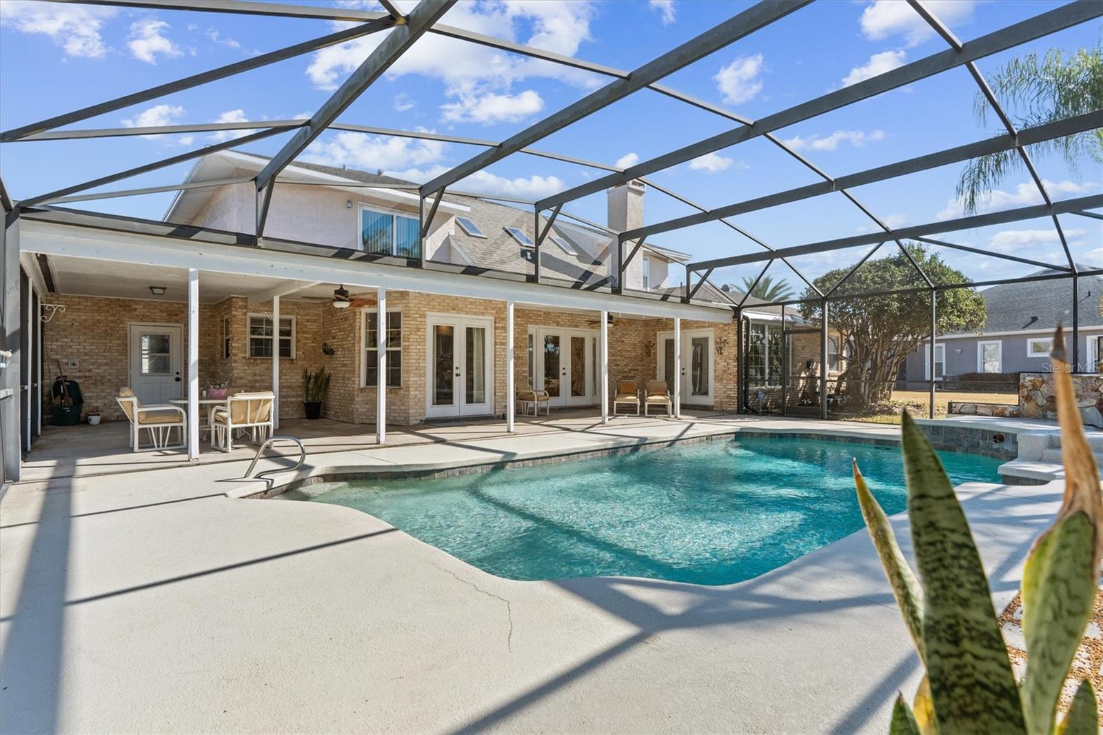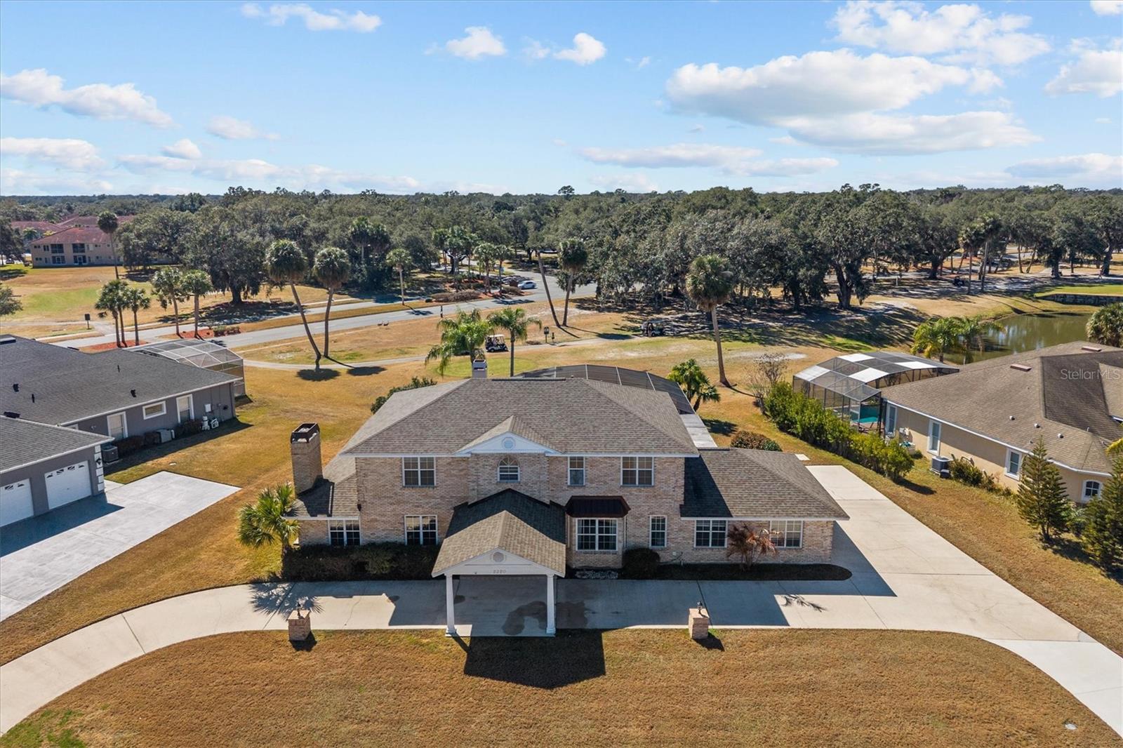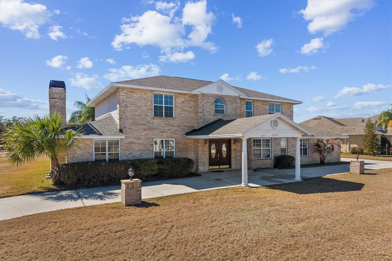 Welcome to 2220 Tournament Court, a rare opportunity to own one of the largest homes in The Oaks Golf Community, ideally located on the third hole of the golf course with peaceful views and a screened-in pool. This 4-bedroom, 3.5-bath residence offers 3,870 square feet of living space on a generous lot, with a semi-circle driveway, covered parking at the front entry, and a side-entry two-car garage providing ample parking and curb appeal. While the interior remains largely original, several major systems have been updated, including a new roof (2021), HVAC systems (2019 & 2022), and water heater (2020)—allowing future updates to focus on style and personalization. The home is thoughtfully priced to allow room for renovations, offering exceptional potential in a sought-after neighborhood. Step through the solid wood double doors into a large, welcoming foyer that sets the tone for the home’s scale and layout. The formal living space features wood floors, a brick fireplace, and abundant natural light. Adjacent is a formal dining room ready to be reimagined—ideal as a traditional dining space, a home library, wine room, lounge, or flexible entertaining area. A half bathroom is conveniently tucked away on the main level, thoughtfully positioned away from the primary living spaces. The family room and kitchen overlook the screened-in pool and golf course, creating a seamless indoor-outdoor flow for everyday living and entertaining. The private, screened-in pool area is designed for both everyday enjoyment and effortless entertaining. A spacious deck offers ample room for lounge seating, dining al fresco, and an outdoor kitchen. The pool features a water element that provides a calming backdrop, while the screened enclosure lets you enjoy Florida living year-round. Overlooking the golf course, it’s the perfect spot to watch golfers pass by during the day and unwind in the evenings with a drink in hand as the sun sets. The primary suite is located downstairs, offering generous space, a large en-suite bathroom, ample closets, and a separate home office area, perfect for remote work or a private retreat. An indoor laundry room is located just off the kitchen near the garage entrance for added convenience. Upstairs, a second en-suite bedroom with sliders overlooking the pool provides excellent flexibility for guests or multigenerational living. Two additional spacious bedrooms share a hall bathroom with double vanities, a tub, and a separate shower. With its size, layout, updated major systems, and prime golf course location, 2220 Tournament Court offers a rare combination of space, flexibility, and opportunity—perfect for buyers looking to customize while building long-term value in one of Kissimmee’s most established golf communities.