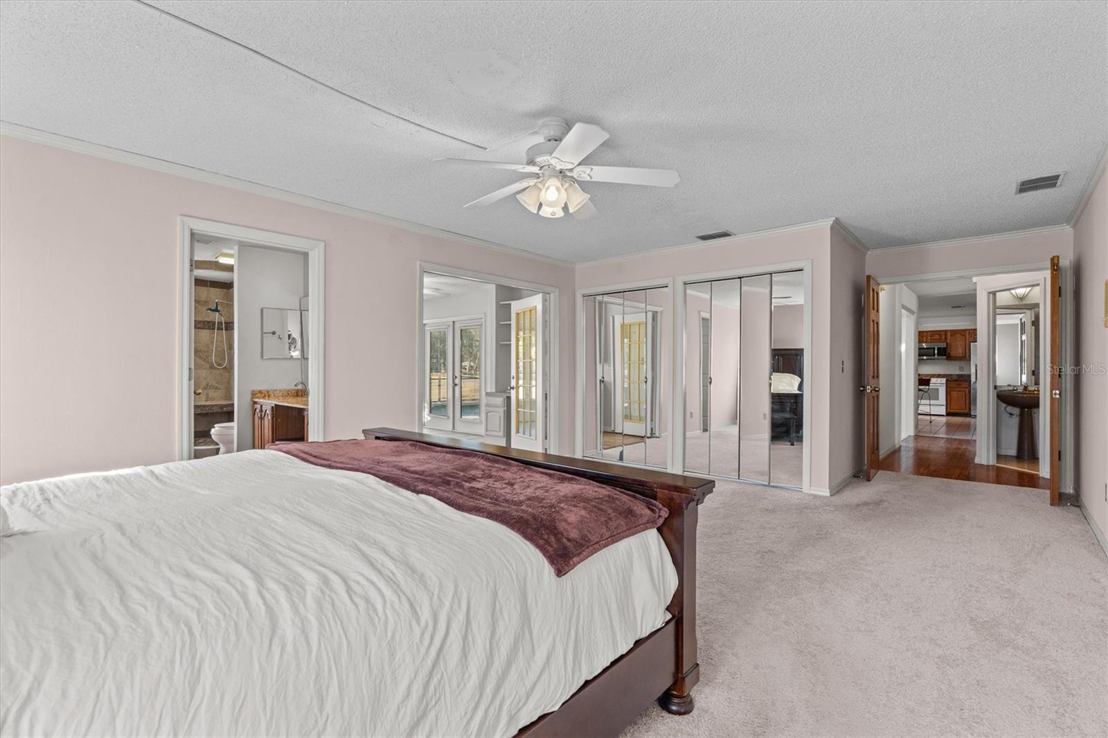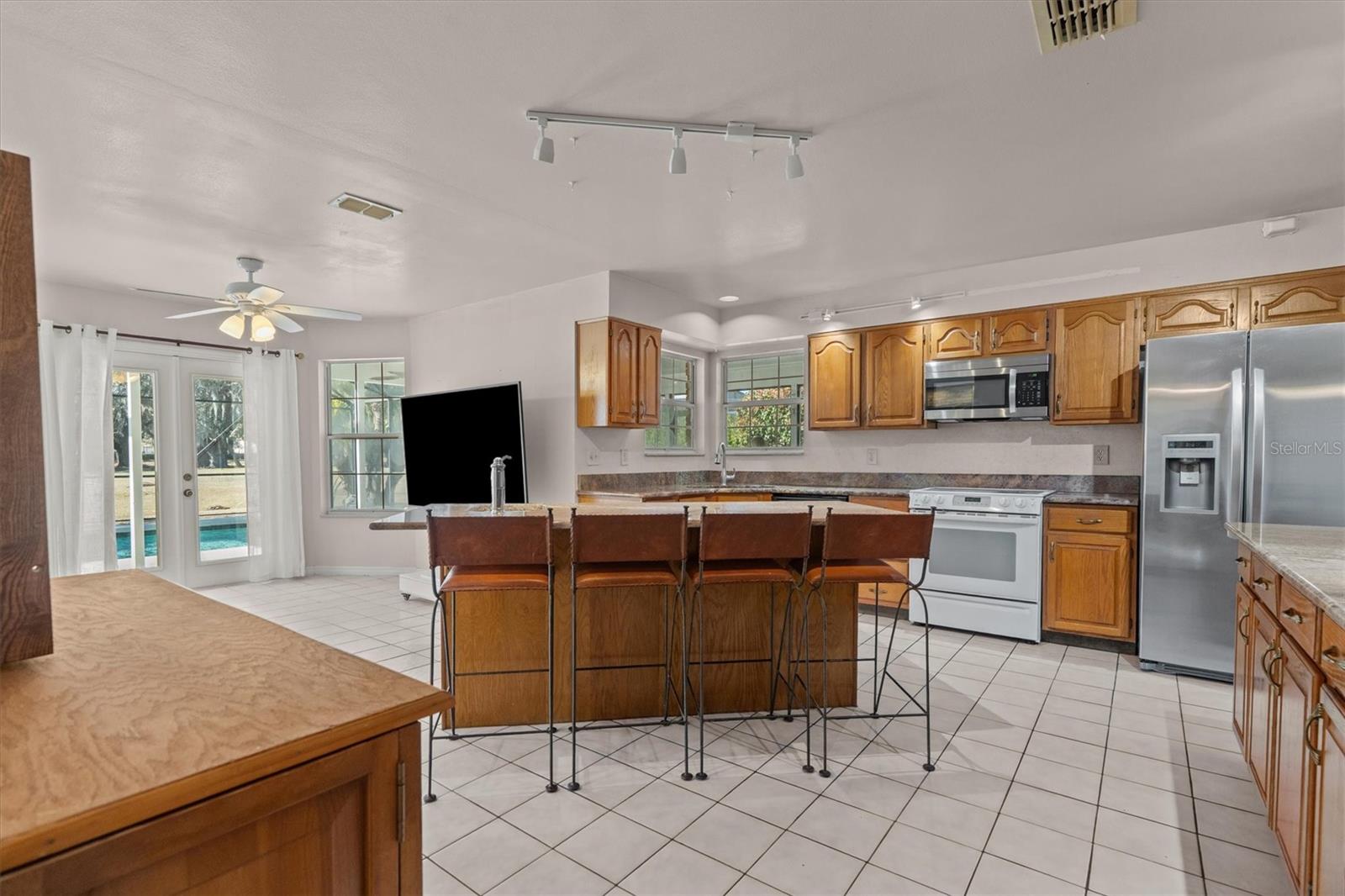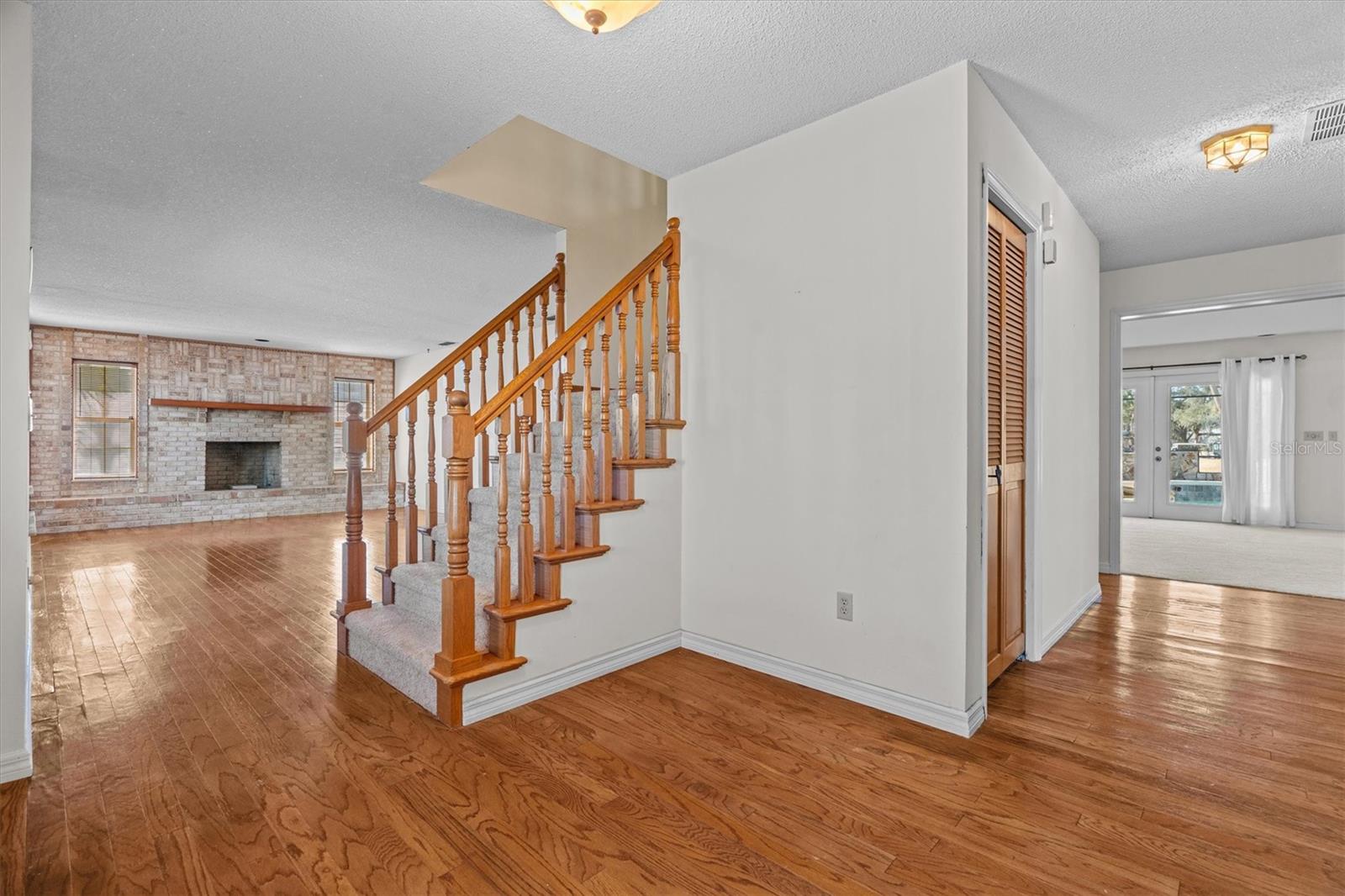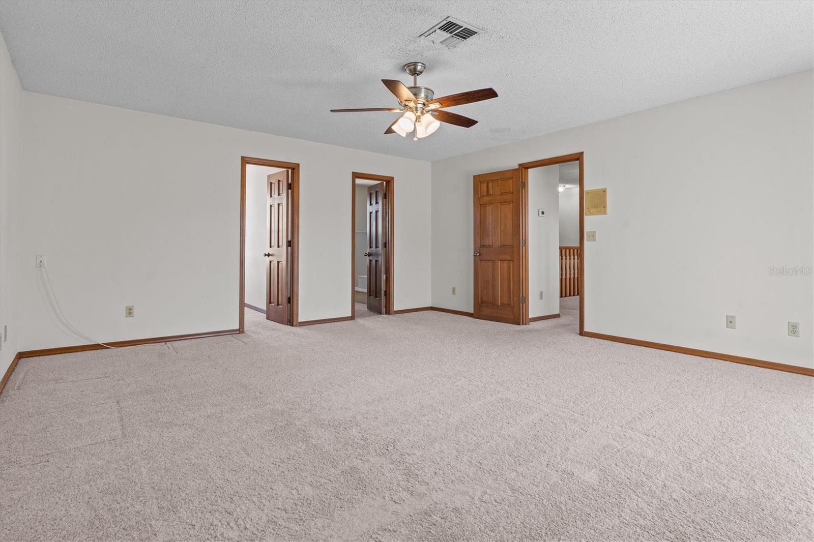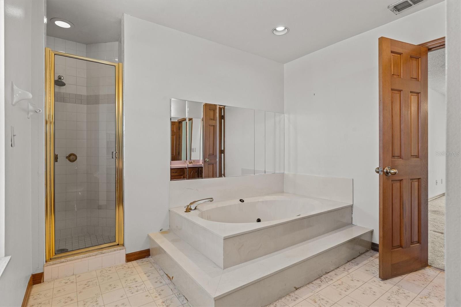 Welcome to 2220 Tournament Court, a rare opportunity to own one of the largest homes in The Oaks Golf Community, ideally located on the third hole of the golf course with peaceful views and a screened-in pool. This 4-bedroom, 3.5-bath residence offers 3,870 square feet of living space on a generous lot, with a semi-circle driveway, covered parking at the front entry, and a side-entry two-car garage providing ample parking and curb appeal. While the interior remains largely original, several major systems have been updated, including a new roof (2021), HVAC systems (2019 & 2022), and water heater (2020)—allowing future updates to focus on style and personalization. The home is thoughtfully priced to allow room for renovations, offering exceptional potential in a sought-after neighborhood. Step through the solid wood double doors into a large, welcoming foyer that sets the tone for the home’s scale and layout. The formal living space features wood floors, a brick fireplace, and abundant natural light. Adjacent is a formal dining room ready to be reimagined—ideal as a traditional dining space, a home library, wine room, lounge, or flexible entertaining area. A half bathroom is conveniently tucked away on the main level, thoughtfully positioned away from the primary living spaces. The family room and kitchen overlook the screened-in pool and golf course, creating a seamless indoor-outdoor flow for everyday living and entertaining. The private, screened-in pool area is designed for both everyday enjoyment and effortless entertaining. A spacious deck offers ample room for lounge seating, dining al fresco, and an outdoor kitchen. The pool features a water element that provides a calming backdrop, while the screened enclosure lets you enjoy Florida living year-round. Overlooking the golf course, it’s the perfect spot to watch golfers pass by during the day and unwind in the evenings with a drink in hand as the sun sets. The primary suite is located downstairs, offering generous space, a large en-suite bathroom, ample closets, and a separate home office area, perfect for remote work or a private retreat. An indoor laundry room is located just off the kitchen near the garage entrance for added convenience. Upstairs, a second en-suite bedroom with sliders overlooking the pool provides excellent flexibility for guests or multigenerational living. Two additional spacious bedrooms share a hall bathroom with double vanities, a tub, and a separate shower. With its size, layout, updated major systems, and prime golf course location, 2220 Tournament Court offers a rare combination of space, flexibility, and opportunity—perfect for buyers looking to customize while building long-term value in one of Kissimmee’s most established golf communities.