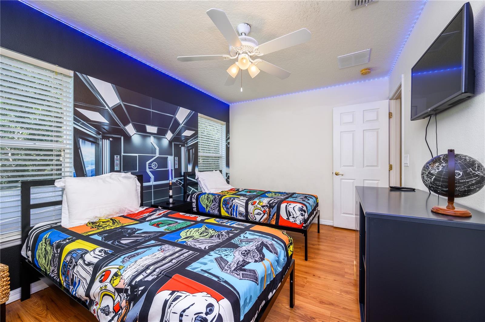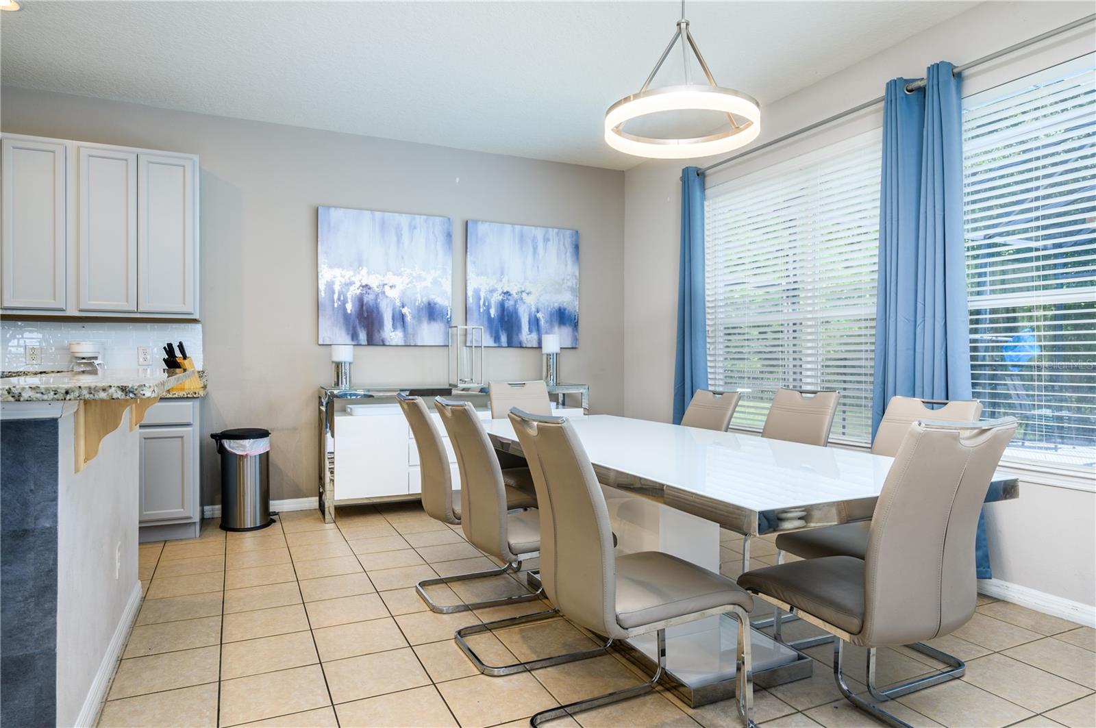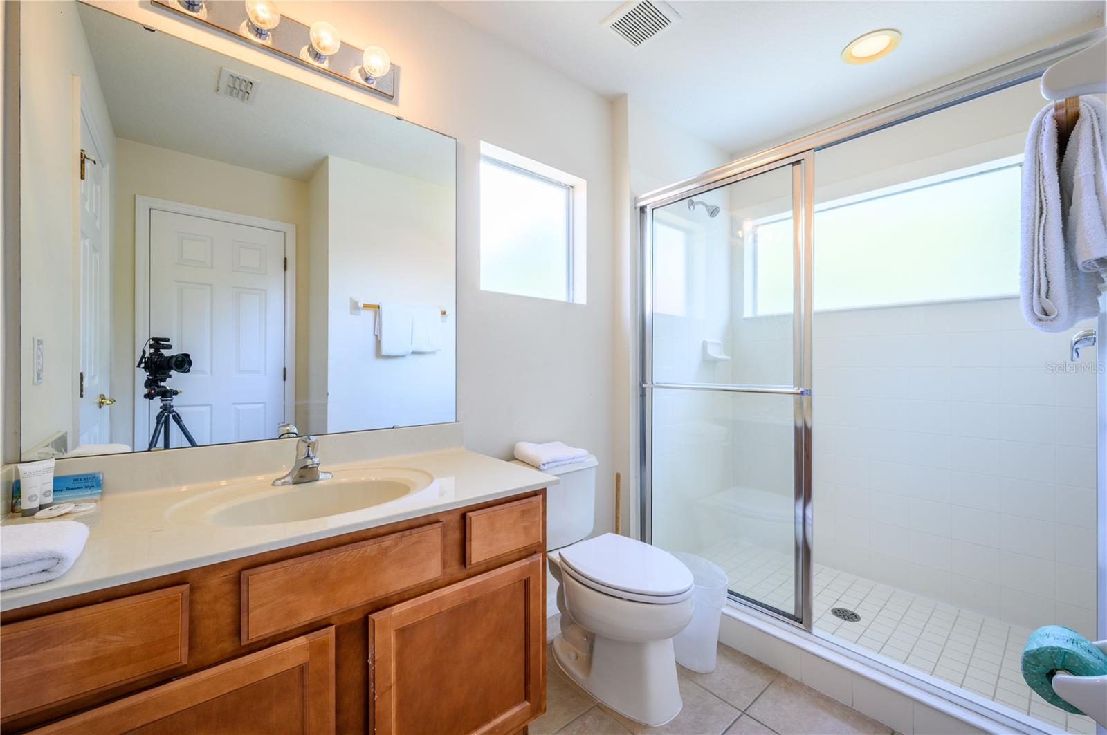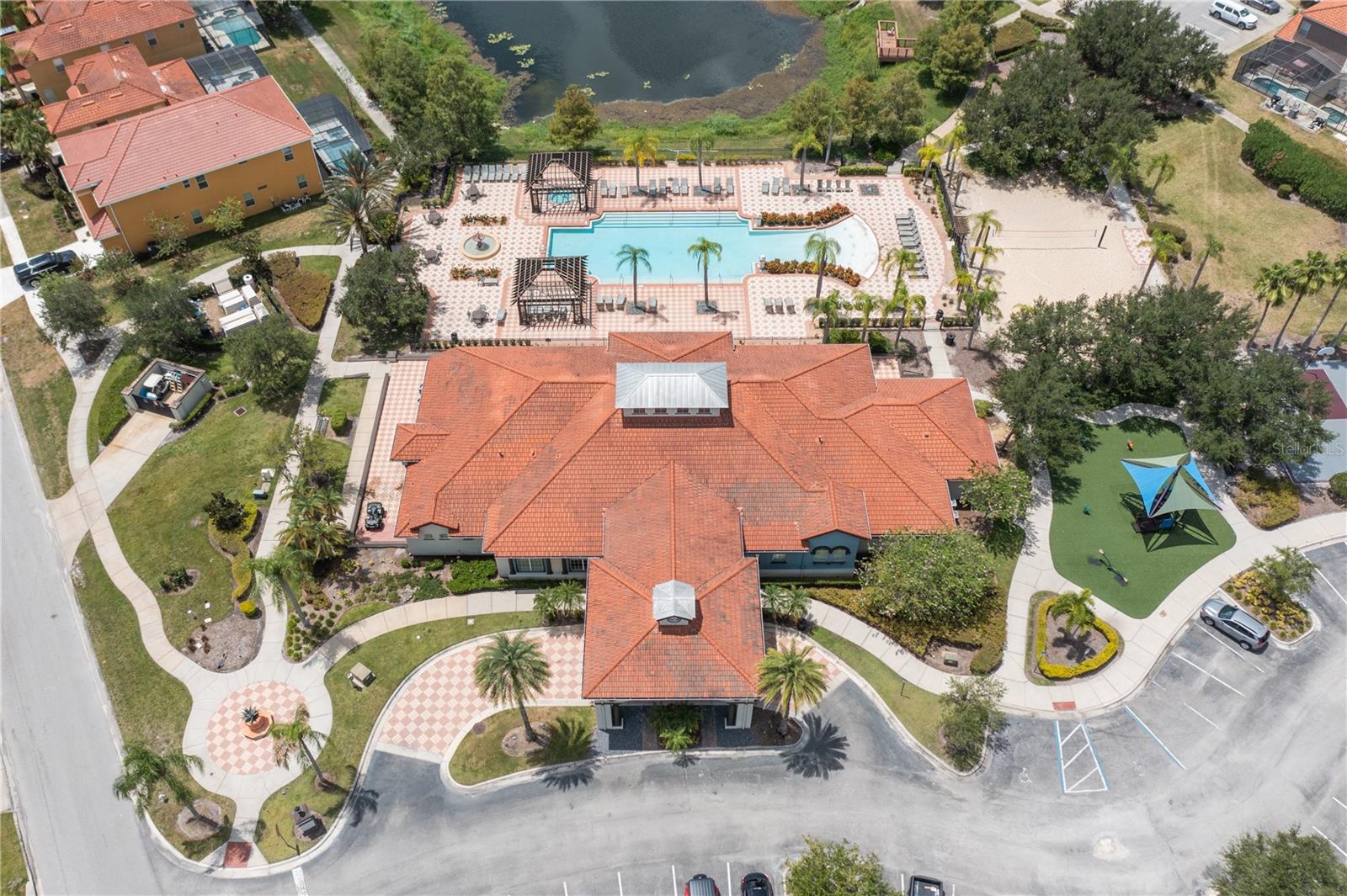 Fantastic six bedroom vacation home. Large rooms with ample closets . All bedrooms located upstairs. Five full baths upstairs, one half bath downstairs. Garage is currently converted to a game room. Conservation view to the rear (no rear neighbors) and a short walk across the street to the clubhouse. Gated community with well kept grounds and clubhouse amenities include large community pool with spa tub, workout room and reception area, playground and sand volleyball. There are sidewalks throughout the community. Convenient location to theme parks and shopping,this well maintained property is a must see. The property is offered fully furnished as a turn-key investment property