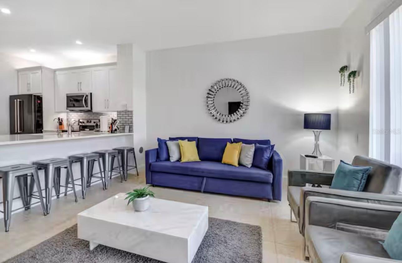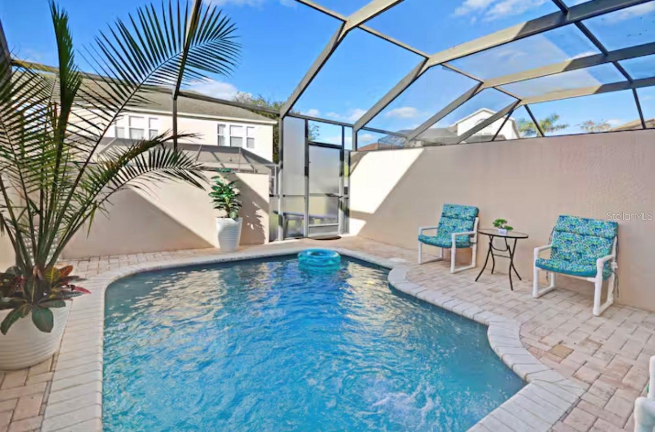 Turnkey short-term rental opportunity in the highly sought-after Windsor Hills Resort, located just 6 miles (approximately 14 minutes) from Walt Disney World. This fully renovated and professionally furnished 3-bedroom, 3-bathroom townhouse is move-in ready and short-term rental approved, making it ideal for investors seeking immediate income in a high-demand vacation market. The home features modern upgrades throughout, including stainless steel appliances, washer and dryer, and updated flooring with no carpet in the bedrooms or upstairs hallway for durability and easy maintenance. The open-concept layout offers comfortable living and dining spaces, while the private screened-in pool provides added appeal for vacation guests. Windsor Hills is a gated, resort-style community offering exceptional amenities that drive strong occupancy, including a lagoon-style pool and water park, clubhouse, fitness center, movie theater, sports courts, playgrounds, and 24-hour security. Property is currently tenant-occupied, and the existing lease transfers to the new owner, providing immediate rental income from day one.
