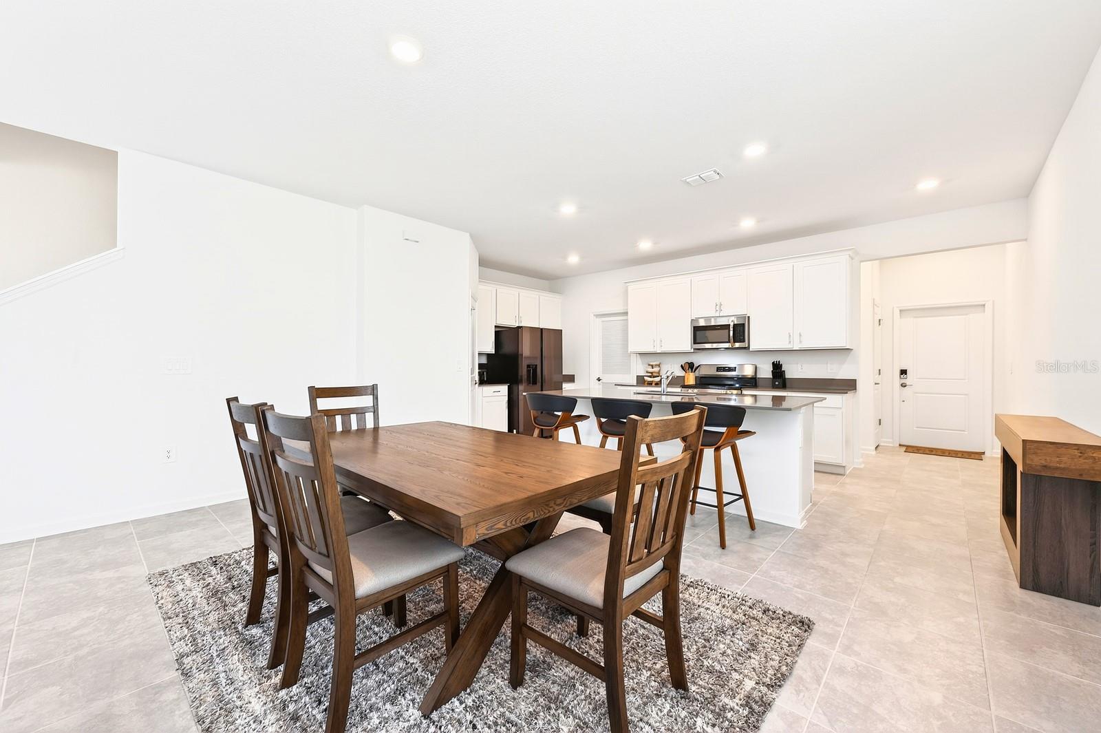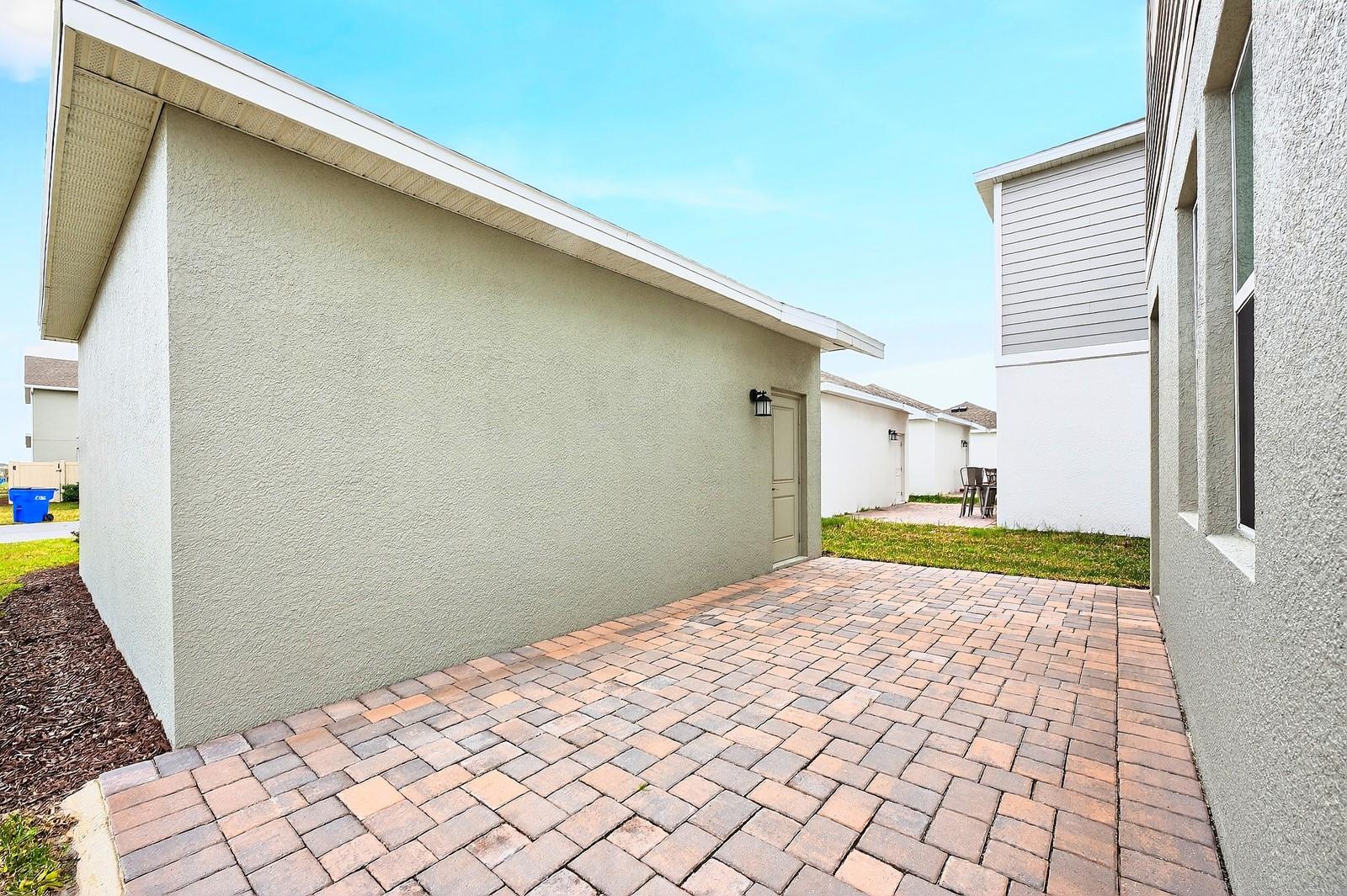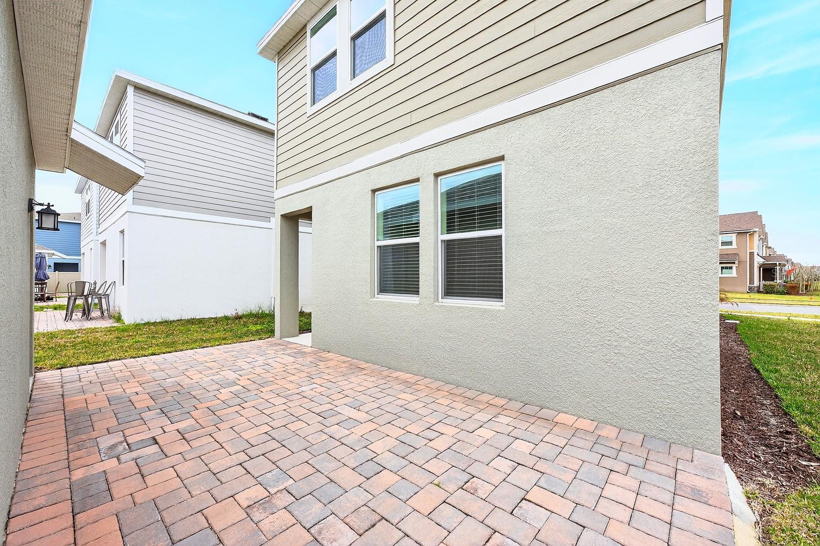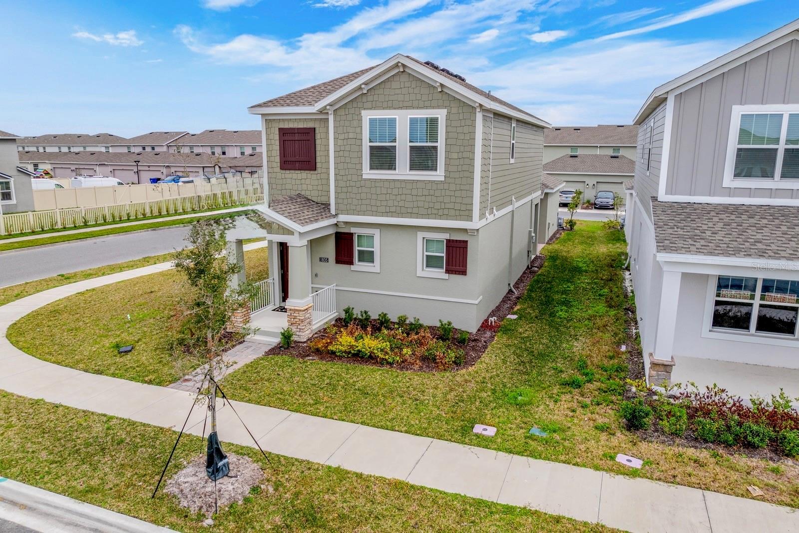 One or more photo(s) has been virtually staged. Welcome to MODERN ELEGANCE in the highly sought-after Tohoqua community of Kissimmee! Built in 2024 and situated on a DESIRABLE CORNER LOT, this stunning 3-bedroom, 2.5-bath two-story home offers everything you love about new construction — without the wait. From the moment you arrive, the CURB APPEAL stands out. A paver walkway leads to a charming covered front porch accented with DECORATIVE STONE DETAILING and SHAKE SIDING along the upper level, creating a warm and inviting first impression. Inside, the main floor showcases ceramic tile flooring throughout and a light-filled OPEN-CONCEPT DESIGN that seamlessly connects the Living Room, Dining area, and Kitchen — perfect for everyday living and entertaining alike. The bright, stylish Kitchen features white cabinetry, stainless steel appliances, SOLID SURFACE COUNTERTOPS, a large closet pantry, and a spacious breakfast bar ideal for casual meals or gathering with guests. Just off the Kitchen, the LAUNDRY ROOM comes complete with washer and dryer for added convenience. A thoughtfully placed HALF BATH completes the first level. A rear door leads to a PRIVATE PAVER PATIO nestled between the home and the detached TWO-CAR GARAGE — an ideal space for grilling, relaxing, or creating your own outdoor retreat. Upstairs, PLUSH CARPETING adds comfort throughout. The generous Primary Suite offers a peaceful escape with a SPACIOUS WALK-IN CLOSET and a well-appointed EN SUITE BATH featuring dual sinks, a step-in shower, and a private water closet. Two additional bedrooms share a full bathroom with convenient JACK-AND-JILL ACCESS, providing functionality and privacy for family or guests. With a LOW HOA, residents of Tohoqua enjoy exceptional RESORT-STYLE AMENITIES, including a sparkling community pool, clubhouse, state-of-the-art fitness center, playground, park areas, scenic walking trails, and pickleball courts. The community is known for its beautifully maintained green spaces and WELCOMING NEIGHBORHOOD ATMOSPHERE. Located JUST MINUTES from Lake Tohopekaliga, you’ll have access to boating, fishing, and waterfront recreation. You’re also close to shopping, dining, medical facilities, and entertainment in Kissimmee and Lake Nona. EASY ACCESS to Narcoossee Road, US-192, the Florida Turnpike, and SR-417 makes commuting to Orlando International Airport, theme parks, and downtown Orlando simple and convenient. This LIKE-NEW HOME combines style, comfort, and location — offering the perfect opportunity to enjoy the best of Central Florida living. Don't let this GEM get away!
