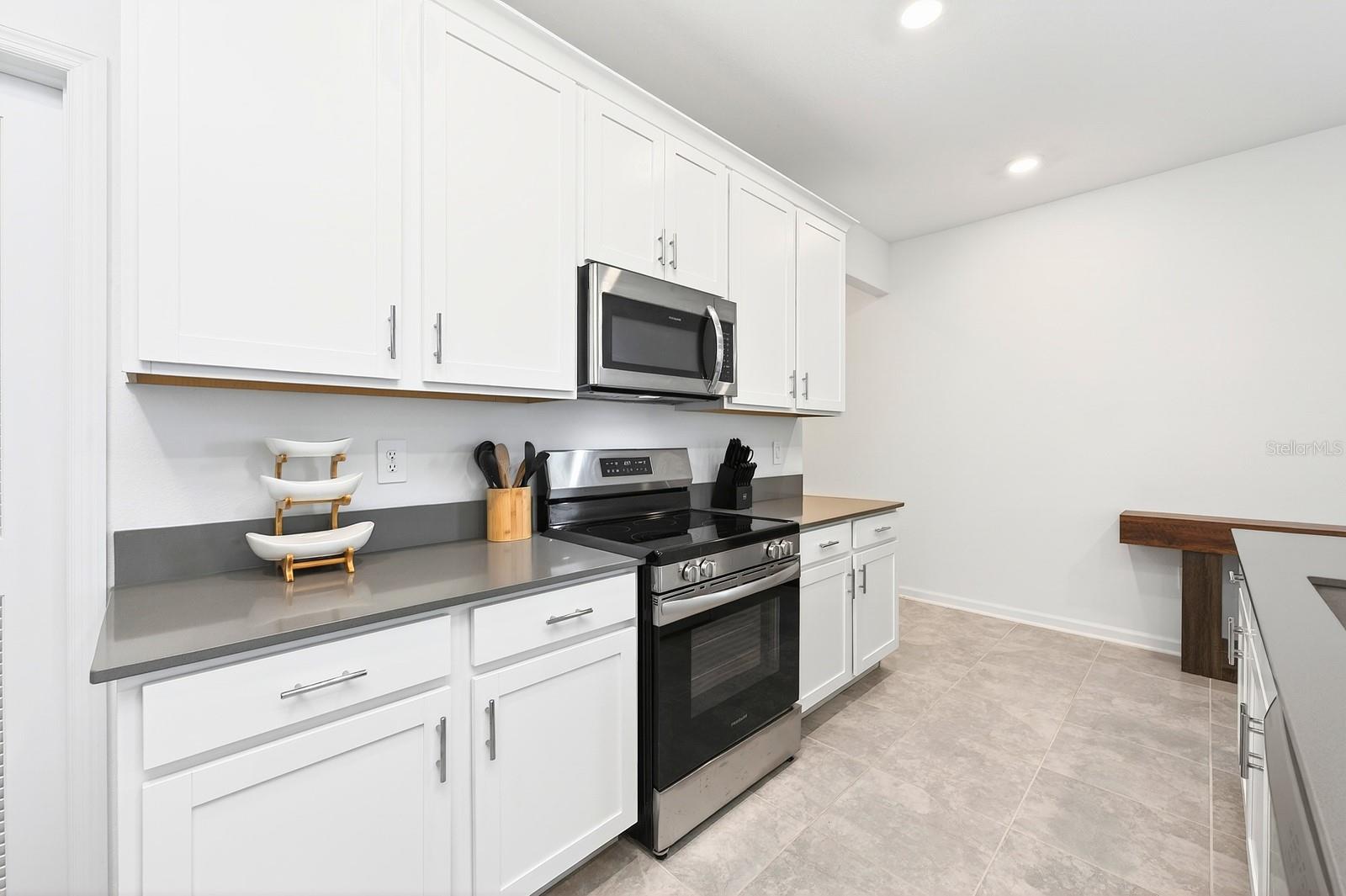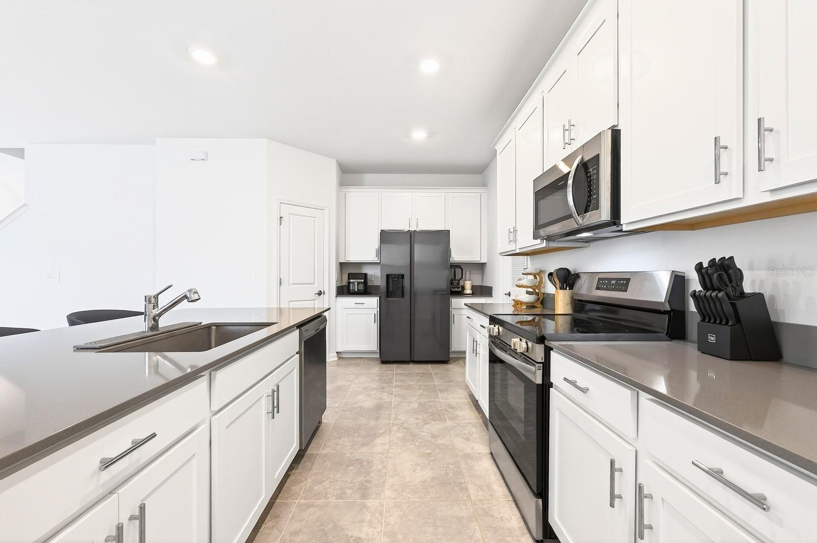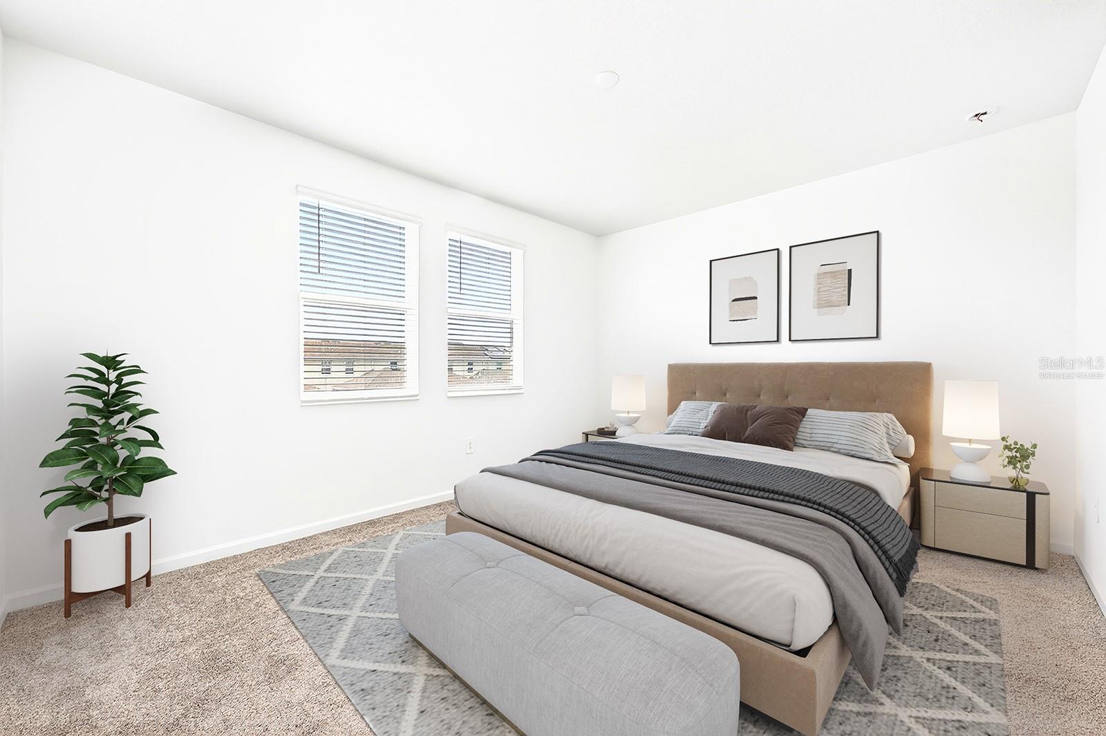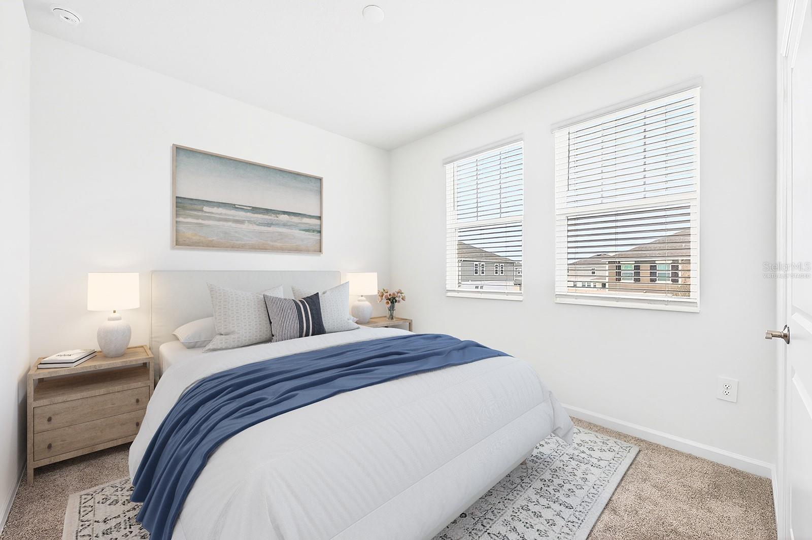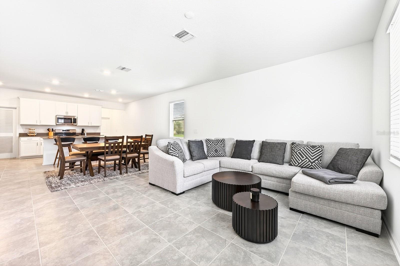 One or more photo(s) has been virtually staged. Welcome to MODERN ELEGANCE in the highly sought-after Tohoqua community of Kissimmee! Built in 2024 and situated on a DESIRABLE CORNER LOT, this stunning 3-bedroom, 2.5-bath two-story home offers everything you love about new construction — without the wait. From the moment you arrive, the CURB APPEAL stands out. A paver walkway leads to a charming covered front porch accented with DECORATIVE STONE DETAILING and SHAKE SIDING along the upper level, creating a warm and inviting first impression. Inside, the main floor showcases ceramic tile flooring throughout and a light-filled OPEN-CONCEPT DESIGN that seamlessly connects the Living Room, Dining area, and Kitchen — perfect for everyday living and entertaining alike. The bright, stylish Kitchen features white cabinetry, stainless steel appliances, SOLID SURFACE COUNTERTOPS, a large closet pantry, and a spacious breakfast bar ideal for casual meals or gathering with guests. Just off the Kitchen, the LAUNDRY ROOM comes complete with washer and dryer for added convenience. A thoughtfully placed HALF BATH completes the first level. A rear door leads to a PRIVATE PAVER PATIO nestled between the home and the detached TWO-CAR GARAGE — an ideal space for grilling, relaxing, or creating your own outdoor retreat. Upstairs, PLUSH CARPETING adds comfort throughout. The generous Primary Suite offers a peaceful escape with a SPACIOUS WALK-IN CLOSET and a well-appointed EN SUITE BATH featuring dual sinks, a step-in shower, and a private water closet. Two additional bedrooms share a full bathroom with convenient JACK-AND-JILL ACCESS, providing functionality and privacy for family or guests. With a LOW HOA, residents of Tohoqua enjoy exceptional RESORT-STYLE AMENITIES, including a sparkling community pool, clubhouse, state-of-the-art fitness center, playground, park areas, scenic walking trails, and pickleball courts. The community is known for its beautifully maintained green spaces and WELCOMING NEIGHBORHOOD ATMOSPHERE. Located JUST MINUTES from Lake Tohopekaliga, you’ll have access to boating, fishing, and waterfront recreation. You’re also close to shopping, dining, medical facilities, and entertainment in Kissimmee and Lake Nona. EASY ACCESS to Narcoossee Road, US-192, the Florida Turnpike, and SR-417 makes commuting to Orlando International Airport, theme parks, and downtown Orlando simple and convenient. This LIKE-NEW HOME combines style, comfort, and location — offering the perfect opportunity to enjoy the best of Central Florida living. Don't let this GEM get away!