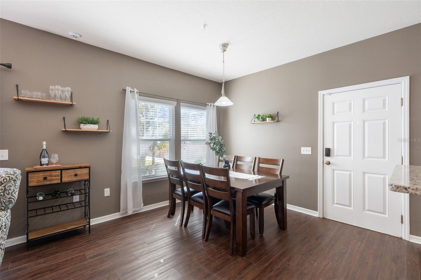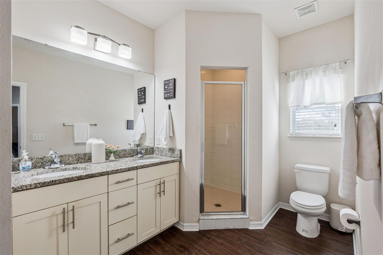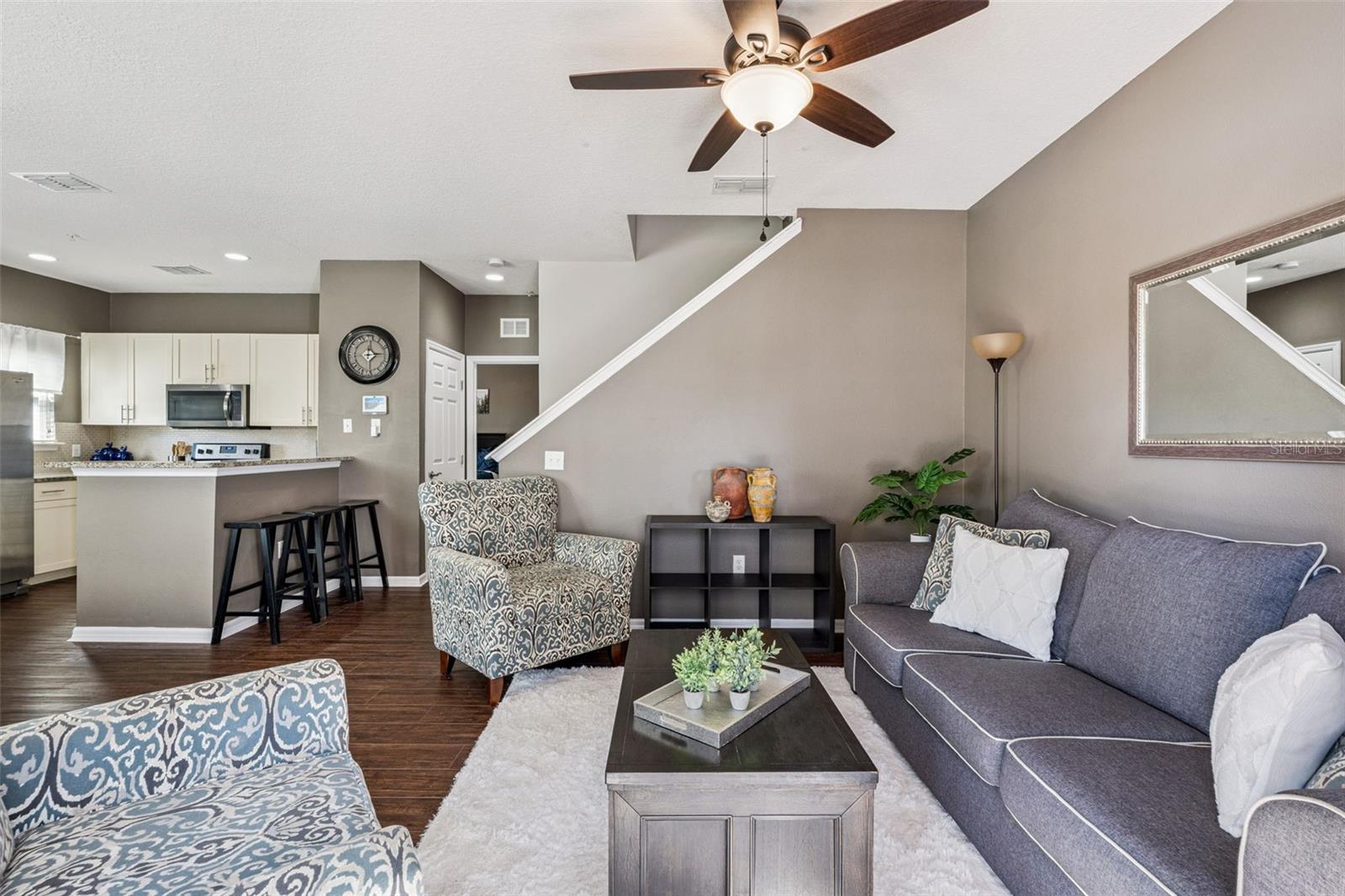 Welcome to this beautifully maintained two-story townhome located in a desirable gated community just minutes from Walt Disney World®! Whether you're looking for a primary residence, vacation getaway, or investment opportunity, this fully furnished home checks all the boxes. Step inside to find luxury vinyl flooring throughout and a bright, open layout designed for comfortable living. The kitchen features granite countertops and flows seamlessly into the living and dining areas — perfect for entertaining. French doors lead to your private outdoor patio, creating a great indoor-outdoor living space. This thoughtfully designed floor plan offers two spacious primary suites — one on each floor — both with en-suite bathrooms and walk-in closets, providing flexibility and privacy for guests or roommates. The second-floor laundry (washer and dryer included) adds everyday convenience. Located in a well-maintained community offering a clubhouse, resort-style pool, fitness center, and exterior maintenance, this property is especially attractive for Disney College Program rentals or long-term leasing. Very clean, well cared for, and truly move-in ready — don’t miss this incredible opportunity close to Disney, shopping, dining, and major highways!