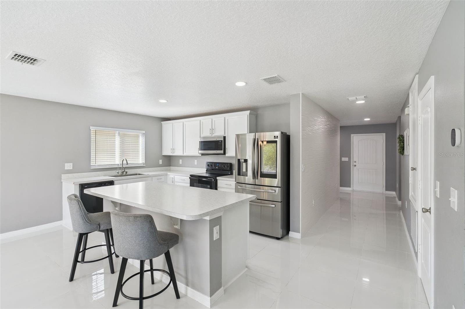 Welcome to 3233 Eagle Hammock Cir, a meticulously maintained, move-in ready 4-bedroom, 2-bath home built in 2020 and thoughtfully designed for modern comfort and everyday living. The open-concept layout features large-format tile flooring throughout the main living areas, creating a bright and cohesive space that flows seamlessly from the spacious kitchen into the dining and family rooms—perfect for both relaxing and entertaining. One of the bedrooms has been customized as a media room, offering flexible space for movie nights, a home office, or guest accommodations. Stylish accent walls and a built-in bar area with beverage cooler add warmth and personality throughout. Energy-efficient upgrades, including a whole-home water filtration system and hybrid water heater, provide added value and peace of mind. Ideally located in the desirable Eagle Hammock community of Kissimmee, just minutes from Orlando International Airport, major highways, shopping, hospitals, and a short drive to Disney and Central Florida attractions. With NO CDD, modern features, and clear pride of ownership, this home offers comfort, convenience, and lasting value. Schedule your private showing today.