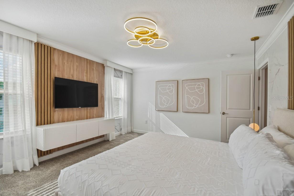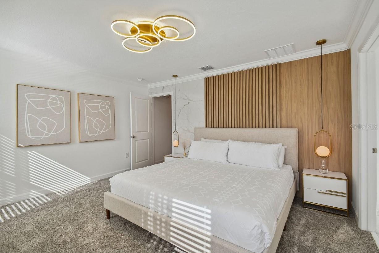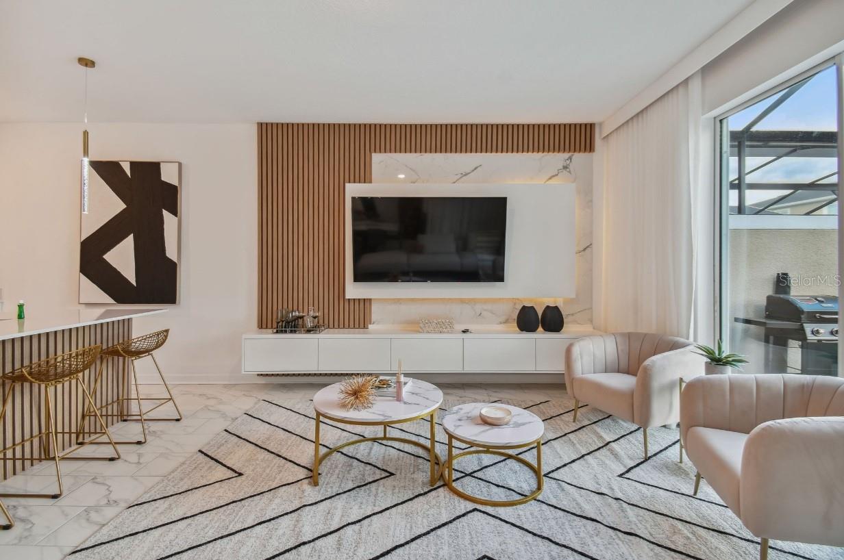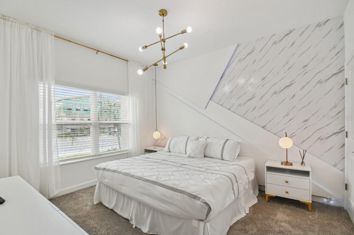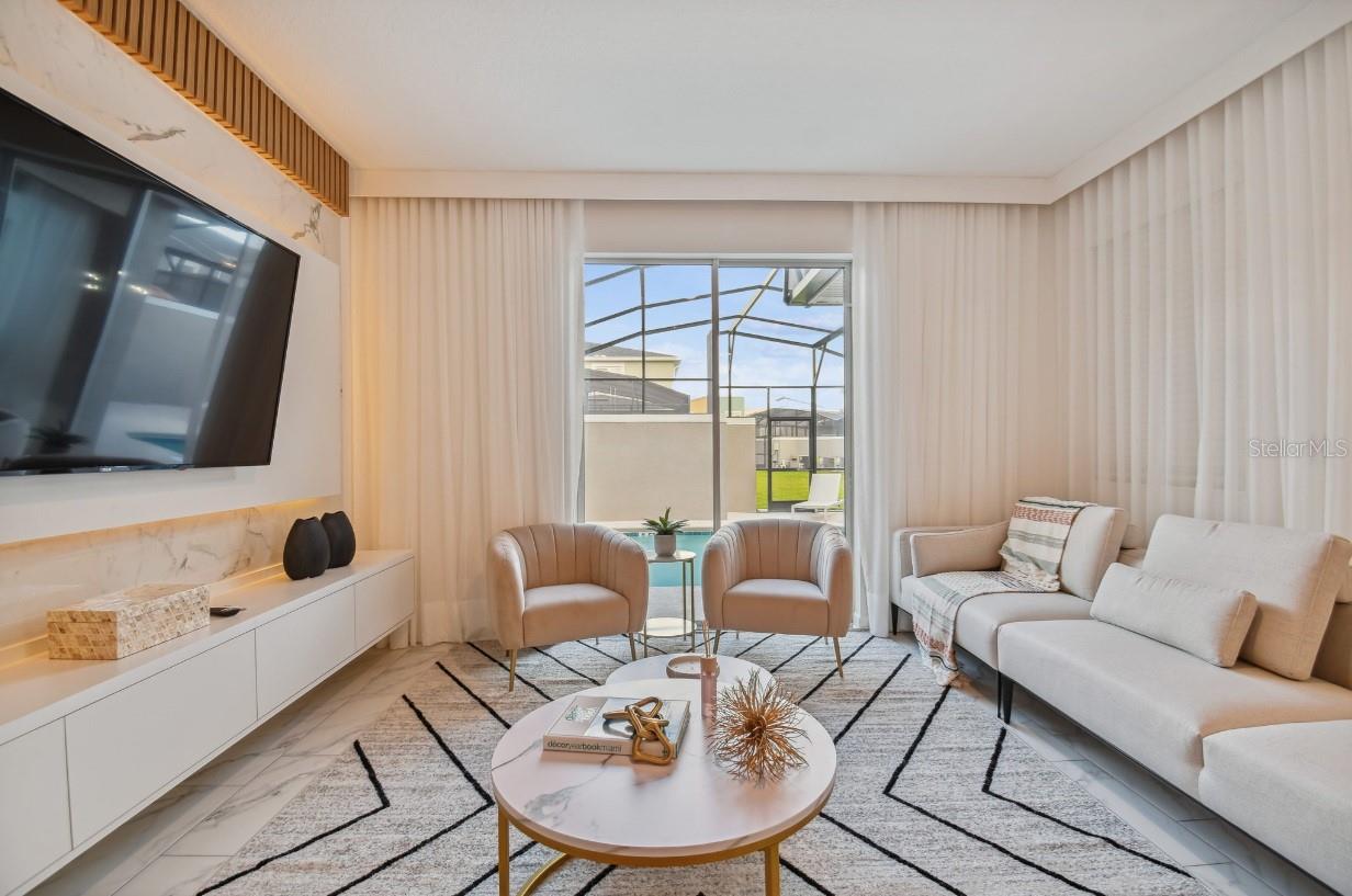 Welcome to an extraordinary opportunity for a short-term rental or a luxurious stay-n-play home, perfectly situated near all the parks and shopping destinations! Discover the magnificence of this 4-bedroom, 3-bathroom townhome, complete with a private pool and ample space to accommodate all your guests. Step into the welcoming open floorplan, thoughtfully designed to create a seamless flow throughout the home. The kitchen takes center stage, boasting a large quartz island that effortlessly connects the spacious dining and living areas. Immerse yourself in a space that effortlessly blends functionality with elegance. On the first floor, a well-appointed bedroom and a bathroom await, providing a comfortable retreat for guests or loved ones. Ascend to the second floor, where the primary bedroom, two additional bedrooms, a bathroom, and a convenient laundry room offer privacy and tranquility, ensuring a peaceful haven for everyone. Relish in the joys of outdoor living as you step through the sliding doors onto your private lanai. Here, a heated pool awaits, inviting you to enjoy refreshing swims and create lasting memories with your loved ones. The lanai also offers ample space for entertaining and relaxation, allowing you to savor the blissful Florida weather. This remarkable retreat comes fully furnished, embracing you with exquisite decor and thoughtful amenities. From versatile sleeper sofas to cozy bunk beds, every detail has been carefully curated to provide comfort and flexibility for all your guests. Venture beyond the townhome itself and discover the wonders of the community clubhouse. Indulge in a wealth of recreational facilities that rival those of a resort. Take a dip in the inviting resort-style pool, embark on a leisurely journey along the lazy river, or engage in friendly competition at the mini-golf course. For the thrill-seekers, water slides and a splash park await, while the canoeing dock offers an opportunity for serene adventures. And when it's time to stay active, the state-of-the-art fitness center provides the ideal space to exercise and rejuvenate. Experience a lifestyle of luxury and leisure, where every moment is filled with joy and relaxation. This exceptional townhome is not just a place to stay but a destination that promises an unforgettable experience.