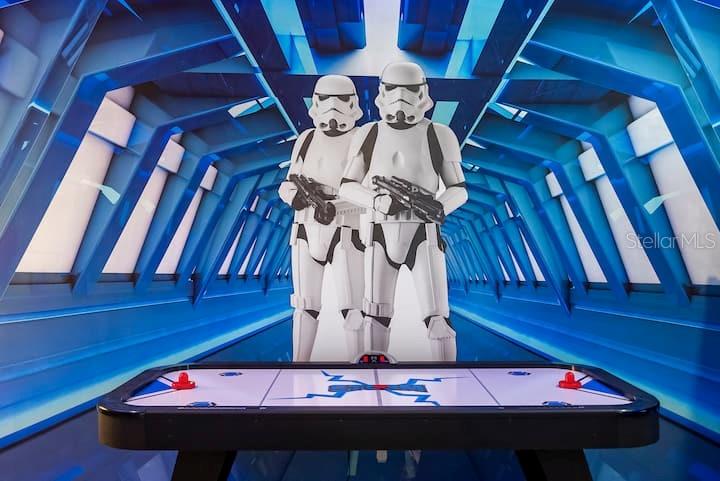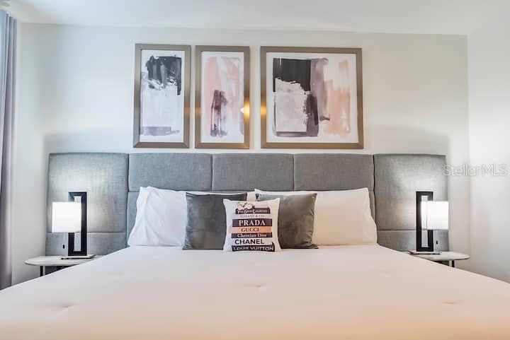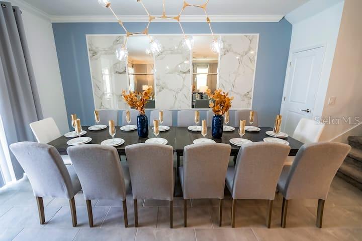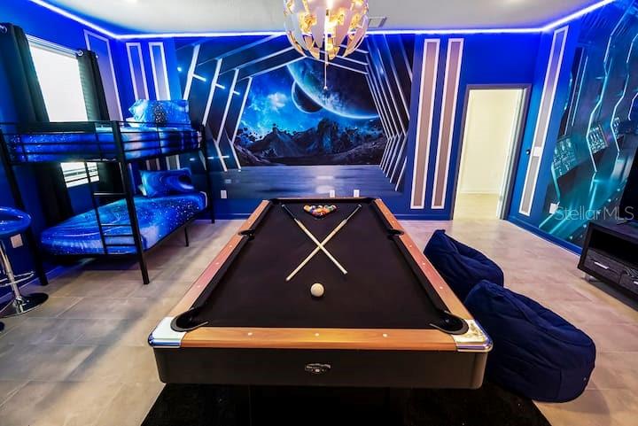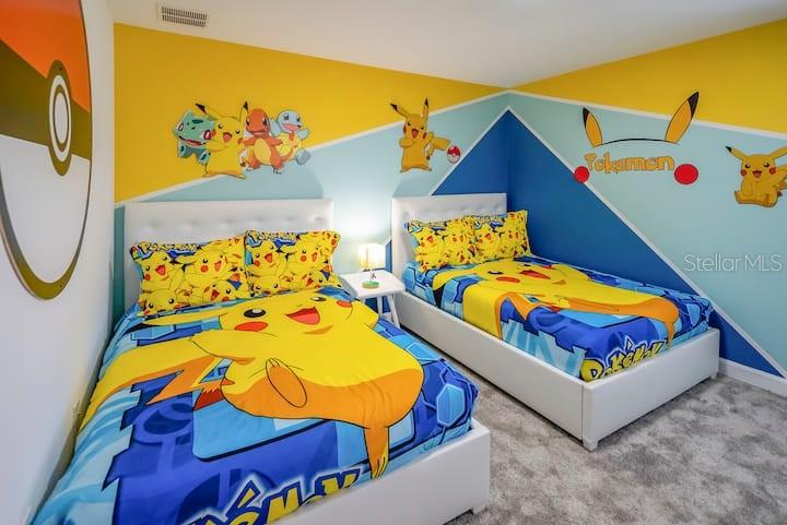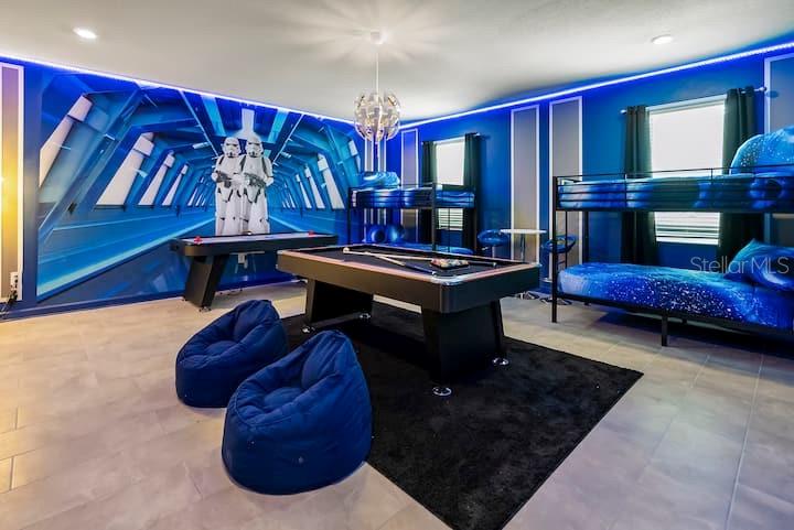 This luxurious CORNER LOT vacation home with amazing WATERVIEW is a premier investment opportunity or multi-generational retreat in the famous Storey Lake community. Fully furnished with high end furnitures and professional designed and decorated, this 9 bed/ 5 bath provide is designed to accommodate large groups or high-occupancy vacation rentals. This beautiful home features open floor plan with spacious kitchen/living room overlooking a private outdoor oasis with natural scenery and waterview. Enjoy the unique living experiences with custom themed rooms, inspired by the Avengers, Star Wars, Frozen, Harry Potter, and Pokémon. The community offers variety of fun amenities, including basketball court and golfing area, full-service state-of-the-art clubhouse with Jacuzzi, lazy river, resort style swimming pools, cabanas, poolside food and beverage service, volleyball court, playgrounds and Splash Park. Schedule a private tour today or check out the matterport 3D Tour on Zillow and MLS...