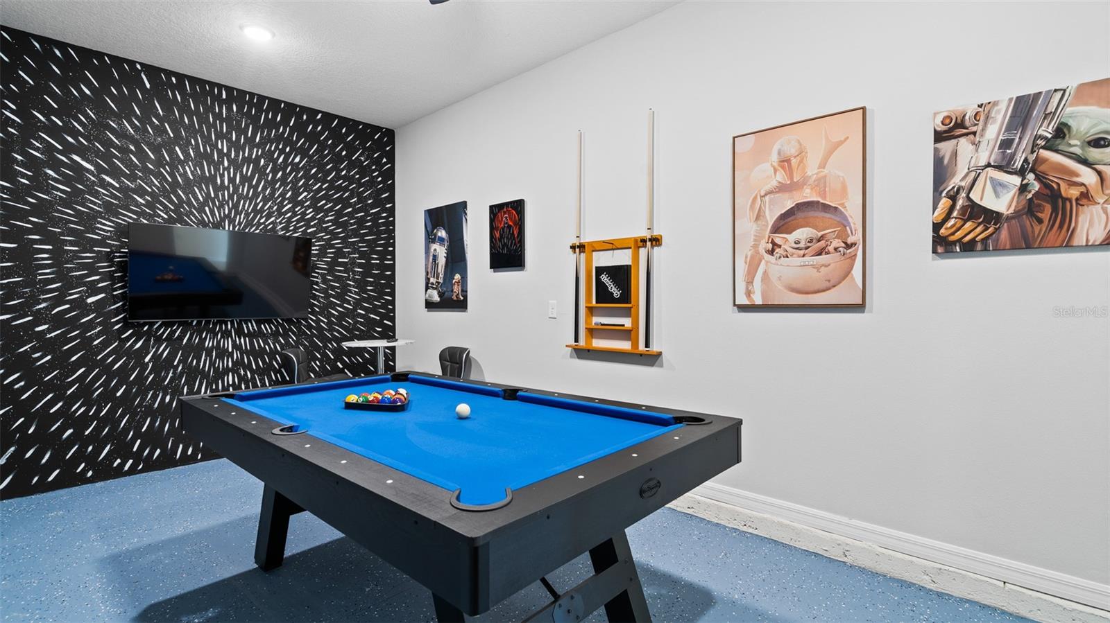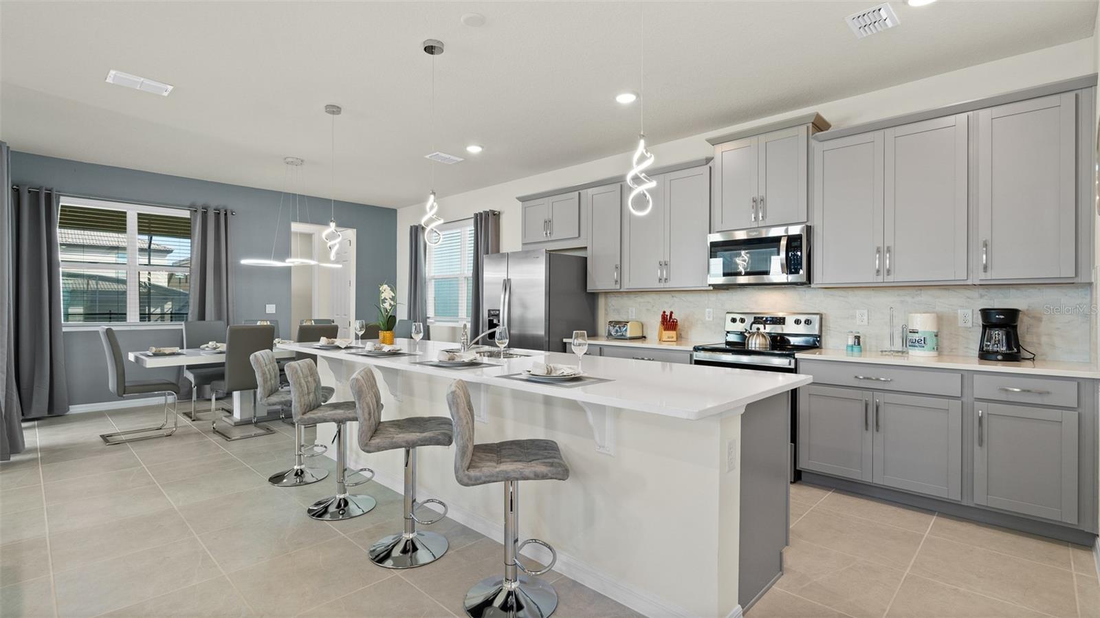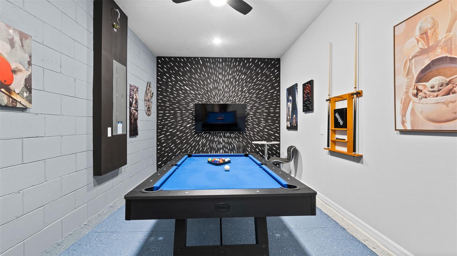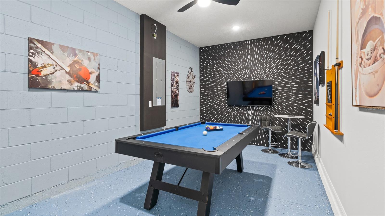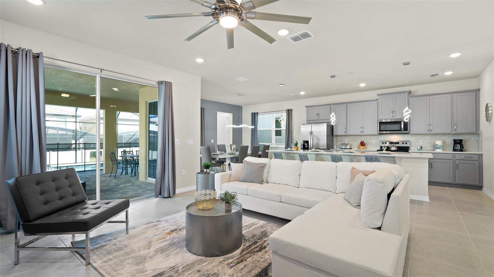 Welcome to 8917 Coconut Breeze Dr, a fully furnished vacation home located in the highly desirable Solara Resort community. Ideally situated just 20 minutes from Walt Disney World Resort and about 30 minutes from Universal Studios and the new Epic Universe, this property offers the perfect blend of convenience, comfort, and investment potential. This spacious 6-bedroom, 4-bathroom home comfortably accommodates many guests and features themed rooms designed to create a memorable vacation experience. The open-concept kitchen and dining area flow seamlessly to the private pool and patio, ideal for enjoying Florida’s sunshine. Upstairs, a large loft entertainment area includes air hockey, foosball, and gaming space, with five additional bedrooms featuring fun themes such as Star Wars, Space, and Racing. Located in the gated Solara Resort community, residents and guests enjoy resort-style amenities including pools with beach entry, fitness center, clubhouse, sports fields, playgrounds, walking trails, and on-site dining and shops.