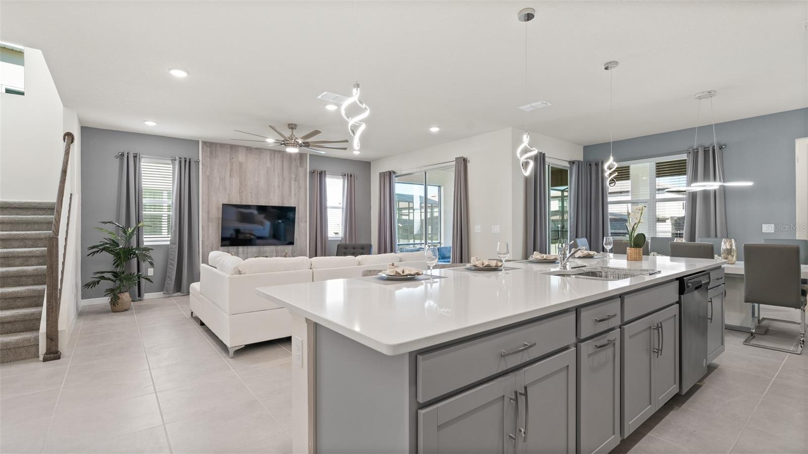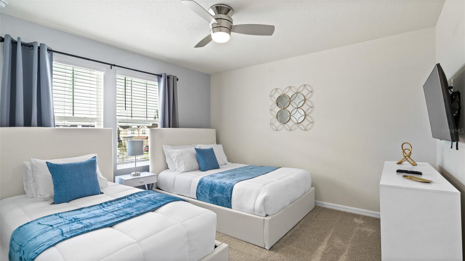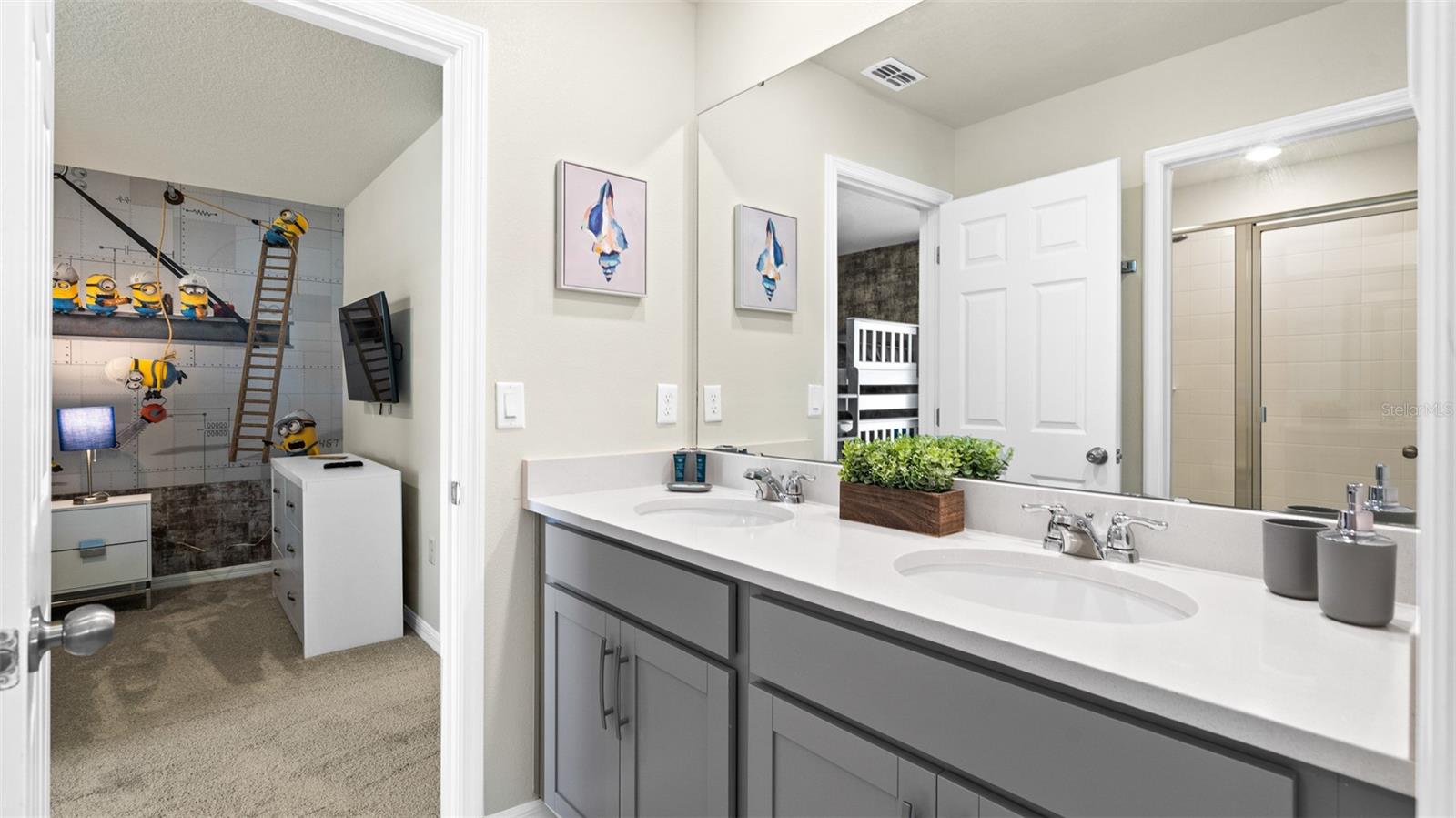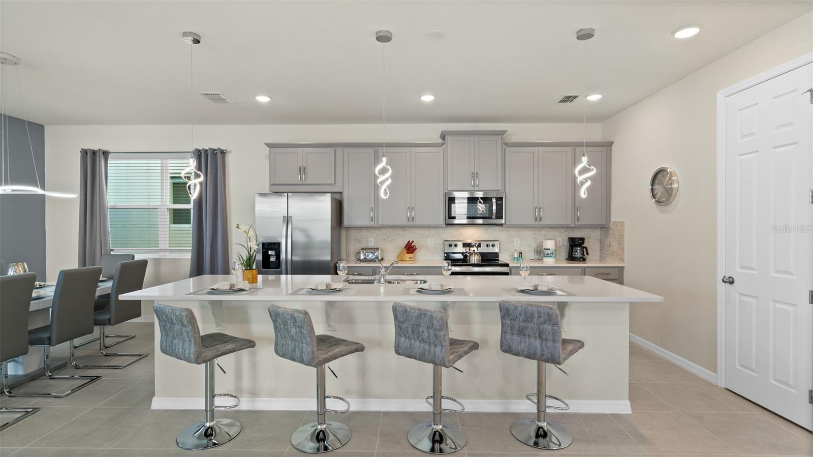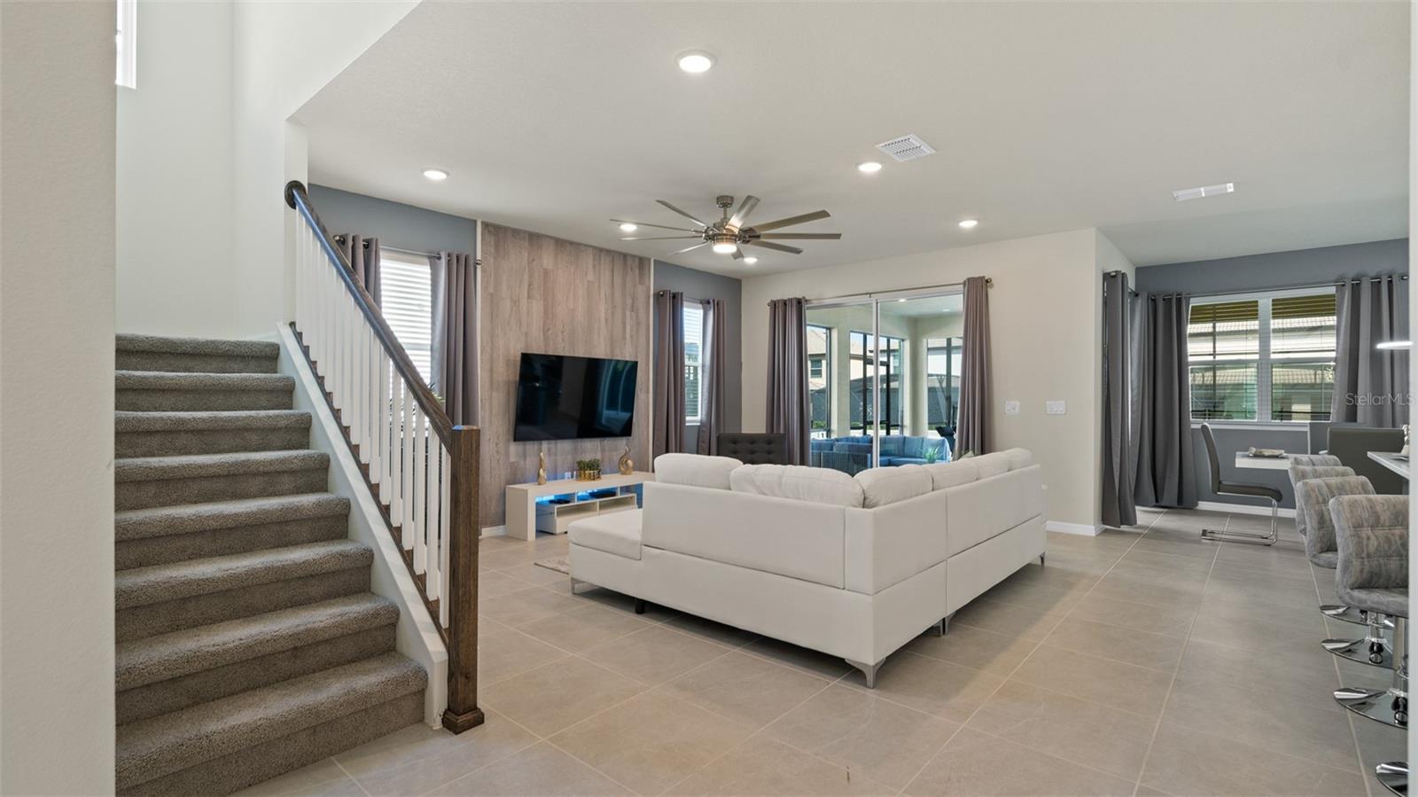 Welcome to 8917 Coconut Breeze Dr, a fully furnished vacation home located in the highly desirable Solara Resort community. Ideally situated just 20 minutes from Walt Disney World Resort and about 30 minutes from Universal Studios and the new Epic Universe, this property offers the perfect blend of convenience, comfort, and investment potential. This spacious 6-bedroom, 4-bathroom home comfortably accommodates many guests and features themed rooms designed to create a memorable vacation experience. The open-concept kitchen and dining area flow seamlessly to the private pool and patio, ideal for enjoying Florida’s sunshine. Upstairs, a large loft entertainment area includes air hockey, foosball, and gaming space, with five additional bedrooms featuring fun themes such as Star Wars, Space, and Racing. Located in the gated Solara Resort community, residents and guests enjoy resort-style amenities including pools with beach entry, fitness center, clubhouse, sports fields, playgrounds, walking trails, and on-site dining and shops.