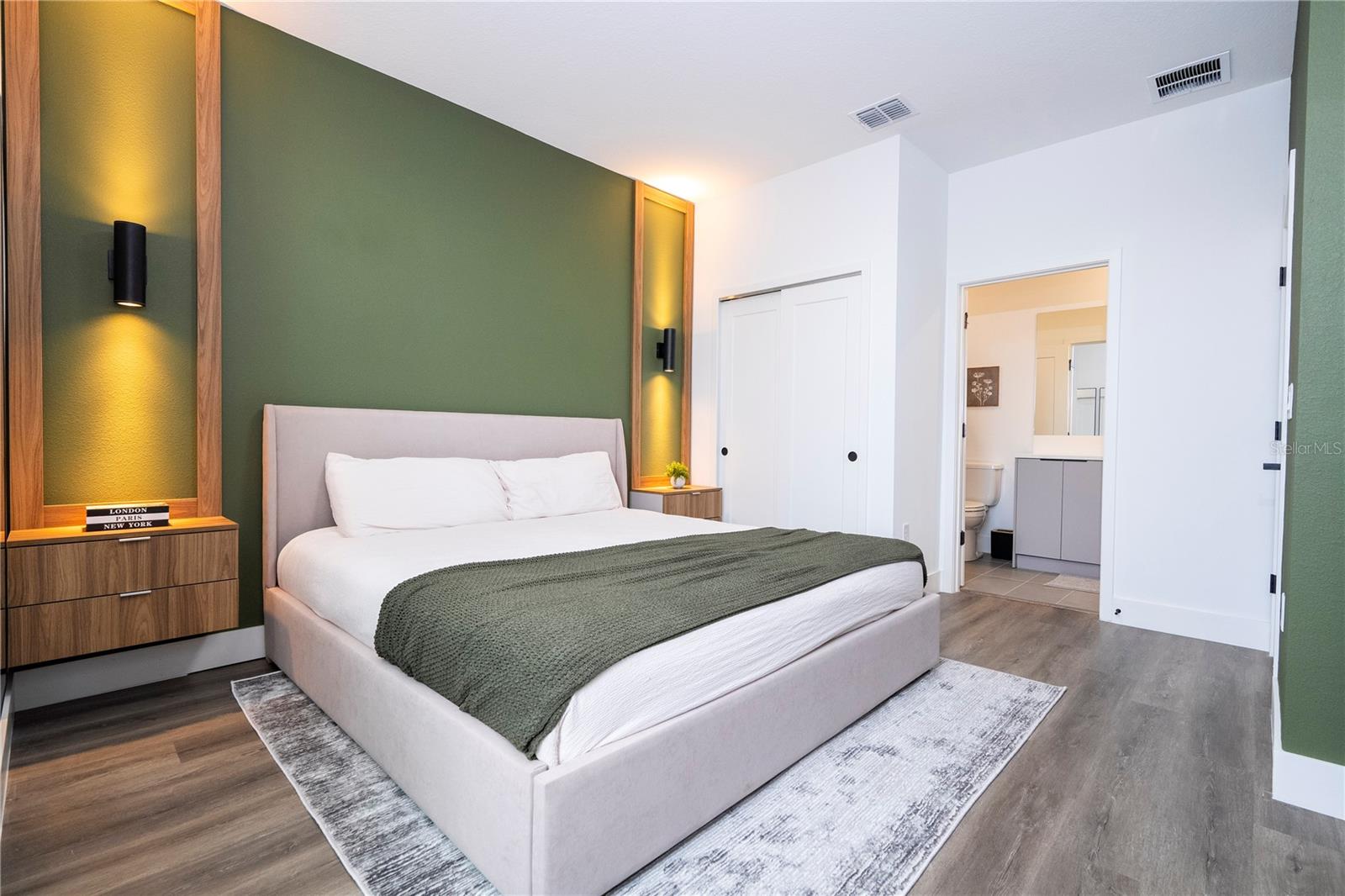 Fully upgraded from floor to ceiling, this luxury townhome blends contemporary elegance with high-end functionality — designed specifically for short-term rental success. Located in the exclusive Doppio Westside community in Kissimmee, just 15 minutes from Walt Disney World, this 5-bedroom, 4.5-bath home features an open-concept layout with spacious integrated living, dining, and kitchen areas that flow seamlessly to your own private heated pool. The kitchen is a showstopper with two oversized islands, Level 5 quartz countertops, designer backsplash, slatted wood detail, and Whirlpool stainless steel appliances. All cabinetry throughout the home includes soft-close features and matte hardware for a sleek, modern finish. Each of the five bedrooms is designed with comfort and rental flexibility in mind — including four full en-suites and one located on the first floor. The bathrooms are finished with high-end porcelain tile, glass shower enclosures, built-in niches, and vessel sinks in select locations. Luxury vinyl plank flooring runs throughout the entire home — no carpet anywhere — and 5.5" square baseboards give a clean, elevated look. Additional features include PVC windows, a smart front door lock, a lockable owner’s closet, a hybrid water heater, thermostat, and 2 Car Parking Spot. Construction is full concrete block, including second floor, with an insulated "sandwich" roof system and rubber membrane roofing designed for durability and energy efficiency. Located within a gated community, Doppio Westside offers resort-style amenities such as a lagoon-style pool, full-service restaurant, clubhouse with front desk concierge, fitness center, playground, convention center, and EV charging stations — all exclusively zoned for short-term rental with no public school restrictions. Don't miss this opportunity to invest in one of Central Florida’s most unique STR communities — fully upgraded as standard, and built with both guest experience and investor return in mind.
