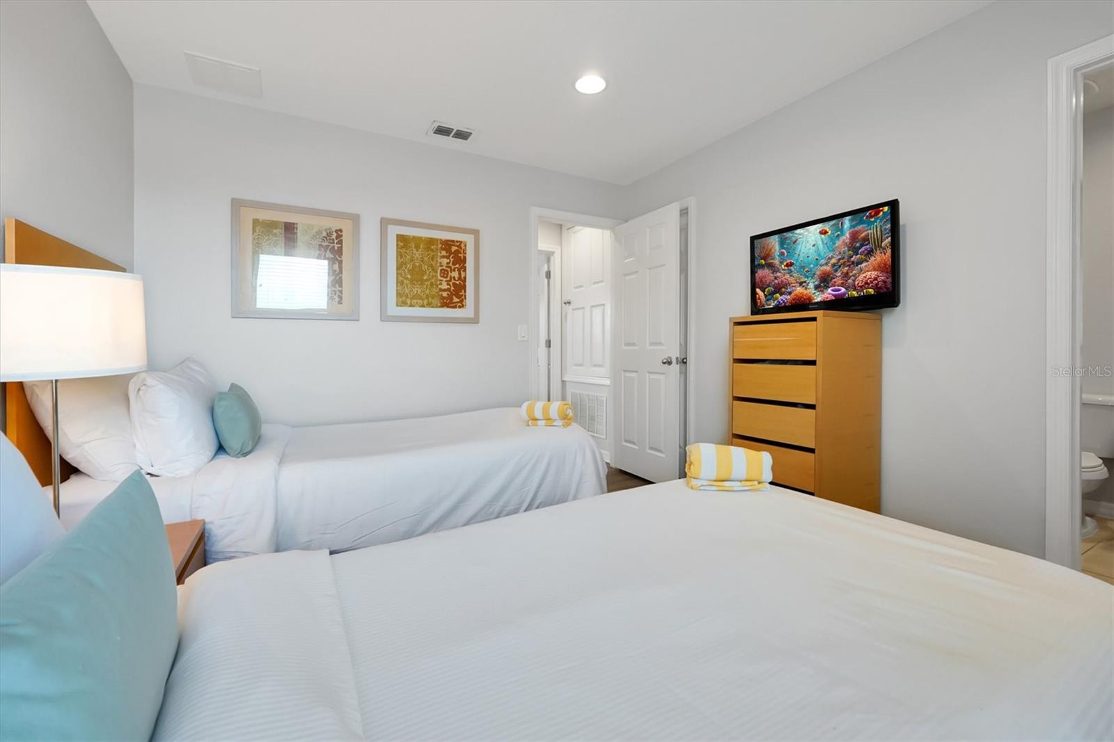 Turnkey professionally managed short term rental townhome located in the gated community of Encantada Resort, just minutes from Walt Disney World Resort. This established vacation rental is actively operating and has generated substantial gross revenue offering a seamless hands-off investment opportunity from day one. The home features an open concept main level with living/dining combination, open kitchen with granite countertops, powder room and laundry. Sliding doors open to a private outdoor lanai with an elevated view, heated hot tub a highly desirable amenity that drives higher nightly rates and repeat bookings. Upstairs a private ensuite primary bedroom, 1 ensuite guest room that provides privacy and flexibility for short term guests. Encantada Resort is short term rental approved with no rental caps and offers resort amenities including 2 pools, clubhouse, fitness center and gated security. The HOA covers exterior maintenance and amenities supporting consistent occupancy while minimizing owner involvement. Professional short term rental management is already in place and will remain, allowing the next owner to step into a proven operation without disruption. Offered as a true turnkey investment in one of Central Florida's most established vacation rental communities.