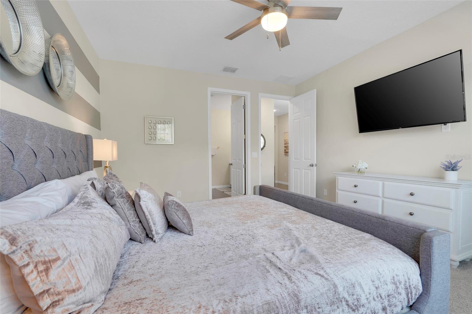 THE ONE YOU HAVE BEEN SEARCHING FOR, PRICED TO SELL!! Located less than 15 minutes from Walt Disney World and with easy access to I-4, US-192, and US-27, the home offers unmatched convenience to Orlando’s top attractions, restaurants, and shopping destinations. The HOA includes internet, cable, landscaping, and access to one of Central Florida’s most impressive amenity centers. Solara Resort delivers the ultimate resort lifestyle, with a zero-entry pool, FlowRider surf simulator, water slides, poolside cabanas, bar and grill, on-site café, state-of-the-art fitness center, yoga lawn, splash zone, playground, marketplace, and sports courts for basketball, soccer, and volleyball. Whether you’re looking to generate passive income or create a luxurious family getaway, this property checks every box. With limited inventory and high demand in Solara Resort, opportunities like this are extremely rare. Fully furnished 9-bedroom, 6.5-bathroom home in the sought-after Solara Resort! Currently operating as a successful Airbnb, this property offers an excellent opportunity for both investors and personal use. The open-concept layout features spacious living and dining areas, along with a well-equipped kitchen with stainless steel appliances and a large island perfect for entertaining. Step outside to your private screened-in pool and spa with Private Rear Views – No Rear Neighbors, offering added privacy and relaxation. Additional highlights include a garage game room, upstairs loft, and themed bedrooms designed for guest enjoyment. Located just minutes from Disney, Universal, and Orlando’s top attractions, Solara Resort offers resort-style amenities including a clubhouse, pool, restaurant, fitness center, and more. A turnkey vacation home with proven rental potential!