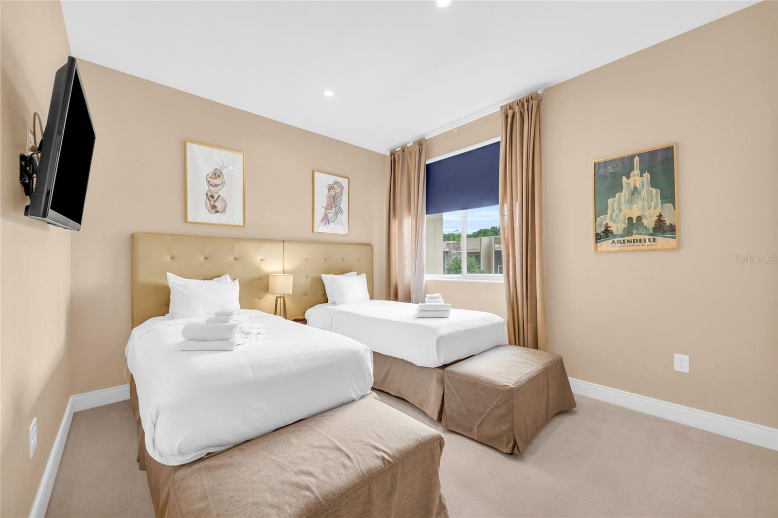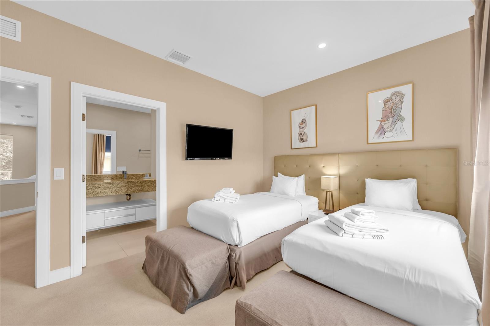 Welcome to 3158 Brasilia Ave, a stunning fully furnished luxury townhome located in the highly desirable Magic Village Resort, just minutes from Walt Disney World and Orlando’s premier attractions. This beautifully designed 4-bedroom, 4.5-bathroom residence features a contemporary open-concept layout with high ceilings, abundant natural light, and upscale finishes throughout. The home offers two spacious primary suites, including one conveniently located on the first floor, making it ideal for vacation guests or multi-generational use. The gourmet kitchen is equipped with granite countertops, stainless steel appliances, and custom wood cabinetry, seamlessly flowing into the living and dining areas for effortless entertaining. Step outside to a private patio complete with a built-in grill and sink, overlooking a peaceful lake view, while a second-floor balcony provides an additional space to relax and unwind. Located within a premier short-term rental community, this property offers excellent income potential with strong and consistent demand driven by its close proximity to Disney, major theme parks, shopping, dining, and entertainment. Residents and guests of Magic Village enjoy access to resort-style amenities including a community pool, hot tub, on-site restaurant, and a fully equipped fitness center, enhancing both guest experience and rental appeal. The home is being sold fully furnished with high-end décor, flat-screen televisions, hotel-quality bedding, and all essential housewares, making it completely turnkey for immediate personal use or rental income. Whether you are seeking a vacation home, investment property, or both, this residence presents a rare opportunity to own a luxury property in one of Central Florida’s most sought-after resort communities.