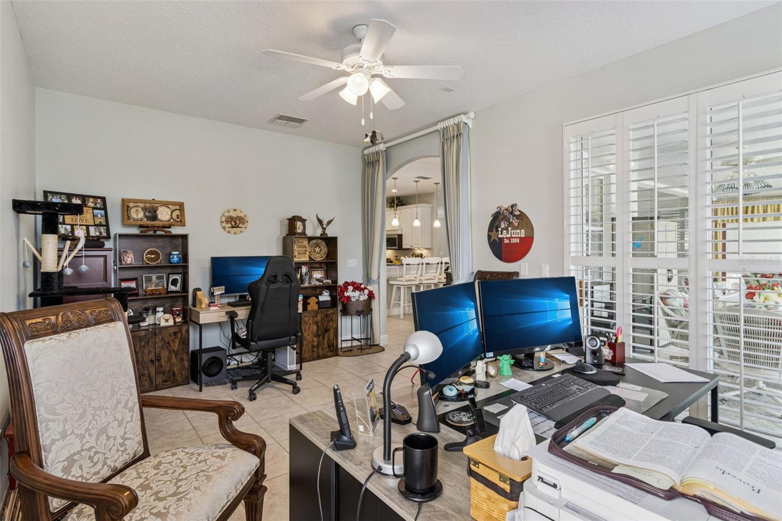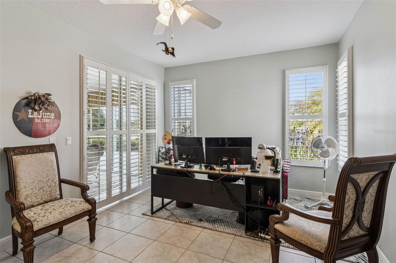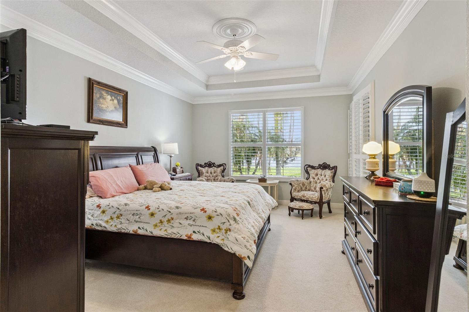 One or more photo(s) has been virtually staged. Exquisitely maintained and beautifully upgraded, this 2,528 sq ft home is ideally situated on a premium oversized homesite with an exceptional tranquil pond and golf course views. Designed for both everyday living and entertaining, the open-concept floor plan features 2 bedrooms, 2 baths, a spacious private study/den, and an oversized 2-car garage. Enjoy true Florida living in the expansive Florida room and the large covered, screened lanai-perfectly positioned to capture the serene water and golf course views. Inside, tile flooring extends throughout the main living areas, complemented by elegant crown molding and abundant natural light. The well-appointed kitchen is the centerpiece of the home, featuring granite countertops and backsplash, ample prep space, and upgraded cabinetry! It opens seamlessly to the great room and dining area, creating an ideal setting for entertaining or relaxing while enjoying the peaceful views. Updates include New Roof 2024, Central Vacuum System, plantation shutters and a new HVAC system installed in 2025, offering added comfort and peace of mind. Located within the award-winning 55+ community of Solivita, residents enjoy resort-style amenities including 14 community pools, 2 championship golf courses, 3 on-site restaurants, over 250 social clubs, a vibrant village center, and more than 4,200 acres of beautifully maintained grounds. HOA dues include lawn care, irrigation water, highspeed internet and cable service — delivering true maintenance-free living.