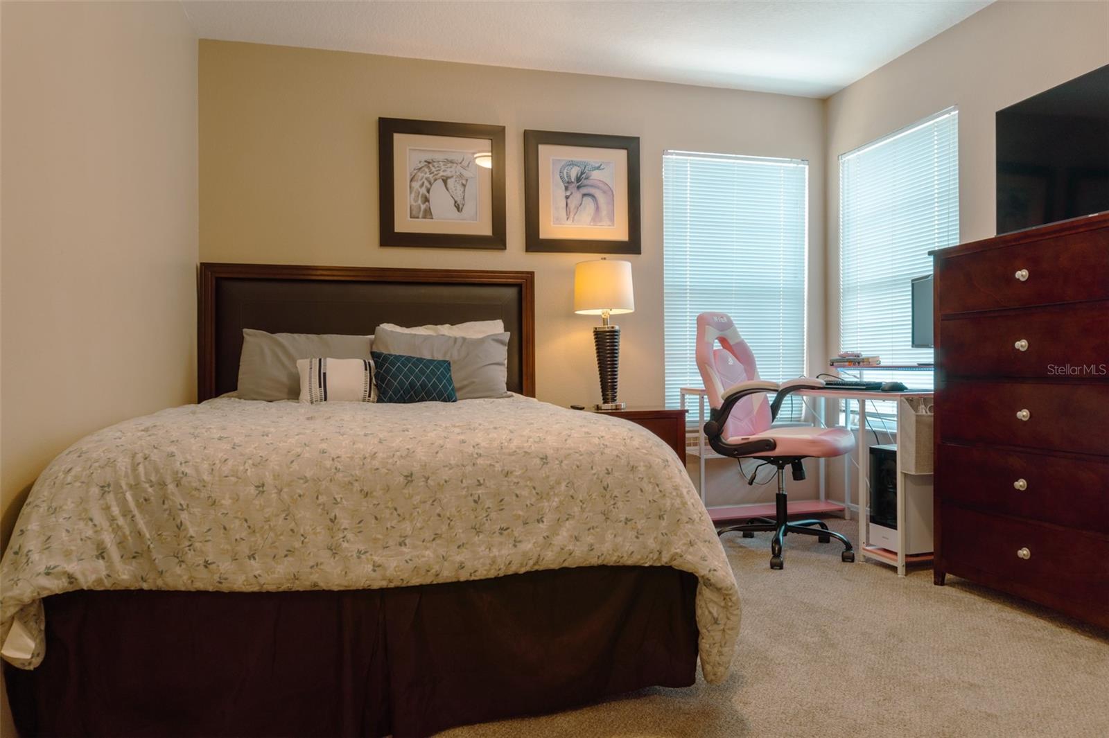 Motivated Seller!! Don’t wait any longer! Beautifully and professionally decorated 5 Bedroom / 4 Bath luxury vacation home in one of the most sought-after and secluded short-term rental communities—Windsor Palms, very well managed, low maintenance fees and manned-gate community. This fully furnished single-family pool home is turnkey-ready, ideal as a primary residence, second home, or an income-producing Airbnb vacation property. The home offers 2 spacious master suites downstairs plus 1 additional bedroom, along with 2 more bedrooms upstairs. Both upstairs bedrooms include large walk-in closets, king-size beds, and en-suite bathrooms, with one featuring a Jack-and-Jill layout. A Disney Castle-themed twin bedroom adds a magical touch for families. Recent upgrades include a new AC unit (2021), new carpets (2022), rescreened pool (2024) and a new pool filter (2024). The open living room, kitchen, and dining room combination provides the perfect space for family gatherings and entertaining. The home is also equipped with a smart electronic door lock system with internet and app control, allowing up to 30 unique codes, plus a Nest-style smart thermostat. Windsor Palms Resort is one of the premier vacation destinations in Kissimmee—just 2.5 miles (4 km) from Walt Disney World. Residents and guests enjoy a huge resort-style pool with a clubhouse and tiki bar, a comfortable lounge, a private 58-seat movie theater with regular showings, a gaming arcade, internet café, and fitness center. There’s also a coffee shop and convenience store on-site. Outdoor activities include tennis, basketball, and volleyball courts. Call today to schedule your private showing!