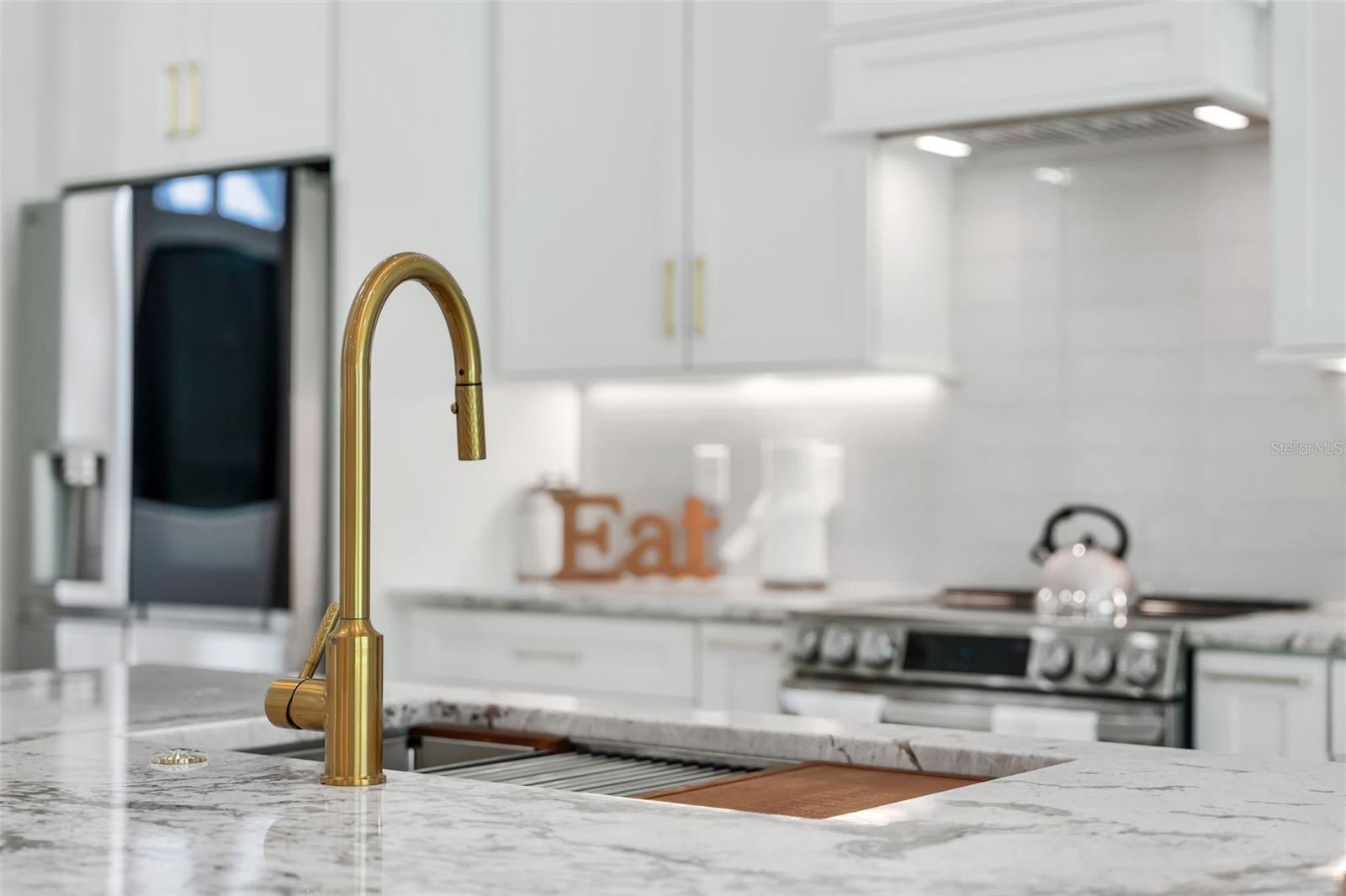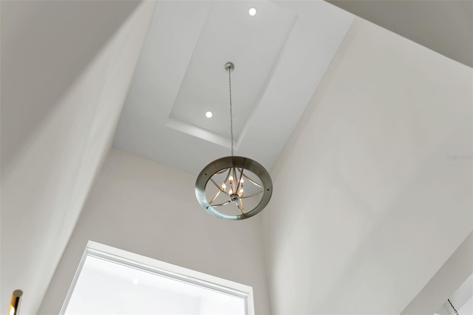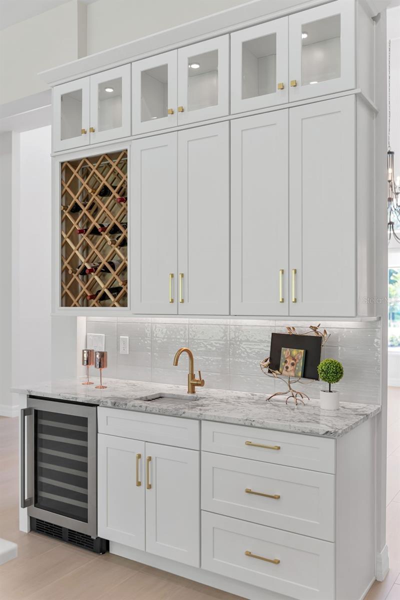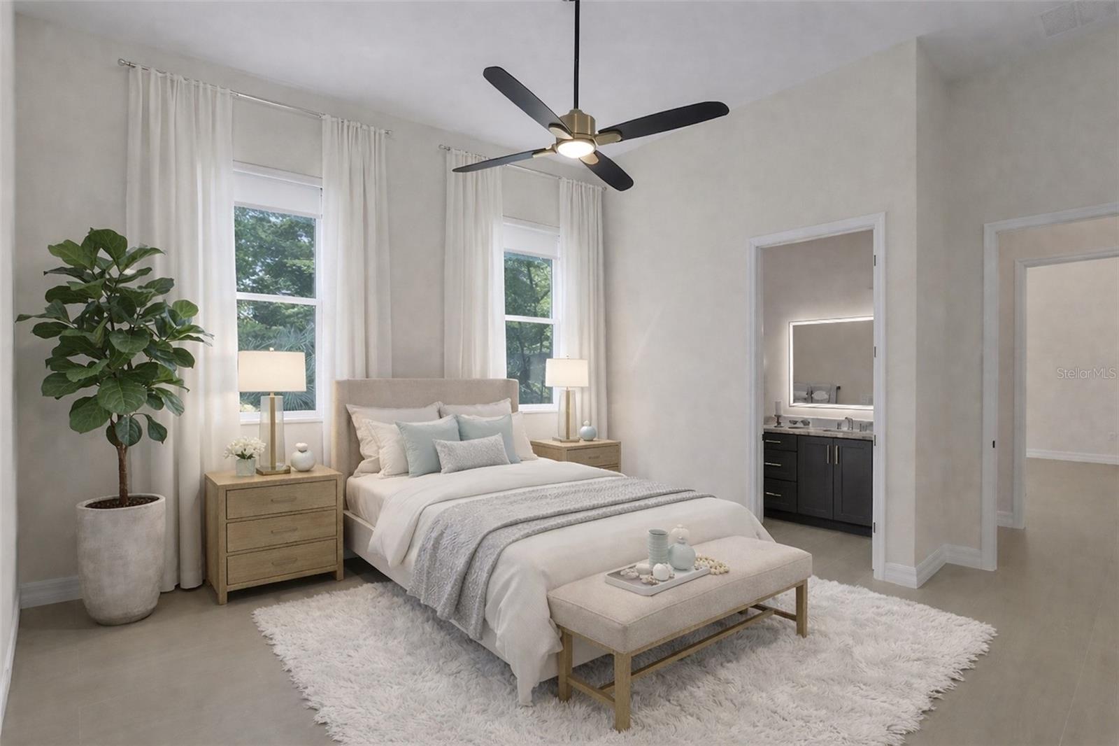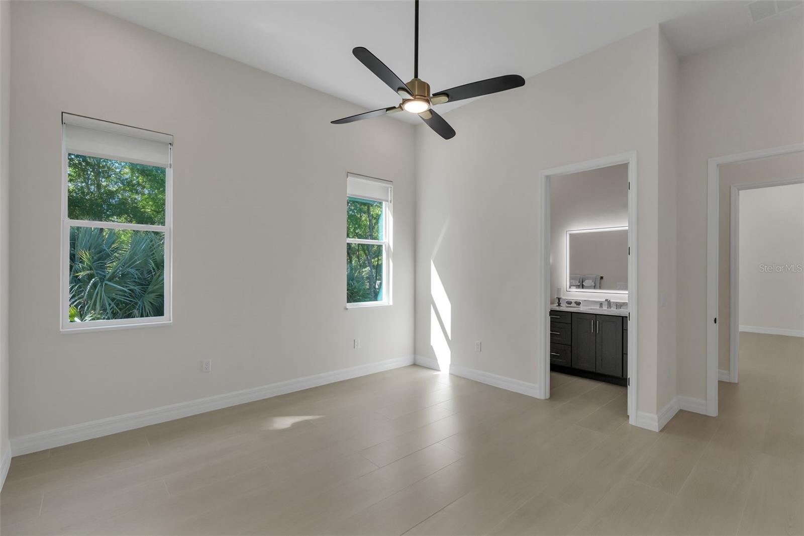One or more photo(s) has been virtually staged. Brand-new custom-built estate offering 4,179 sq ft of living space (5,558 sq ft under roof) on 5 private acres—never lived in! Ideally located in the sought-after acreage community of Happy Trails, just minutes from Celebration, Reunion, and Walt Disney World, this exceptional property offers the perfect blend of luxury, privacy, and convenience with no HOA restrictions and ample space for horses, recreation, and enjoying your private setting. Step inside to experience impressive architectural design, highlighted by 24-foot coffered ceilings in the grand foyer and formal dining room, a vaulted ceiling reaching 14 feet in the main living area, and 12–13 foot ceilings throughout, creating a bright, open, and expansive atmosphere. At the heart of the home is a stunning designer kitchen featuring an oversized island topped with Italian Mona Lisa granite, creating a true centerpiece for entertaining and everyday living. The kitchen is further enhanced by floor-to-ceiling custom cabinetry with illuminated upper display cabinets, a wet bar with wine cooler, and elegant finishes throughout. The open-concept layout flows seamlessly into the main living space, complemented by premium porcelain tile flooring throughout. The spacious living area features a modern electric fireplace with mantel surround, beautifully complemented by custom built-in cabinetry and designer wall shelving, adding warmth and architectural elegance to the space. The thoughtfully designed floor plan includes a central living area with a kitchen/family room combo and a desirable split-bedroom layout for added privacy. The luxurious primary suite is a true retreat, featuring an elegant double-door entry and dual oversized walk-in closets, including a custom “hers” closet measuring approximately 20’8” x 5’6” and a generous “his” closet at 13’8” x 5’8”, both designed with quality wood shelving and mirrored sliding doors. Additional highlights include Energy Star® certified windows, step-free access throughout, and a beautifully finished paver driveway, walkways, and outdoor living areas. The home is also equipped with a private well system, providing a reliable water source and eliminating monthly water utility costs. This rare 5-acre estate offers exceptional privacy and space while being conveniently located near world-class dining, shopping, and entertainment.