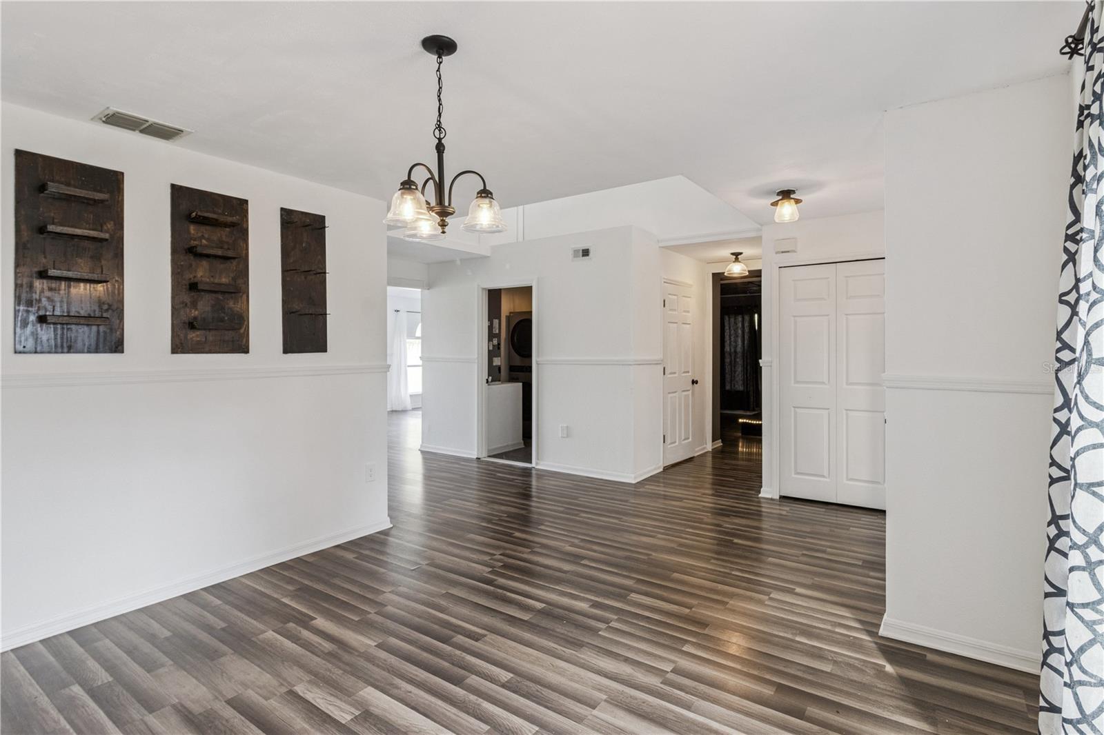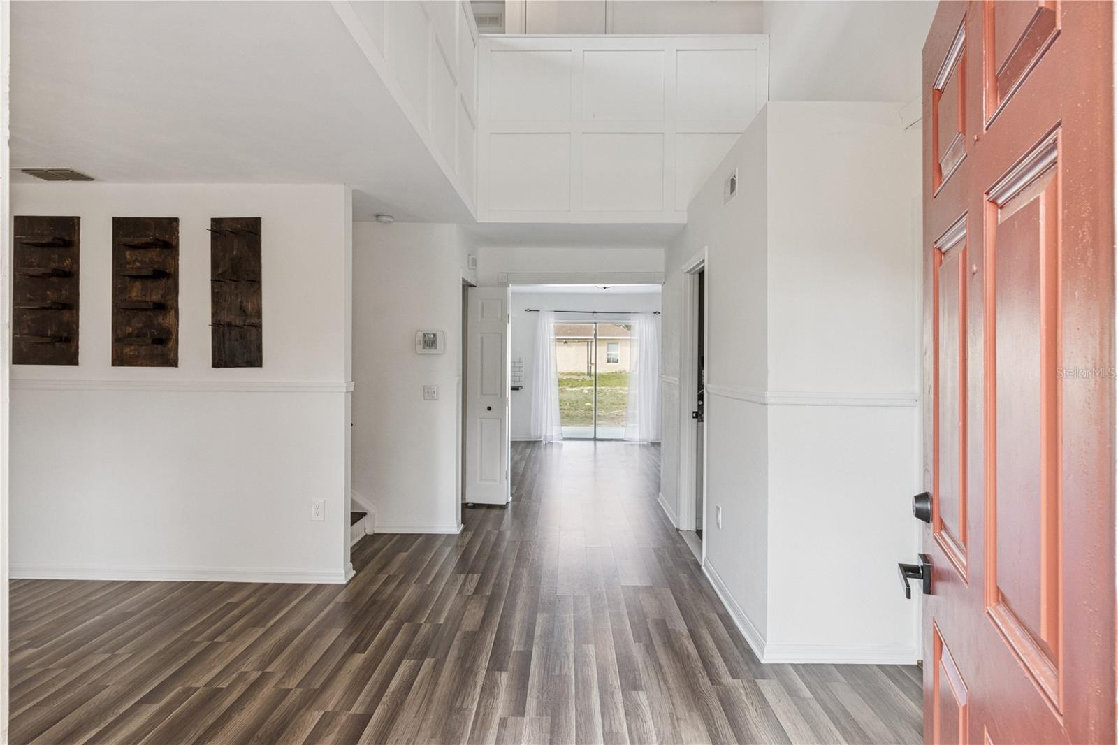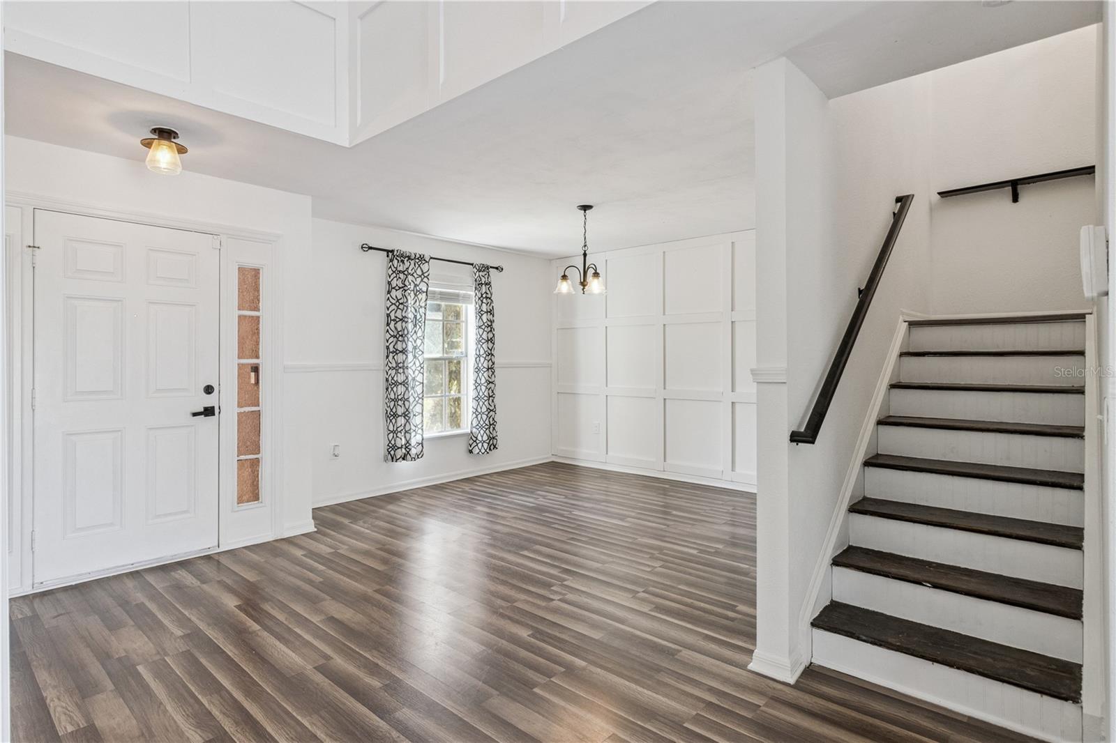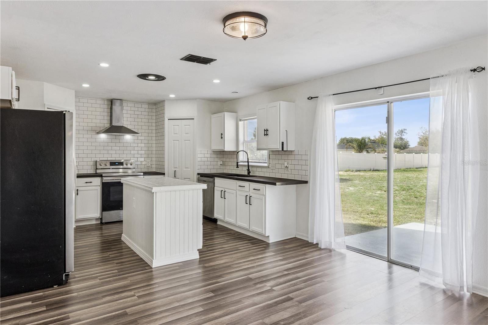 This masterfully crafted residence embodies the essence of Florida living at its finest. Nestled on a spacious ~1/3-acre lot, this home boasts an impressive array of feaures and upgrades, all completed just a year ago. These improvements include wood-inspired laminate flooring throughout, updated faucets and ceiling fans, custom framing and woodwork, and new ceramic tile and backsplashes in the bathrooms. Additionally, the home enjoyes a custom-built movie theater, along with a custom-built wine rack and smart, color-changing recessed lighting in the kitchen. The property boasts 4 bedrooms, 2.5 bathrooms, a versatile loft, a media room, and a 2-car garage. The moment you step through the front door of this 2,817 SF, exquisitely appointed home, you’re greeted by a soaring two-story foyer that sets the tone for an inviting and memorable experience. The expansive formal dining room decorated with beautiful custom made wine rack and chandelier is perfect for hosting gatherings. The kitchen is a chef’s delight, featuring crisp white wood cabinetry adorned with a subway-tile backsplash, expansive butcher-block countertop space and a freestanding island, plus stainless-steel appliances—including a refrigerator, range, dishwasher, and microwave—along with a freestanding hood, undermount sink, and oil-rubbed bronze faucet and fixtures. A cozy breakfast nook provides a spot for casual meals or lively family conversations. Beyond the kitchen is the family room, where you can relax with loved ones or step through the sliding glass doors into the sprawling backyard. The first floor is completed by a well-appointed laundry room with a front-loading touchscreen washer/dryer and a beautiful half bath. Ascending to the second floor, you’ll find a luxurious primary suite designed as a private retreat. The ensuite bathroom exudes spa-like luxury with a garden tub, separate shower stall, white penny-tile flooring and backsplash for a classic, elegant look, and walk-in closet for exceptional organization. Three additional bedrooms share a fully upgraded secondary bathroom, thoughtfully designed with double sinks, upgraded penny-tile flooring and backsplash and a stylish tub/shower combo. A spacious loft completes the second floor, offering endless possibilities such as a game room or flexible living area. Step outside to your huge backyard—perfect for outdoor entertaining, family gatherings, or soaking up the Florida sunshine. The seamless indoor-outdoor flow makes this home an entertainer’s dream. Located in the vibrant Poinciana community, the property offers easy access to major highways, hospitals, medical facilities, dining, and shopping options. This home isn’t just a residence—it’s a lifestyle. Experience the perfect blend of elegance and everyday comfort in this extraordinary home.