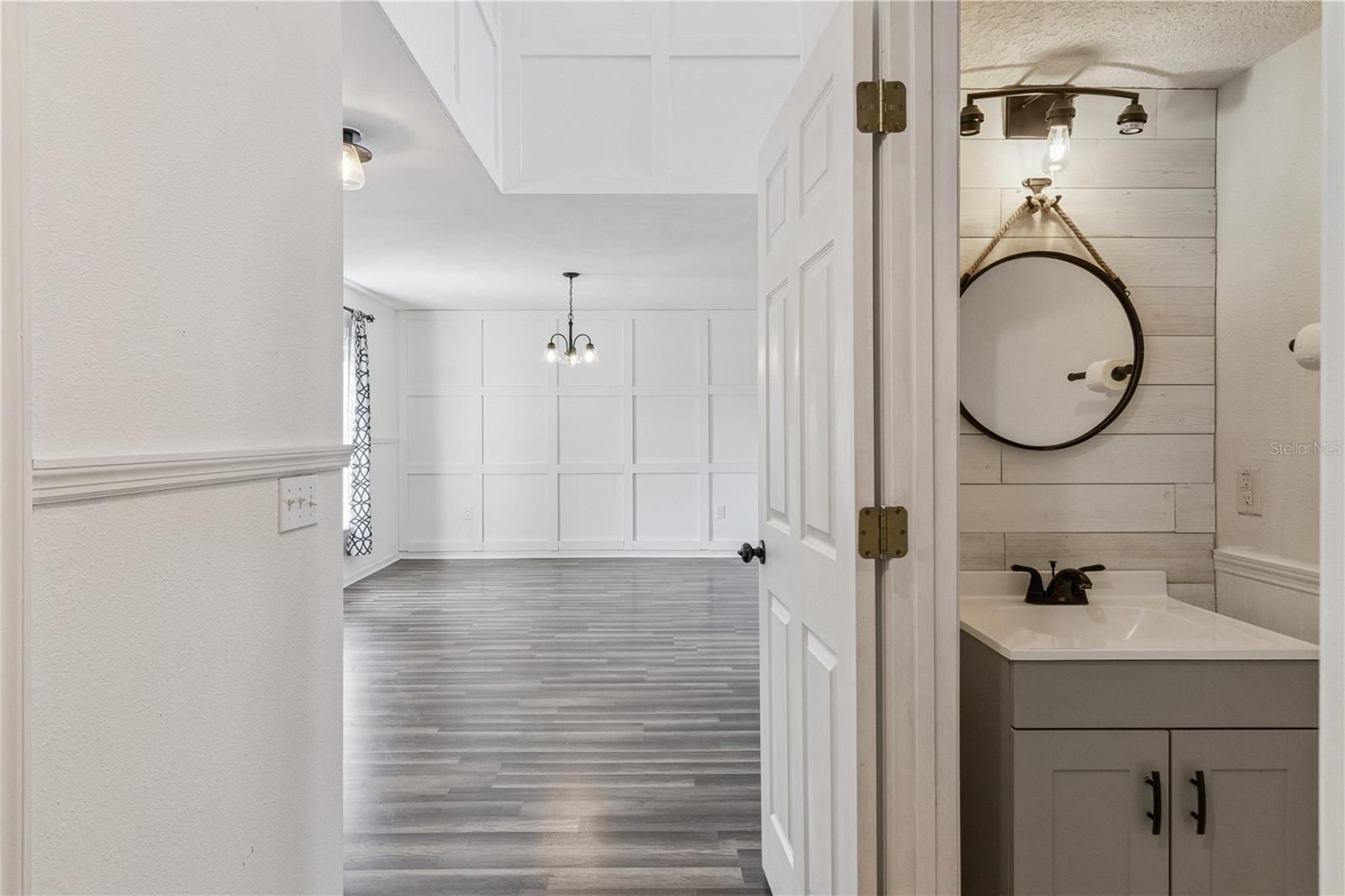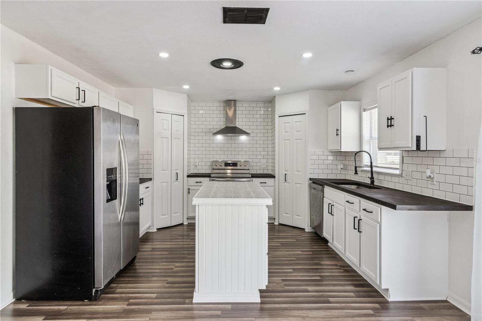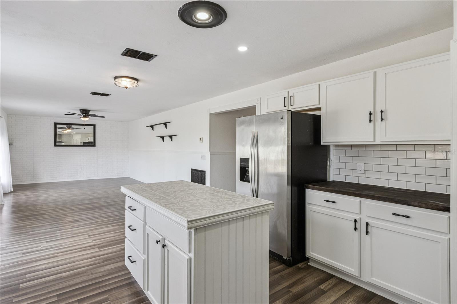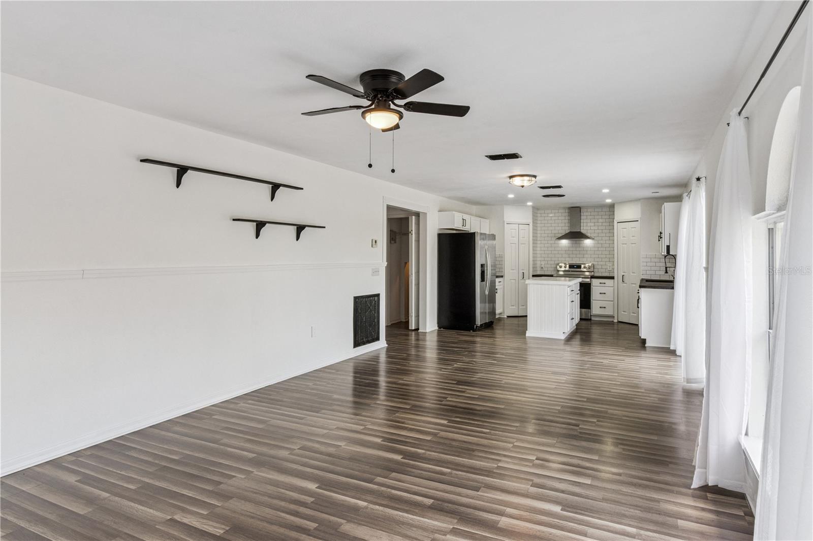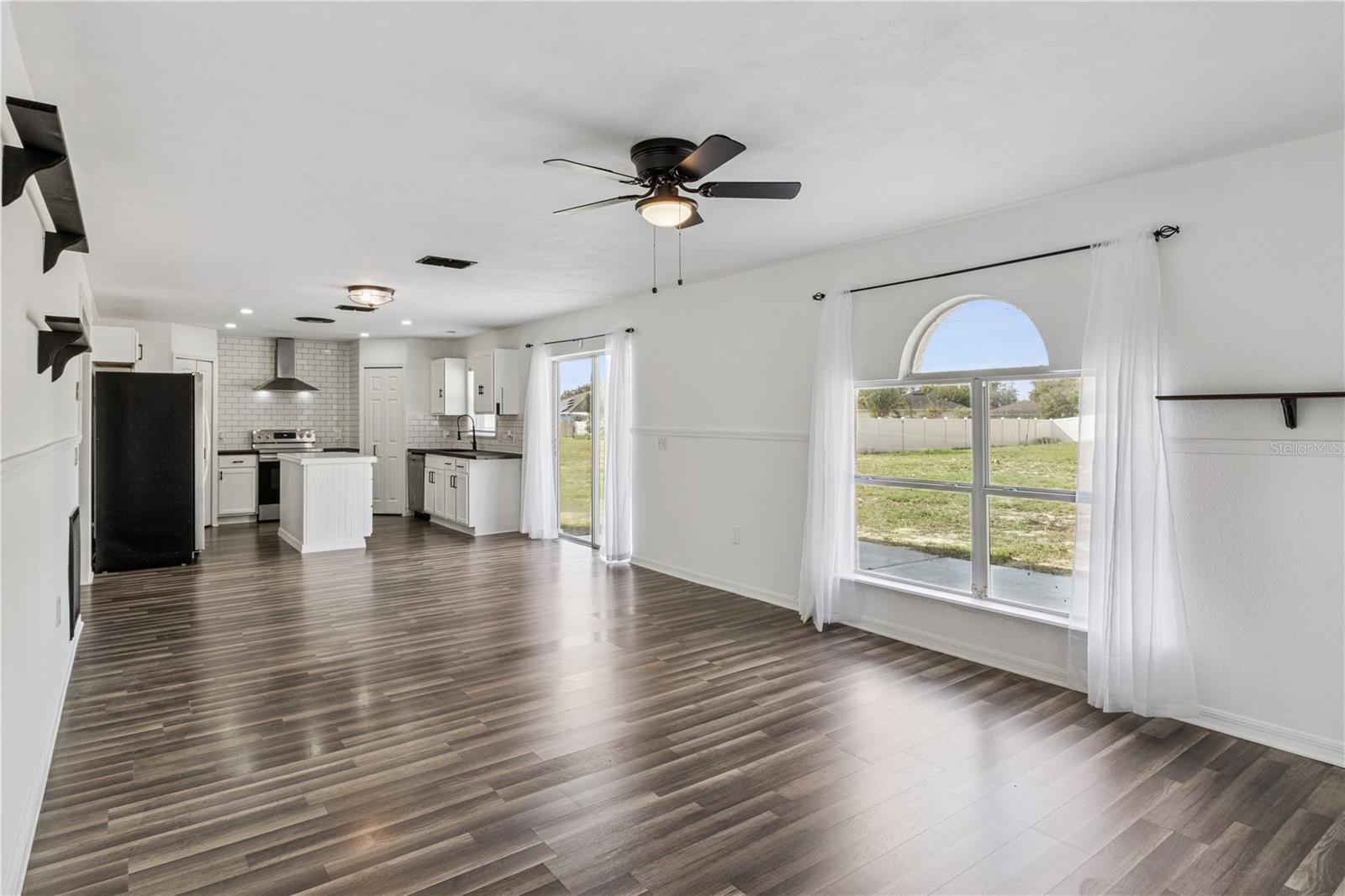 This masterfully crafted residence embodies the essence of Florida living at its finest. Nestled on a spacious ~1/3-acre lot, this home boasts an impressive array of feaures and upgrades, all completed just a year ago. These improvements include wood-inspired laminate flooring throughout, updated faucets and ceiling fans, custom framing and woodwork, and new ceramic tile and backsplashes in the bathrooms. Additionally, the home enjoyes a custom-built movie theater, along with a custom-built wine rack and smart, color-changing recessed lighting in the kitchen. The property boasts 4 bedrooms, 2.5 bathrooms, a versatile loft, a media room, and a 2-car garage. The moment you step through the front door of this 2,817 SF, exquisitely appointed home, you’re greeted by a soaring two-story foyer that sets the tone for an inviting and memorable experience. The expansive formal dining room decorated with beautiful custom made wine rack and chandelier is perfect for hosting gatherings. The kitchen is a chef’s delight, featuring crisp white wood cabinetry adorned with a subway-tile backsplash, expansive butcher-block countertop space and a freestanding island, plus stainless-steel appliances—including a refrigerator, range, dishwasher, and microwave—along with a freestanding hood, undermount sink, and oil-rubbed bronze faucet and fixtures. A cozy breakfast nook provides a spot for casual meals or lively family conversations. Beyond the kitchen is the family room, where you can relax with loved ones or step through the sliding glass doors into the sprawling backyard. The first floor is completed by a well-appointed laundry room with a front-loading touchscreen washer/dryer and a beautiful half bath. Ascending to the second floor, you’ll find a luxurious primary suite designed as a private retreat. The ensuite bathroom exudes spa-like luxury with a garden tub, separate shower stall, white penny-tile flooring and backsplash for a classic, elegant look, and walk-in closet for exceptional organization. Three additional bedrooms share a fully upgraded secondary bathroom, thoughtfully designed with double sinks, upgraded penny-tile flooring and backsplash and a stylish tub/shower combo. A spacious loft completes the second floor, offering endless possibilities such as a game room or flexible living area. Step outside to your huge backyard—perfect for outdoor entertaining, family gatherings, or soaking up the Florida sunshine. The seamless indoor-outdoor flow makes this home an entertainer’s dream. Located in the vibrant Poinciana community, the property offers easy access to major highways, hospitals, medical facilities, dining, and shopping options. This home isn’t just a residence—it’s a lifestyle. Experience the perfect blend of elegance and everyday comfort in this extraordinary home.