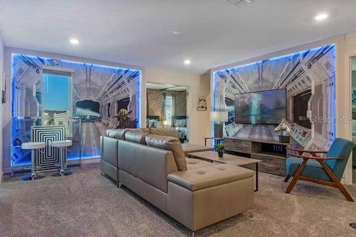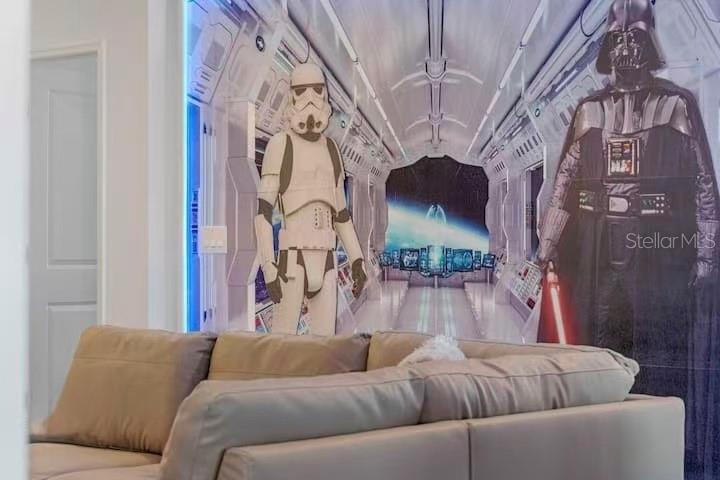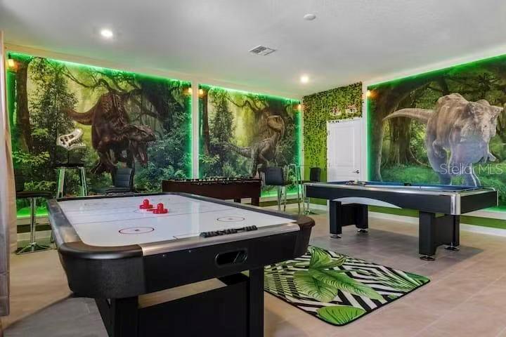 Turnkey 8BR Vacation Home in Storey Lake Resort | Near Disney. Beautifully furnished 8-bedroom, 5-bathroom vacation home in the highly desirable Storey Lake Resort, just minutes from Orlando’s top attractions. This popular Santiago model, the largest floor plan in the community, offers 4289 sq ft and is fully furnished and move-in ready, ideal for short-term rental or personal use. The home features a spacious open-concept layout with living and dining areas flowing into a modern kitchen with quartz countertops, stainless steel appliances, and a large island. A first-floor bedroom and full bath provide added flexibility for guests. Upstairs, the remaining bedrooms are thoughtfully arranged for comfort and privacy. Themed bedrooms enhance guest experience and boost rental appeal. Enjoy your private screened pool and covered lanai, perfect for relaxing or entertaining. Storey Lake Resort offers resort-style amenities, including a clubhouse, fitness center, water park with lazy river and slides, tiki bar, and sports courts. Conveniently located approximately 4 miles from Walt Disney World and minutes to Universal Studios, SeaWorld, shopping, dining, and major highways. Excellent opportunity for a high-performing vacation rental or personal getaway. Rental history and management information available upon request.