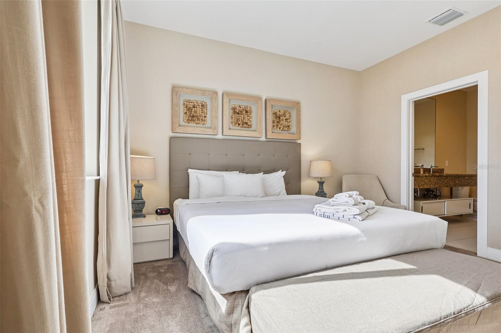 Welcome to this immaculate and exquisitely maintained 4-bedroom, 4 full bathroom, and 1 half-bath luxury townhome, perfectly positioned in one of Central Florida’s most sought-after locations. This exceptional residence showcases the perfect blend of elegance, comfort, and investment potential. Soaring high ceilings and a thoughtfully designed open-concept layout create a bright, expansive atmosphere ideal for both refined living and effortless entertaining. At the heart of the home, the designer-caliber kitchen has been beautifully updated with modern finishes, offering both style and functionality for everyday living or hosting guests. A tankless water heater enhances efficiency and provides continuous comfort. Step outside to your private balcony, where you can unwind while enjoying breathtaking views toward Disney's Animal Kingdom, delivering a truly magical and one-of-a-kind experience. Whether you’re seeking a high-performing short-term rental investment, an elegant vacation retreat, or a sophisticated second home, this property is completely turnkey and ready to impress. Property features: 4 Bedrooms, 4 Full Bathrooms, a Half Bath, soaring ceilings & open-concept design, Updated, high-end designer kitchen Energy-efficient tankless water heater, Private balcony from Primary Bedroom with a view, Ideal for Airbnb, investment, or second home. Ideally located just minutes from Walt Disney World, Margaritaville Resort Orlando, and a vibrant mix of shopping, dining, and entertainment, this is a rare opportunity to own a home that seamlessly blends luxury living with strong income potential.