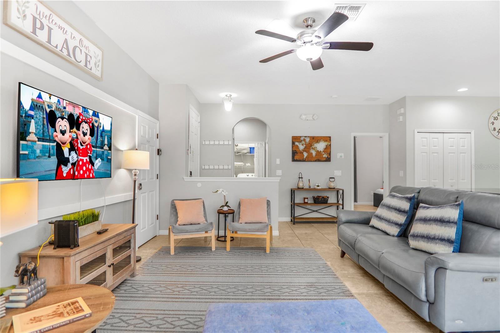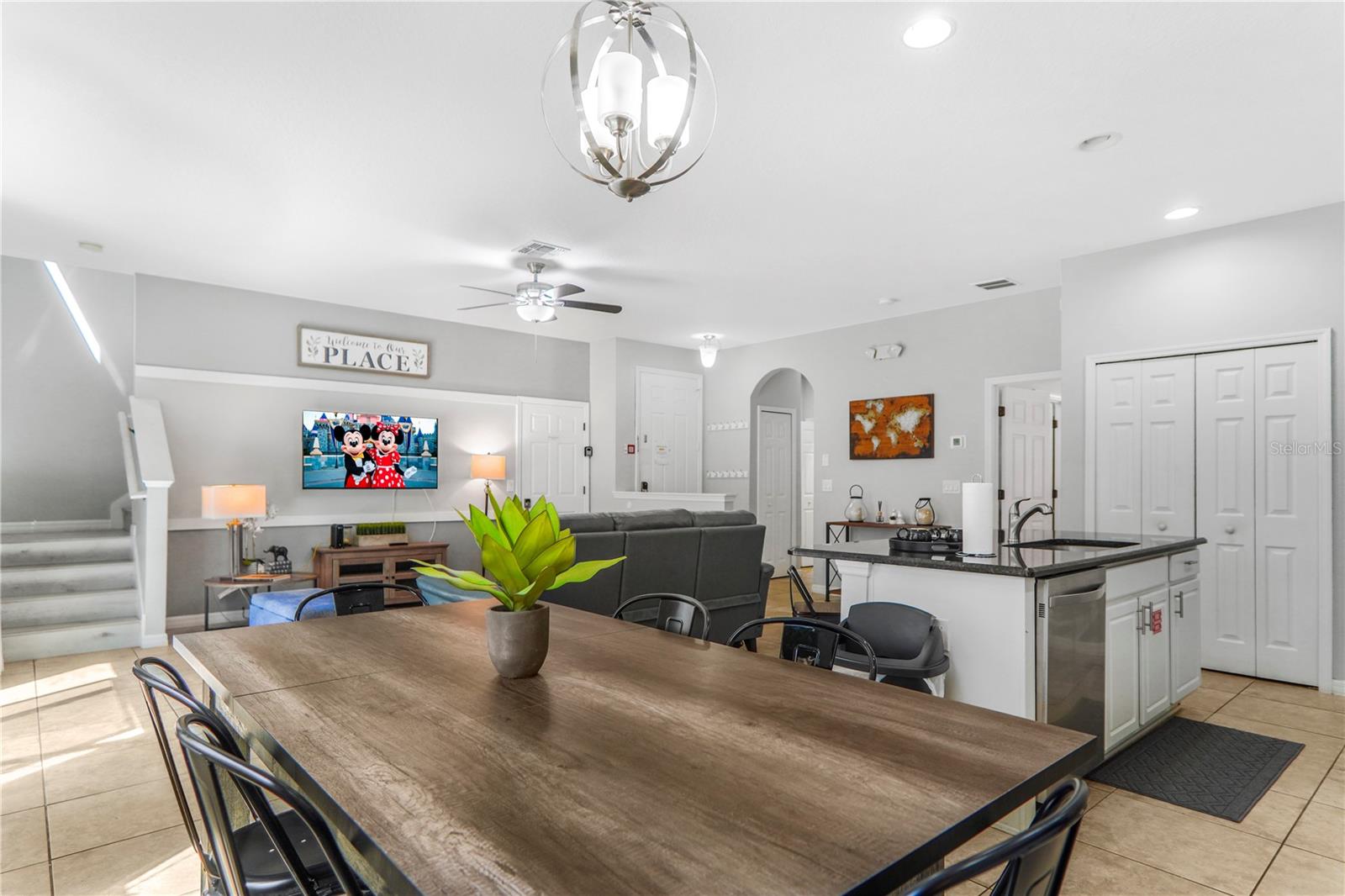 Beautifully upgraded end-unit townhome located in the sought-after BellaVida Resort, a 24-hour guard-gated community just minutes from Walt Disney World. This fully furnished 4-bedroom, 3-bathroom property offers a turnkey opportunity, featuring fresh interior paint, new flooring throughout, and updated, stylish furnishings. The open-concept layout provides a functional and spacious design, with one bedroom conveniently located on the first floor and three additional bedrooms upstairs, offering comfort and privacy for guests and family. Step outside to your own private heated pool, ideal for relaxing or enhancing short-term rental appeal. BellaVida offers an impressive selection of resort-style amenities, including a zero-entry pool and spa, a 6,700-square-foot clubhouse with fitness center, movie theater, game room, and business center. Residents and guests also enjoy basketball courts, sand volleyball, playgrounds, and scenic walking trails throughout the community. Ideally located approximately 15 minutes from Disney, near Shingle Creek Park, and within walking distance to shopping and dining, including Walmart. This property is perfect for short-term rental income, a vacation home, or a primary residence.