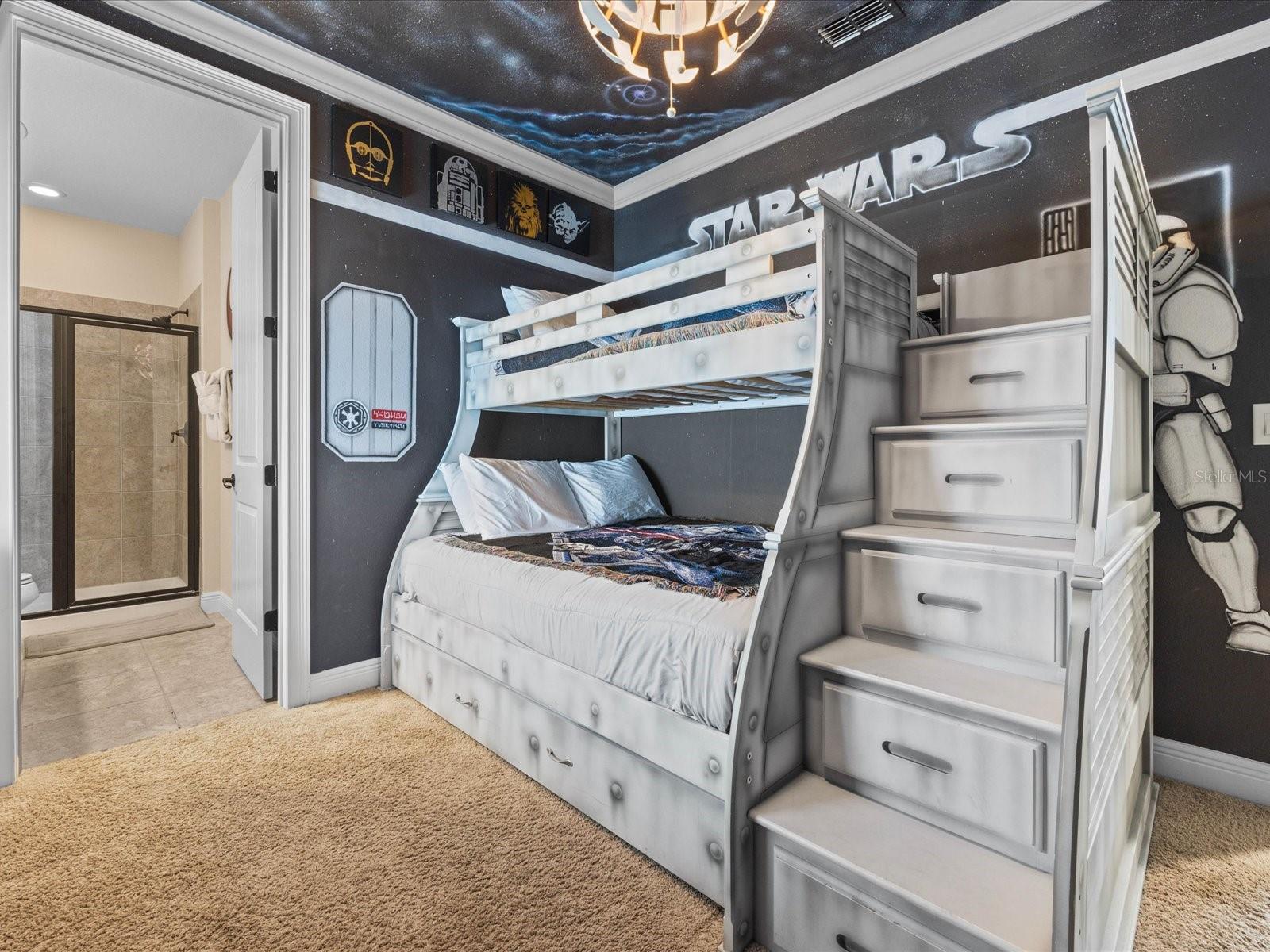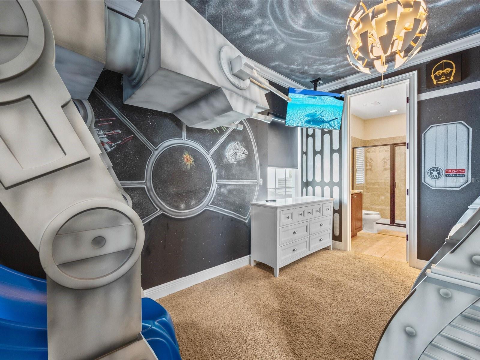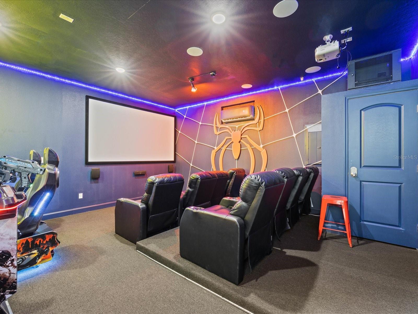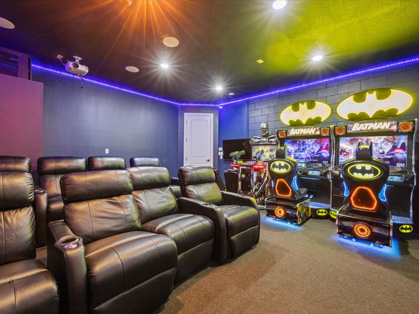 Welcome to this stunning, newly renovated, TURN-KEY Themed Vacation Home situated within the gated community of Reunion Resort. Over 40K in future bookings already reserved through the end of 2026. This exquisite property boasts a private pool and spa, as well as an array of incredible features and themes that will transport you to a world of adventure and imagination. As you enter the home, you are greeted by an open and bright living room area with a Pirates of the Caribbean theme throughout the first floor. The living room is complete with an HD TV and overlooks the fully equipped kitchen, featuring solid stone countertops and stainless-steel appliances. The dining area with seating for 8 completes the open concept layout. On the main floor, you will also find the large master bedroom with a king-size bed, en-suite bathroom with double sinks, a soaking tub, and a walk-in shower. Prior to making your way up the stairs, there is a fully converted state-of-the-art movie & arcade bonus room. This impressive space includes 8 theater-style chairs, a 120-inch projection TV, 2 Batman driving gaming consoles, a Terminator shooting game, and an Xbox gaming area. Upstairs, you will find the pub loft area, complete with a pool table, an oversized bar area, a large TV with neon lights, and another full-size gaming console for playing Golden Tee Golf and other classic games before hitting the course. The second floor features two professionally themed kid sanctuaries. The first is a Harry Potter World of Wizardry room with two full-sized bunk beds and a hidden slide that leads to the second theme bedroom. The second bedroom is a Star Wars inspired room with amazingly realistic armored transport décor and a bunk bed. Additionally, there are two more king suites, one of which has a walk-out balcony overlooking the stunning views of the golf course. Enjoy the resort lifestyle within the gated community of Reunion Resort, just minutes away from Walt Disney Parks, other major Orlando attractions, and some of the best beaches in the world. The resort itself offers 12 community pools, 3 signature golf courses (Palmer, Watson, Nicklaus), a multimillion dollar water park, several onsite restaurants, 2 golf pro shops, six hydro-grid clay tennis courts, a full-service spa, and a brand new miniature golf course. Financials are available upon request to anyone looking to make this an investment property. There are many options for rental management companies that we can provide more information on.