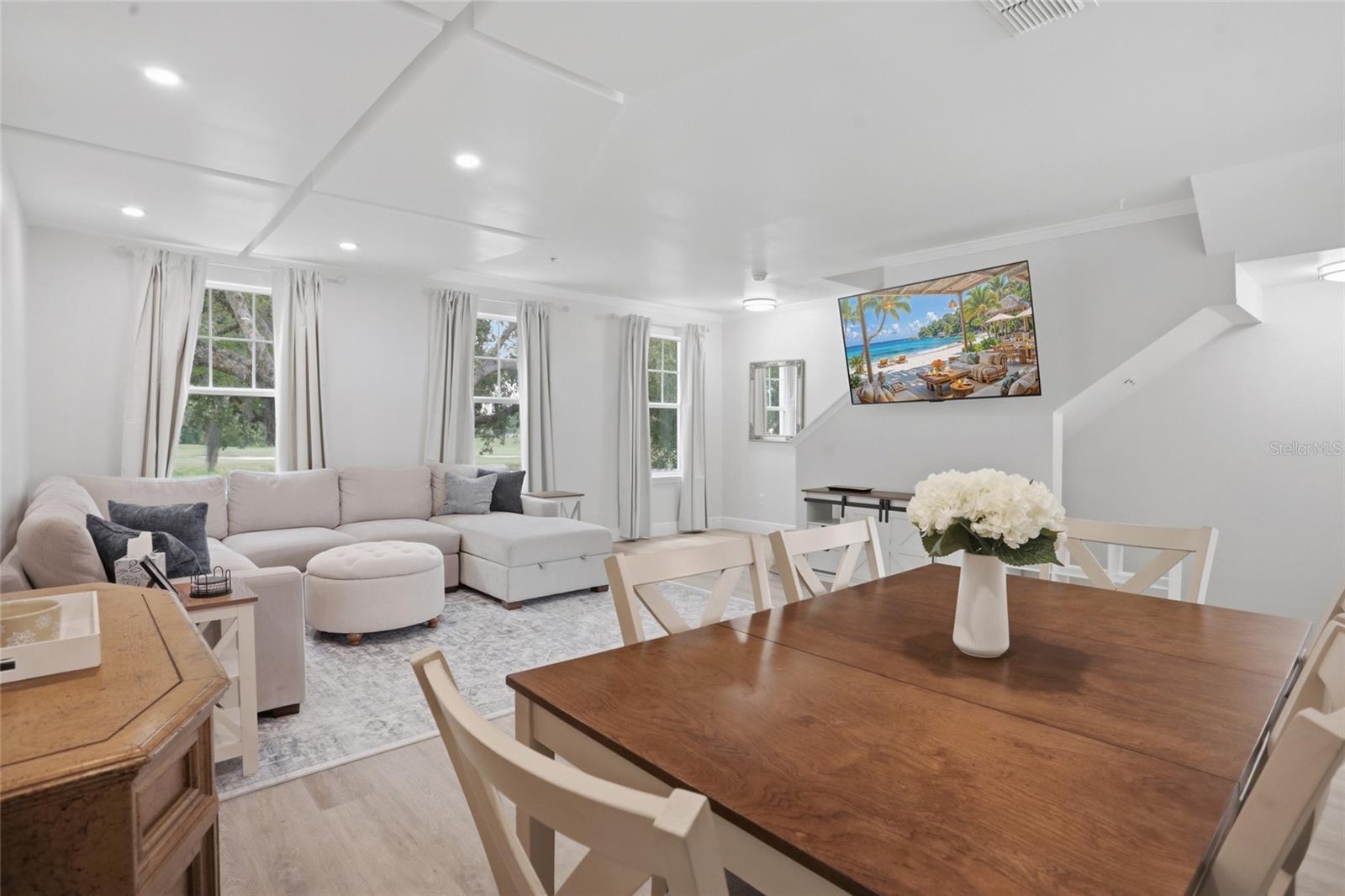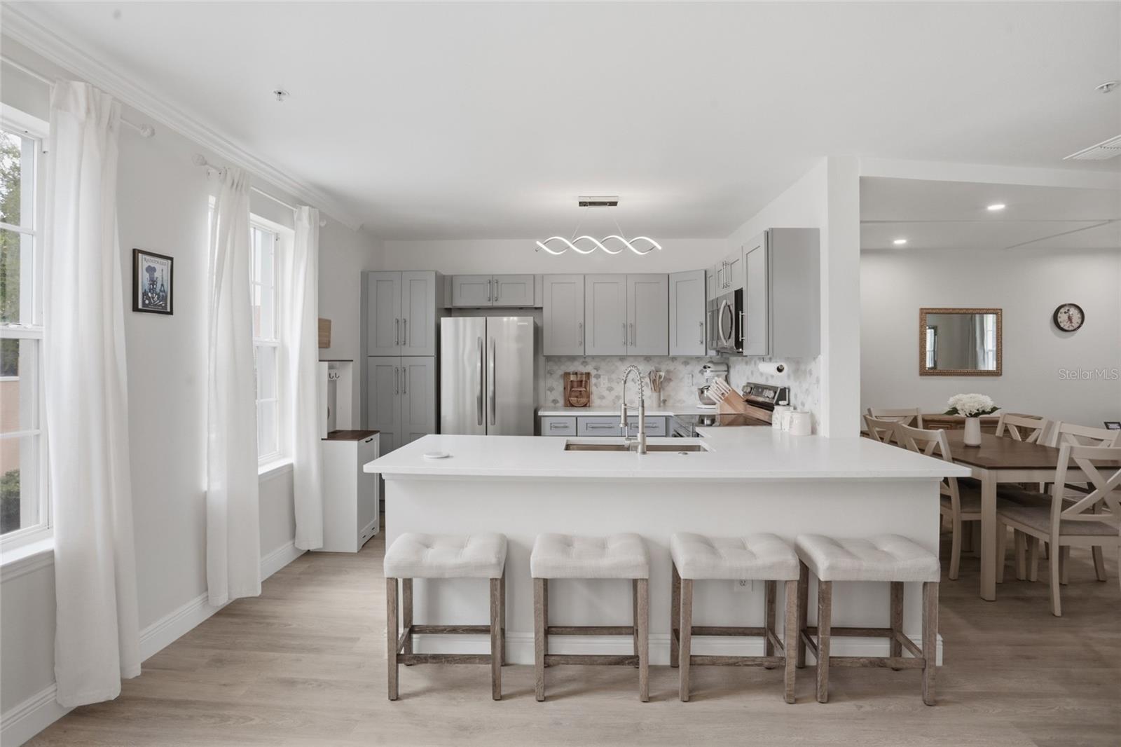 Positioned in the highly sought-after Siena at Celebration, this fully upgraded townhome at 1056 Waterside Drive offers a perfect blend of style, space, and location with beautiful golf course views right from your front door. Spanning three thoughtfully designed levels, this move-in-ready home welcomes you with a versatile first floor featuring a spacious office or second living area behind double French doors, an ideal place to work while enjoying serene views of the course. This level also provides direct access to the two-car garage, offering ample space for parking and storage. Upstairs on the second floor, the heart of the home unfolds with a bright and open living room filled with natural light, seamlessly flowing into the dining area. The entire level is upgraded with cohesive luxury vinyl plank flooring, creating a modern and inviting feel. The fully renovated kitchen is a standout, featuring brand-new cabinetry for extra storage, stainless steel appliances, a new sink, quartz countertops, a stylish backsplash, and updated lighting, all finished in neutral, timeless tones that appeal to any style. On the third floor, you’ll find all three bedrooms, each upgraded with LVP flooring and new ceiling fans. The primary suite is a true retreat, filled with natural light and complete with a walk-in closet and a beautifully upgraded en-suite bathroom featuring a new vanity, a modern mirror with built-in lighting, and a brand-new walk-in shower. Two additional bedrooms are located just across the hall and share a fully renovated bathroom with updated vanity and mirror, offering both comfort and functionality. Residents of Siena at Celebration enjoy access to a resort-style pool, clubhouse, fitness center, and playground. As a homeowner in Celebration, you’ll also have access to six additional community pools, sports courts, athletic fields, the renowned Celebration Golf Club, over 26 miles of scenic trails, the popular Celebration Unleashed Dog Park, and the Athletic & Recreation Complex. Just a short bike ride to Downtown Celebration, near AdventHealth Celebration, and Celebration Pointe, with quick access to 417 and Publix just minutes away, this location truly places you at the center of it all. You’re also only 10 minutes from Walt Disney World, making it easy to enjoy everything Central Florida has to offer. With Orlando International Airport just 25 minutes away and both Florida coasts within easy reach, convenience meets lifestyle in the best way. Don’t miss your opportunity to own this upgraded, light-filled home with golf course views in one of Celebration’s most desirable communities.