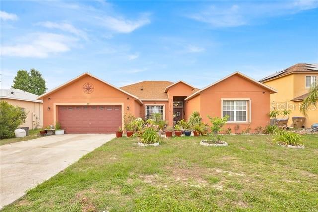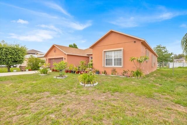 Welcome to this beautiful 4-bedroom, 3-bathroom residence, complete with a 2-car garage and offering 2500 square feet of living space. With plenty of room for entertaining, this could be your forever home.The large kitchen features wood cabinets and stainless steel appliances, creating a sleek and functional space for cooking and hosting. Tile flooring extends throughout the home, complementing the spacious rooms and walk-in closets designed to meet all your storage needs.The open floor plan is filled with natural light, enhancing the inviting atmosphere. Outside, a spacious backyard offers an ideal setting for gardening, entertaining, or simply relaxing under the Florida sun, with plenty of room for a pool. Located in the desirable Poinciana Village, this property provides peaceful living while being conveniently close to essential amenities. Great neighbors, and a definite gem!