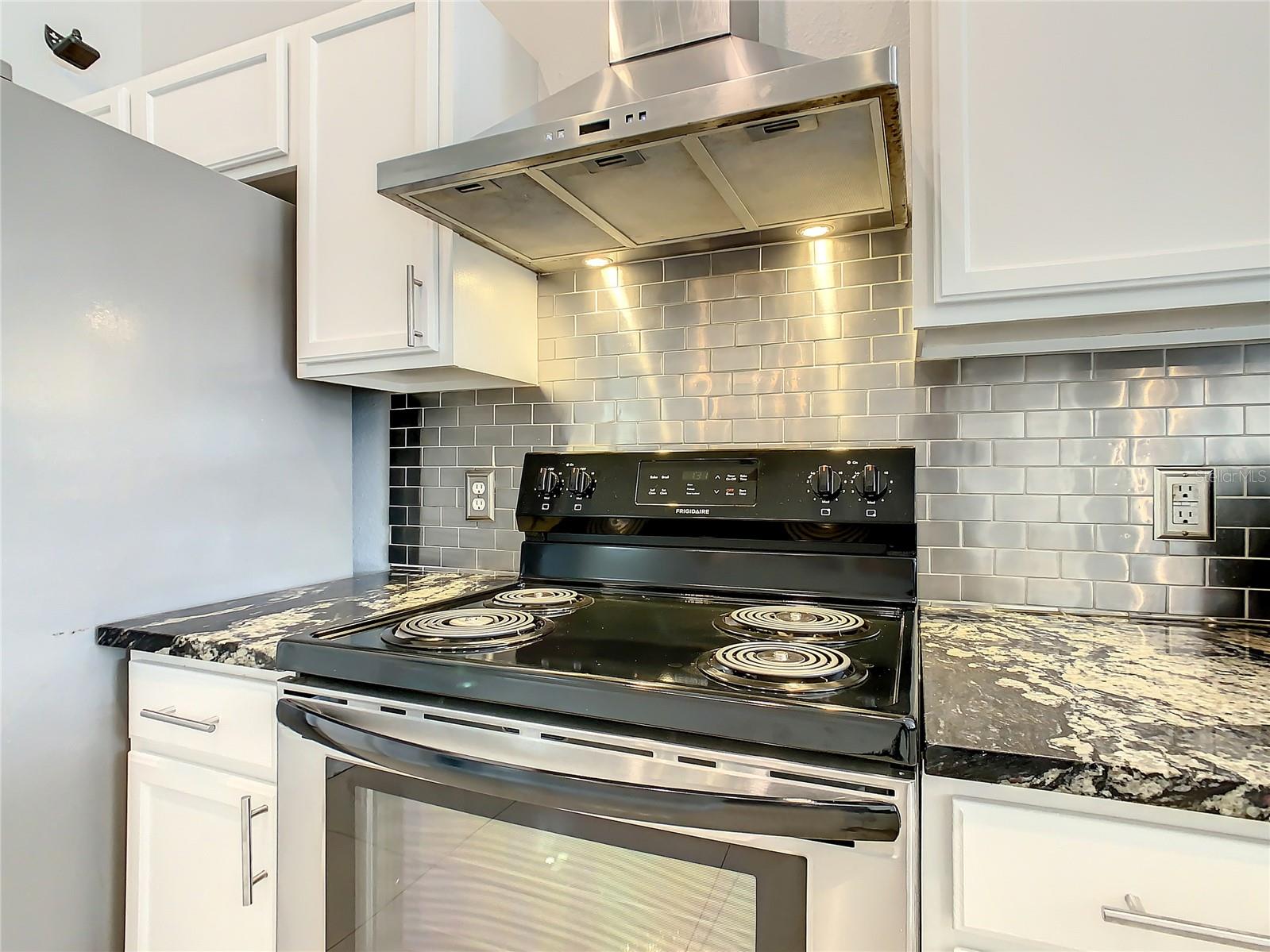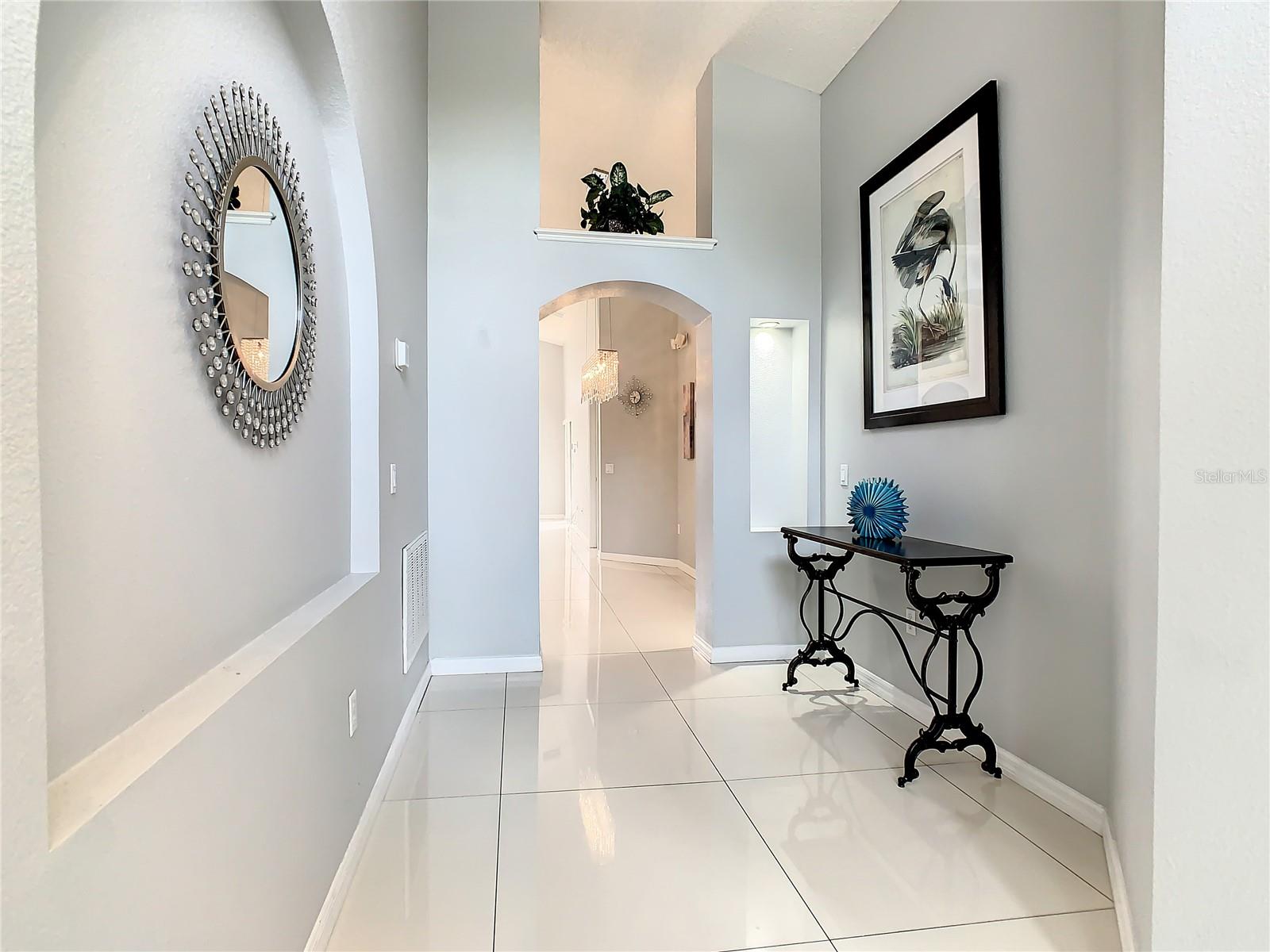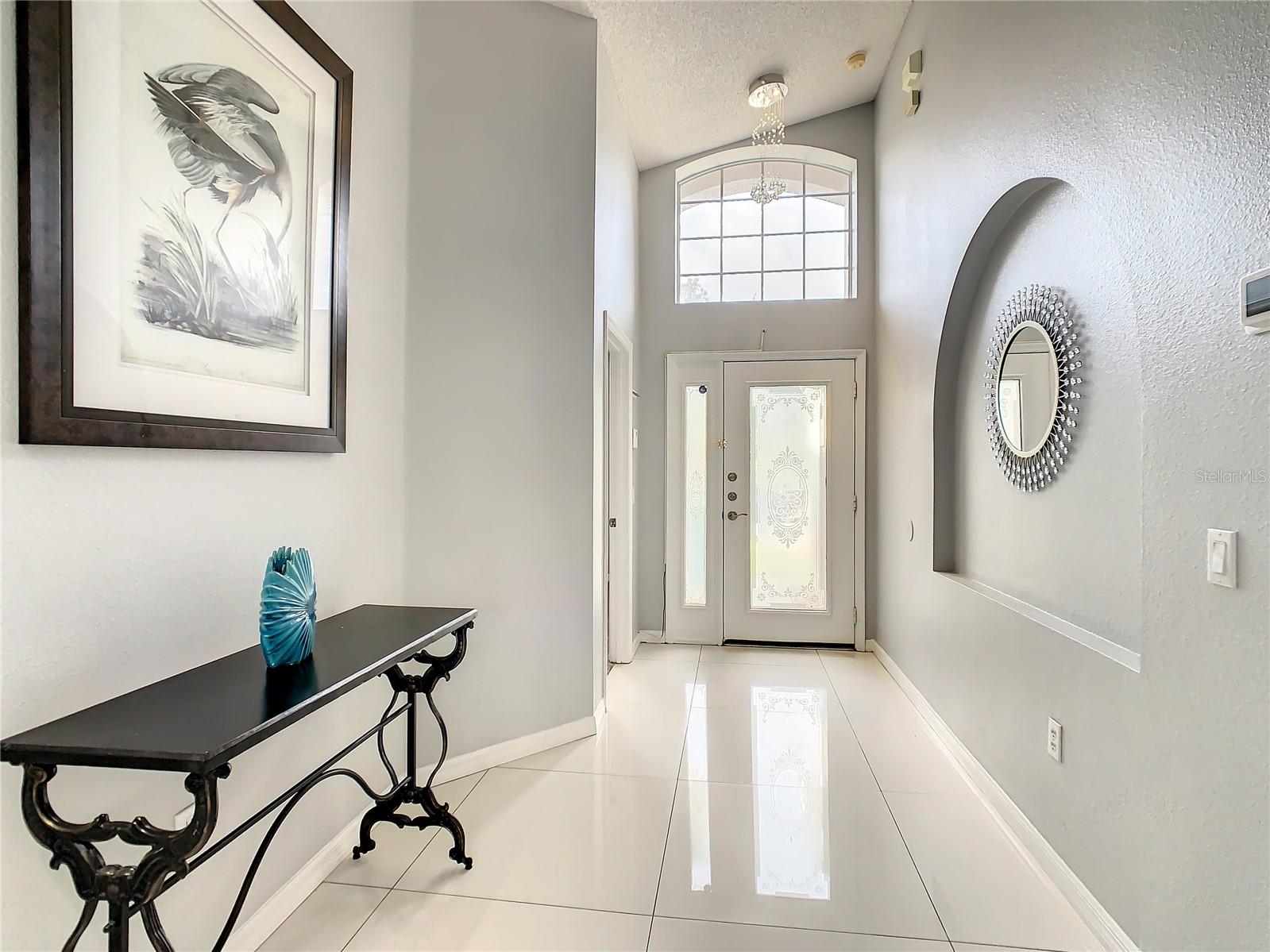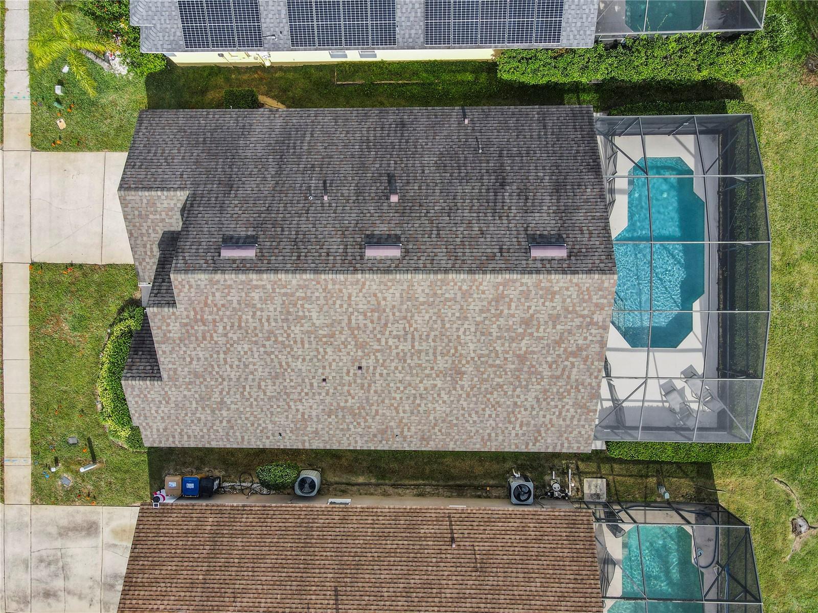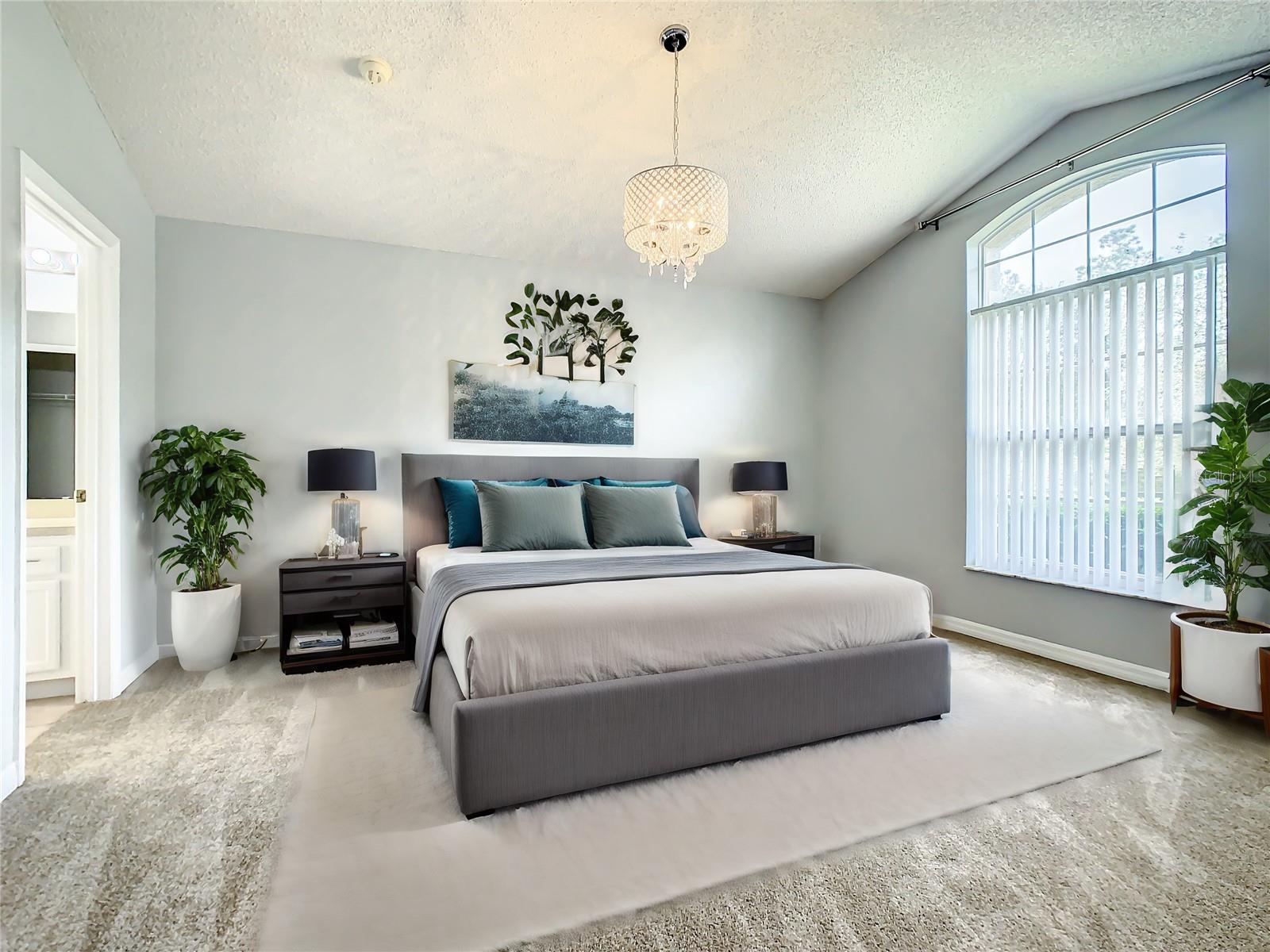 One or more photo(s) has been virtually staged. Meticulously maintained and updated pool home showcases Florida living at its finest. With a new roof in 2017, new hot water heater in 2018 and a new high efficiency Trane A/C unit with heat pump in 2023 this residence boasts an array of high-quality upgrades and a prime location in proximity to the renowned Disney Parks, upscale shopping, and exquisite dining experiences. Step inside to discover a thoughtfully designed floor plan that harmoniously combines modern elegance with functionality. Vaulted ceilings seamlessly connecting open living spaces, ideal for both everyday family life and the potential for a lucrative vacation rental venture. As you enter, be greeted by the sophisticated allure of high-polished 36x36 Kertiles porcelain tile flooring that adorns the spacious foyer, dining room, kitchen, and family room, setting a tone of refined luxury. The intelligently crafted split floor plan offers privacy and convenience, featuring two bedrooms with en-suite bathrooms—one situated at the front and the other at the rear. Newly installed plush carpeting graces all four bedrooms, enhancing comfort and style. The fully renovated kitchen showcases contemporary upgrades. Dark Brazilian granite countertops complement the stylish backsplash, harmonizing flawlessly with stainless steel Cavaliere range hood and Whirlpool appliances, including a French door refrigerator. The kitchen exudes modernity with new cabinet hardware, a pull-down spray Moen faucet, and a dark dual sink that adds a touch of sophistication. This home is adorned with chic crystal light fixtures thoughtfully placed throughout, accentuating its inherent beauty. Step outside to the private screened pool area with plenty of space to enjoy the Florida sunshine or relax under the covered patio, complete with a ceiling fan for added comfort, while lush hedges envelop the screen enclosure, providing an extra layer of privacy to enjoy moments of serenity and leisure.