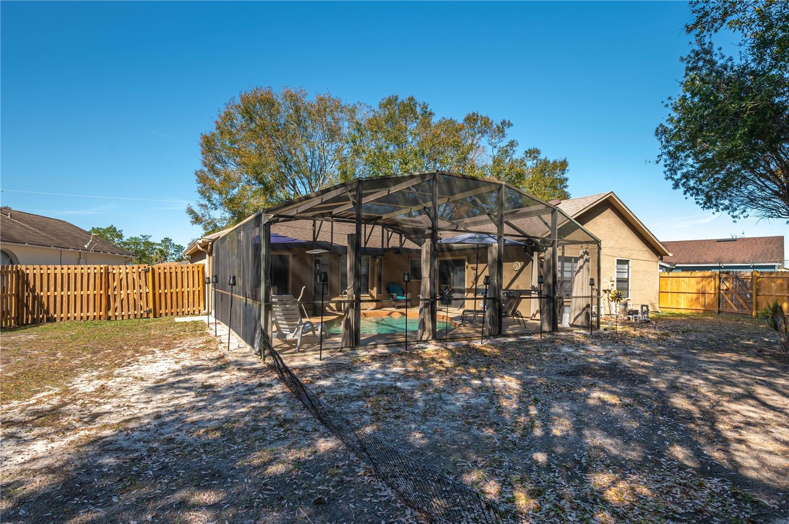 Welcome to this beautiful 3-bedroom, 2-bathroom pool home, offering the perfect combination of comfort and style. Nestled in a desirable neighborhood, this property is a true gem, designed for both relaxation and entertainment. The roof was replaced on September 27, 2021. Step inside and immediately feel at home with an open and airy floor plan that seamlessly connects the living, dining and kitchen areas. The spacious living room features large windows, ceiling fan and has been competely paint inside, creating a bright and welcoming atmosphere. The kitchen has modern appliances, ample counterspace and a breakfast bar, perfect for casual meals. The master suite is a tranquil retreat, complete with a private en-suite and plenty of closet space. Two additional well-sized bedrooms give versatility for family, guest, or home office. The real highlight of this home is the inviting backyard oasis. Step outside to your very own private pool with a screen enclosure, ideal for cooling off on warm days or hosting poolside gatherings. There is a new pool pump and pool cleaner. Additional features of the home are the hurricane shutters for the entire home, a two-car garage as well as a excellent location with easy access to local shops, restaurants, schools and major highways. Don't miss out on this great opportunity to own this stunning pool home in a fantastic location.
