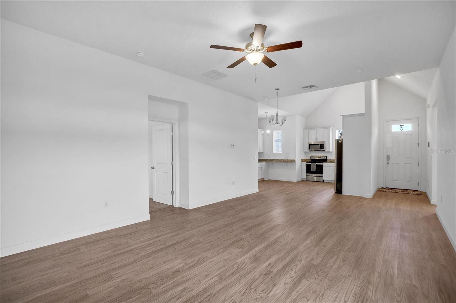 The sellers have already relocated and are prepared to make a deal. Don’t miss this opportunity. Only 32 miles to Disney World! 2020, 3 bedroom, 2 bath home. Modern design being offered with upgrades including long life roof. Huge lot. Ceiling fans, engineered hardwood floors and carpet in bedrooms. There is an inside laundry room off kitchen. Stainless steel appliances long with 42 in cabinets and granite counter tops. 10 foot ceilings, extended driveway and much more. Poinciana Community Park, just a few blocks away has a 0.75 mile paved walking path, a playground, baseball fields, a cricket pitch and basketball parks. There are also multipurpose fields, a pavilion that can be rented and league play. Additionally, a dog park features separate areas for large and small dogs, agility equipment, water fountains and shaded areas. Neighborhood Conveniently located near schools, parks, restaurants and shopping. Convenient location to Tampa and Orlando airports as well as Major attractions. Centrally located to east and west coast beaches.