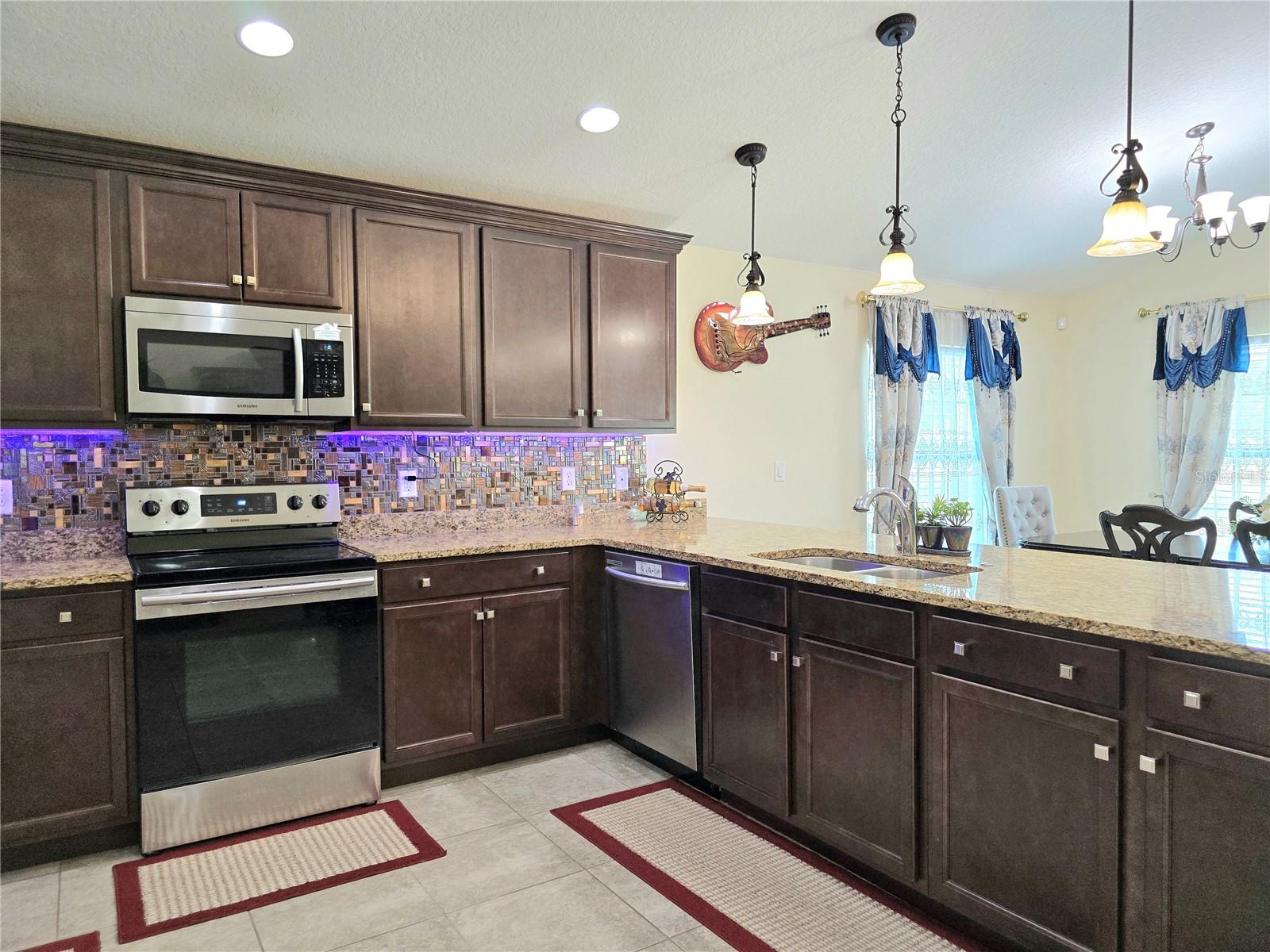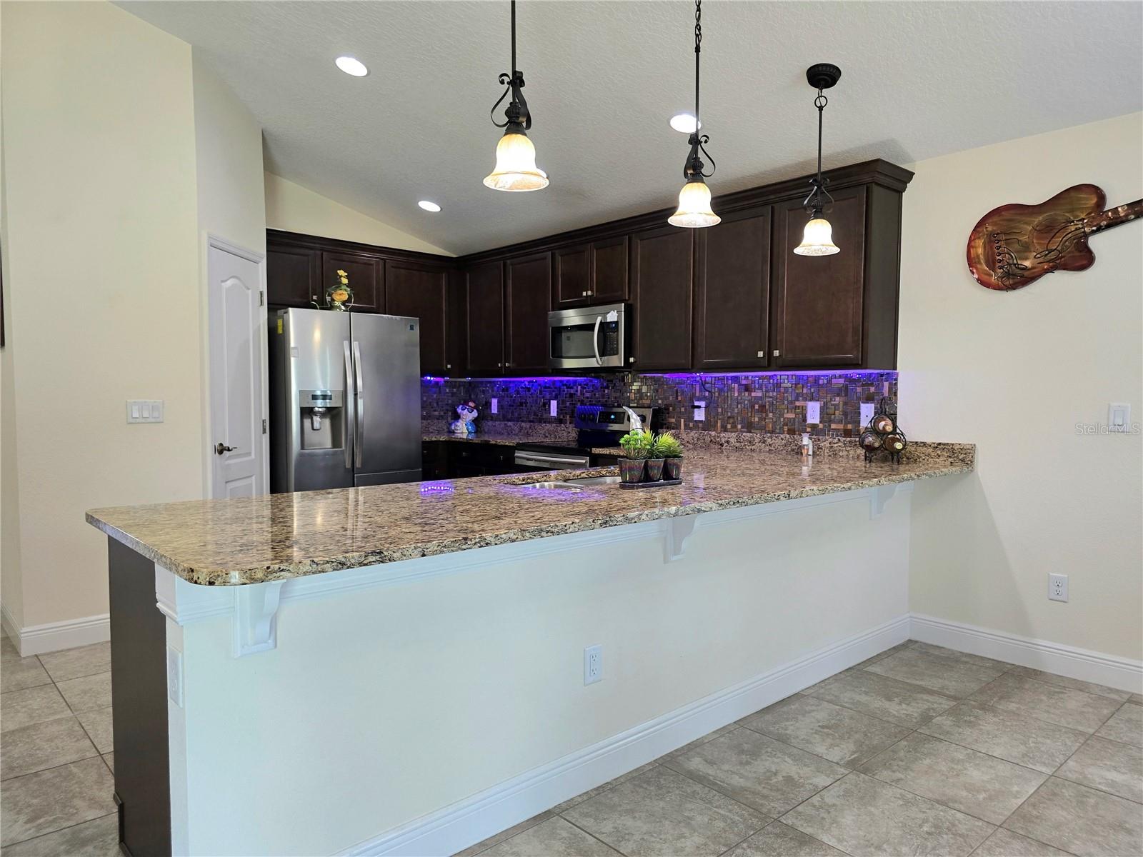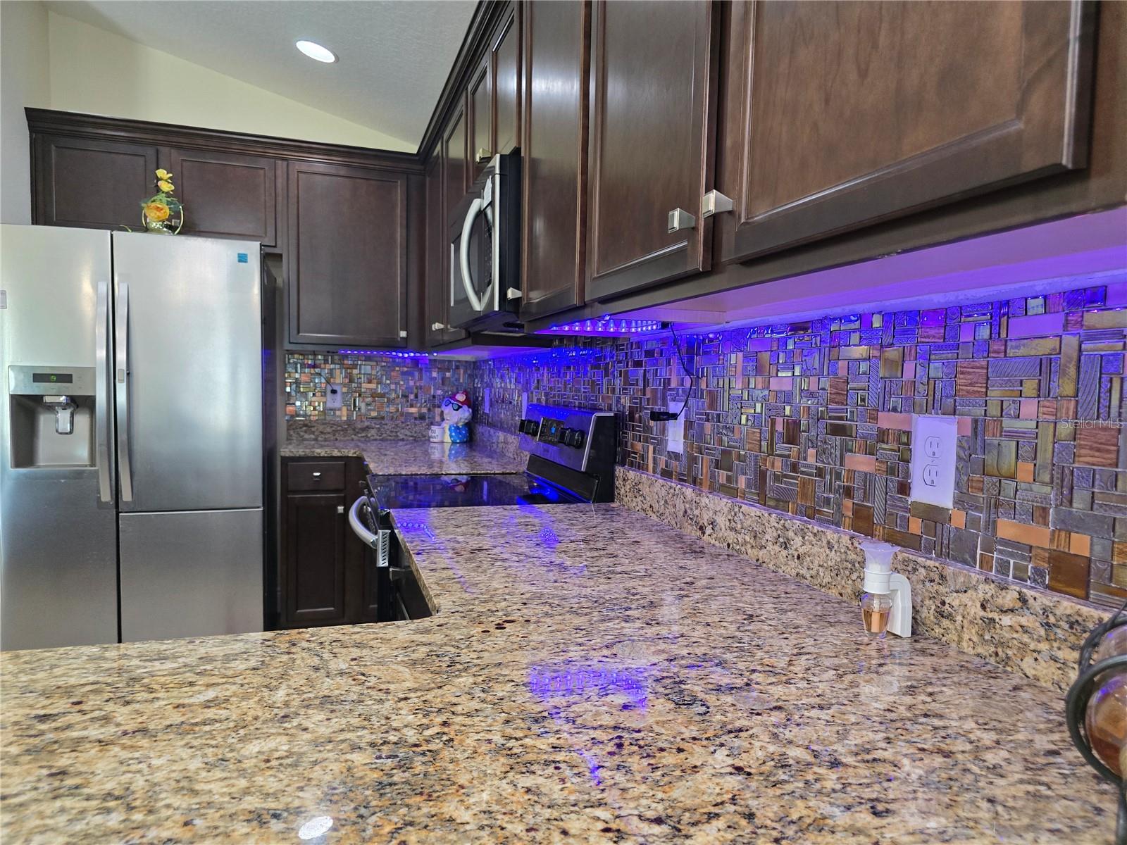 Built in 2019, this spacious FULLY FURNISHED 4-bedroom, 2-bathroom home sits on over a .25 lot with no rear neighbors for added privacy. Inside, you'll find granite countertops throughout, a bright kitchen, and a dedicated laundry room with washer and dryer included. The primary bathroom features a walk in shower and dual vanity. Hurricane shutters provide added peace of mind. Located just 3 miles from Merrill Gardens at Solivita Marketplace—offering restaurants, a gym, Sprouts supermarket, and more—and only 10 minutes from HCA Florida Poinciana Hospital. Easy access to I-4 makes commuting to Tampa or Orlando a breeze. Call today for a private showing, THIS ONE WON'T LAST!!!
