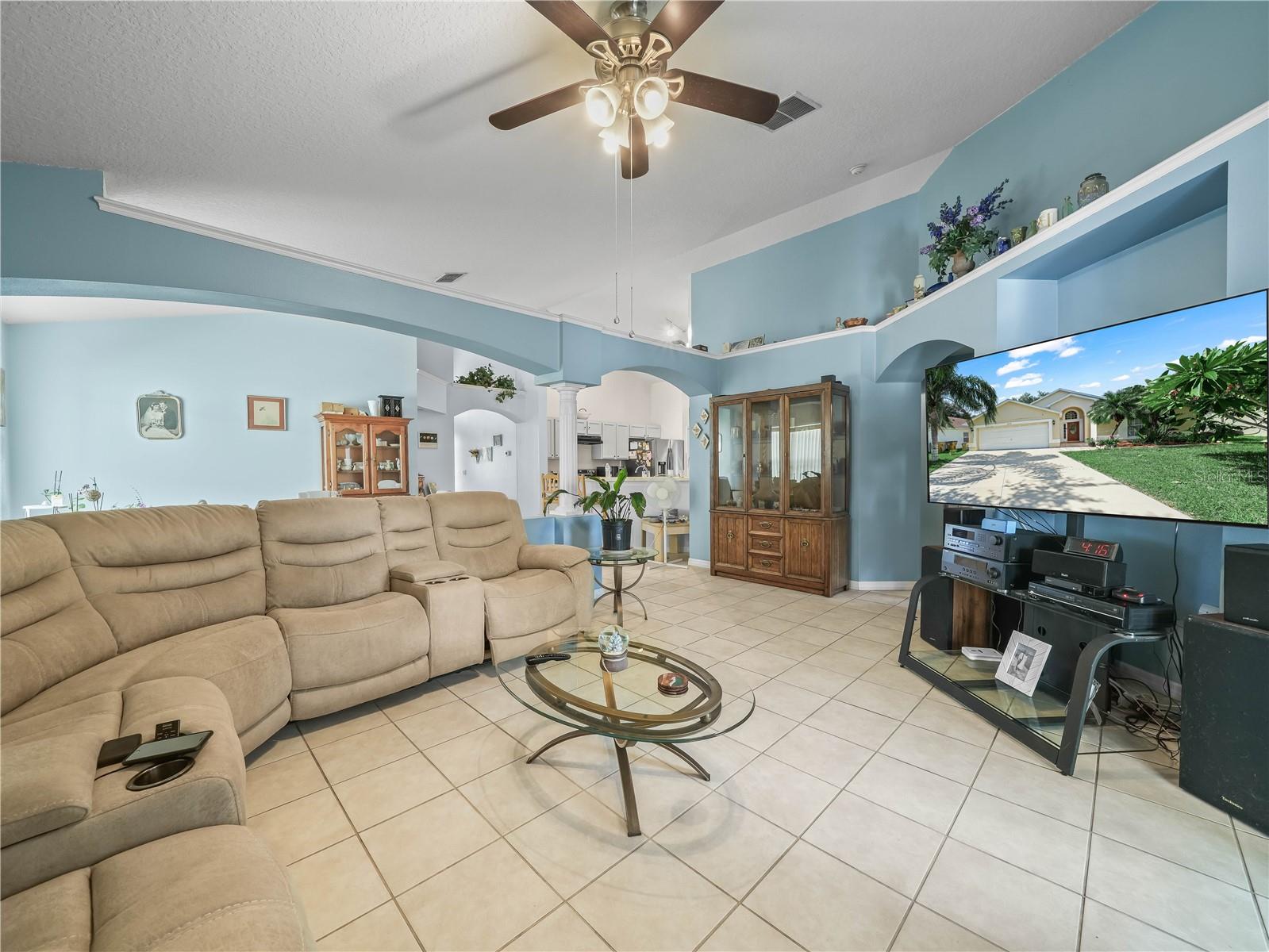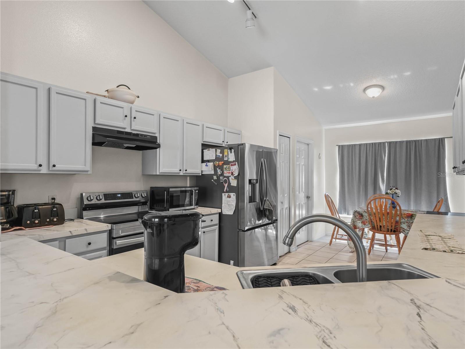 Welcome to this beautifully maintained 4-bedroom, 2-bathroom home located in the highly desirable Remington Master Association in Kissimmee, Florida neighboring the beautiful Remington Golf Club. This inviting residence boasts a thoughtfully designed layout and a serene backyard retreat, complete with a spacious covered porch — perfect for relaxing or entertaining guests. As you step inside, you’re greeted by soaring vaulted ceilings and an open-concept floor plan that creates an airy, welcoming atmosphere. The expansive living room seamlessly flows into the dining area, making it ideal for gatherings and family time. The kitchen, conveniently located just off the dining space, has been tastefully updated with modern gray cabinetry, faux marble counter-tops, and a cozy breakfast nook, offering both style and functionality. The primary suite features ample natural light, generous closet space, and a private en-suite bathroom. Two additional bedrooms plus an office/den/library and a second full bath provide comfortable accommodations for family or guests. Located in the heart of Kissimmee, this home offers unmatched convenience for commuters, with quick access to the Florida Turnpike and major thoroughfares. Kissimmee is a vibrant city in Osceola County, just south of Orlando, and is known for its proximity to world-famous theme parks, including Walt Disney World, Universal Studios, and SeaWorld. In addition to its prime location, the Remington community provides a range of amenities including walking trails, golf courses, playgrounds, and more. You'll also find nearby shopping centers, restaurants, schools, and the charming Celebration area, which offers a delightful mix of small-town charm and modern convenience — all just a short drive away. Don’t miss this opportunity to own a move-in-ready home in one of Central Florida’s most desirable communities!