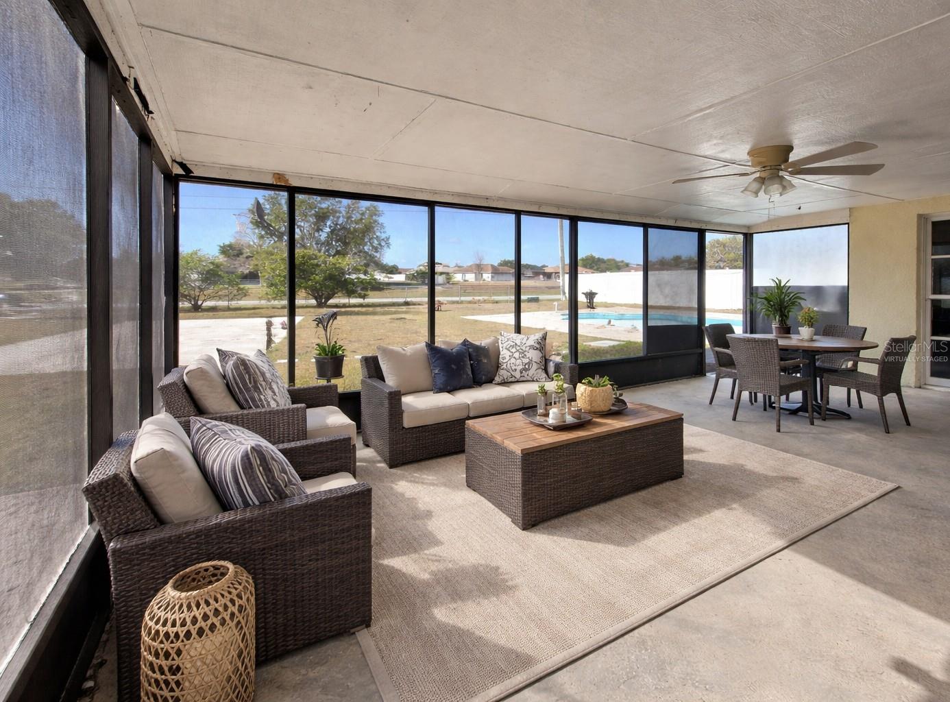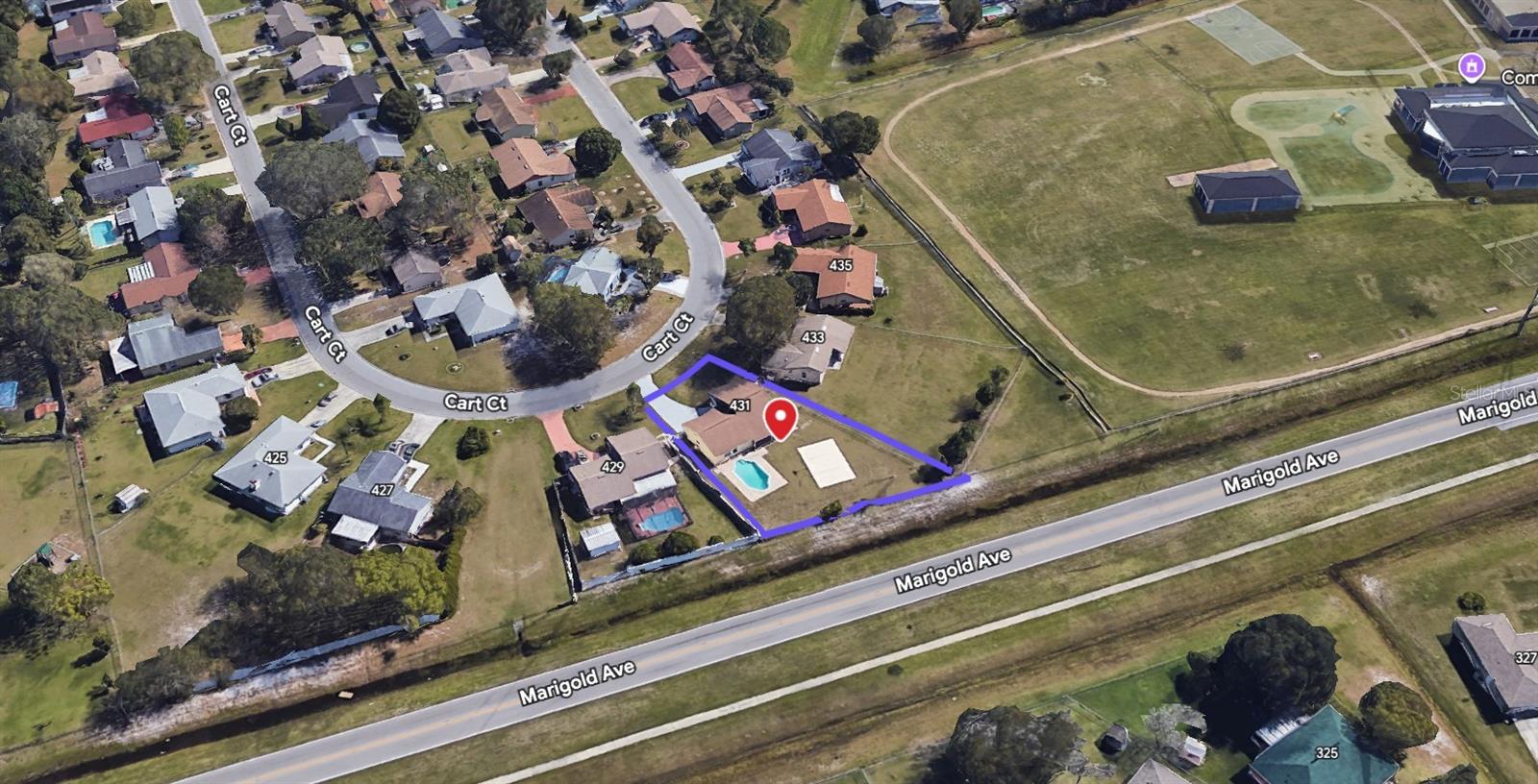 Welcome to 431 Cart Ct in Kissimmee, Florida, located in Polk County, a quiet and established neighborhood where homeowners take pride in their properties. This well-maintained home offers comfort, space, and an outdoor lifestyle that is hard to find. HOA includes WIFI and CABLE. The home features three bedrooms and two bathrooms with a functional layout and no carpet anywhere. Large porcelain tile flows throughout the entire house, creating a clean and modern feel. The kitchen and bathrooms feature matching granite countertops, and all appliances are included, along with the washer and dryer. A reverse osmosis water system is already installed, and the water heater is only two years old. Central air conditioning and ceiling fans provide year-round comfort, and security cameras are included for added peace of mind. The living room is enhanced by a beautiful three-dimensional feature wall that adds character and a modern design touch. The primary bedroom is spacious and can easily accommodate a full king-size bedroom set with room to move. It includes a very large walk-in closet and an en suite bathroom with a tiled walk-in shower. Step outside to enjoy a backyard designed for relaxation and entertainment. The property sits on a large lot with a very spacious fenced-in yard. The chlorine inground pool and private basketball court make this home ideal for hosting gatherings or enjoying Florida living year-round. A covered, screened-in porch overlooks both the pool and basketball court, creating the perfect space to unwind. A mature tree in the front yard provides shade and adds to the home’s strong curb appeal. Additional features include a one-car garage and a large driveway with ample parking. The sellers are motivated, making this a great opportunity. The location offers convenient access to major roadways including US-17/92, US-192, Florida’s Turnpike, and Interstate 4. Orlando International Airport is approximately 20 to 30 minutes away. Shopping, dining, and everyday conveniences are close by, along with medical facilities such as AdventHealth and HCA Florida hospitals. World-famous attractions including Walt Disney World, Universal Studios, and SeaWorld are also within a short drive. This move-in-ready home offers space, upgrades, and a lifestyle that blends comfort, privacy, and convenience. Schedule your private showing today.