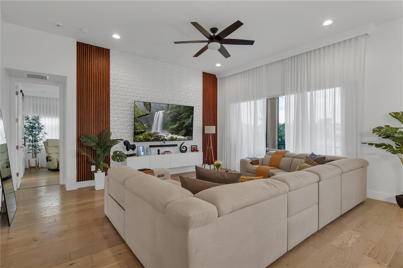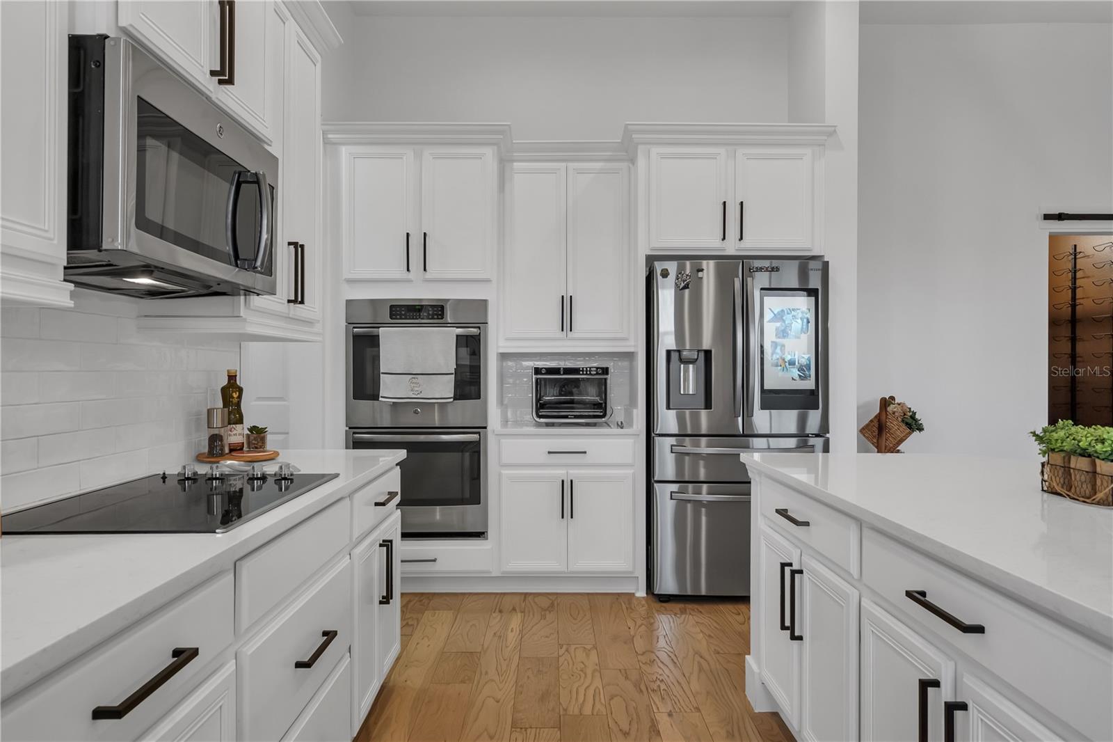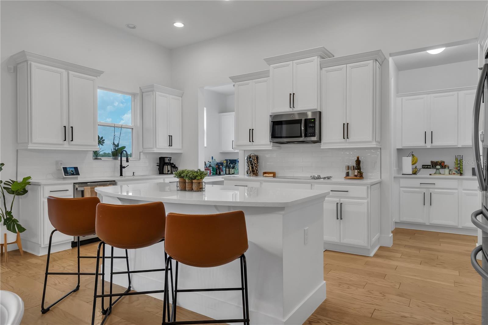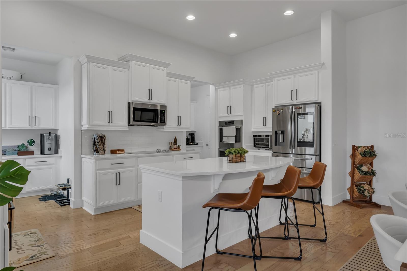 Huge price reduction for this Magnificent property located in the fabulous gated Bella Lago Resort, the property comes with its own private boat dock ramp and located on the chain of lakes, access to many wonderful water areas is possible, the property has real hardwood Floors flooring throughout, recently completely re-modeled. Quartz surfaces throughout, incredible open plan kitchen overlooking water view with center island, solid quartz surfaces. Multiple quartz work surfaces. Full length cabinets with oversize crown molding. Multiple inbuilt ovens and inbuilt ceramic hob. Walk in wine cellar with fitted wine racks and 2 wine coolers glass barn style sliding door. Utility room with French deep porcelain sink and washer dryer and multiple storage cabinets. Walk out balcony on first floor led recessed lighting, high quality cabinets with crown molding tops, built in wine cellar, Large screened Florida room with Art Deco cooling ceiling fans and facing the water Too many upgrades to list, the property interior was professionally designed and undertaken.