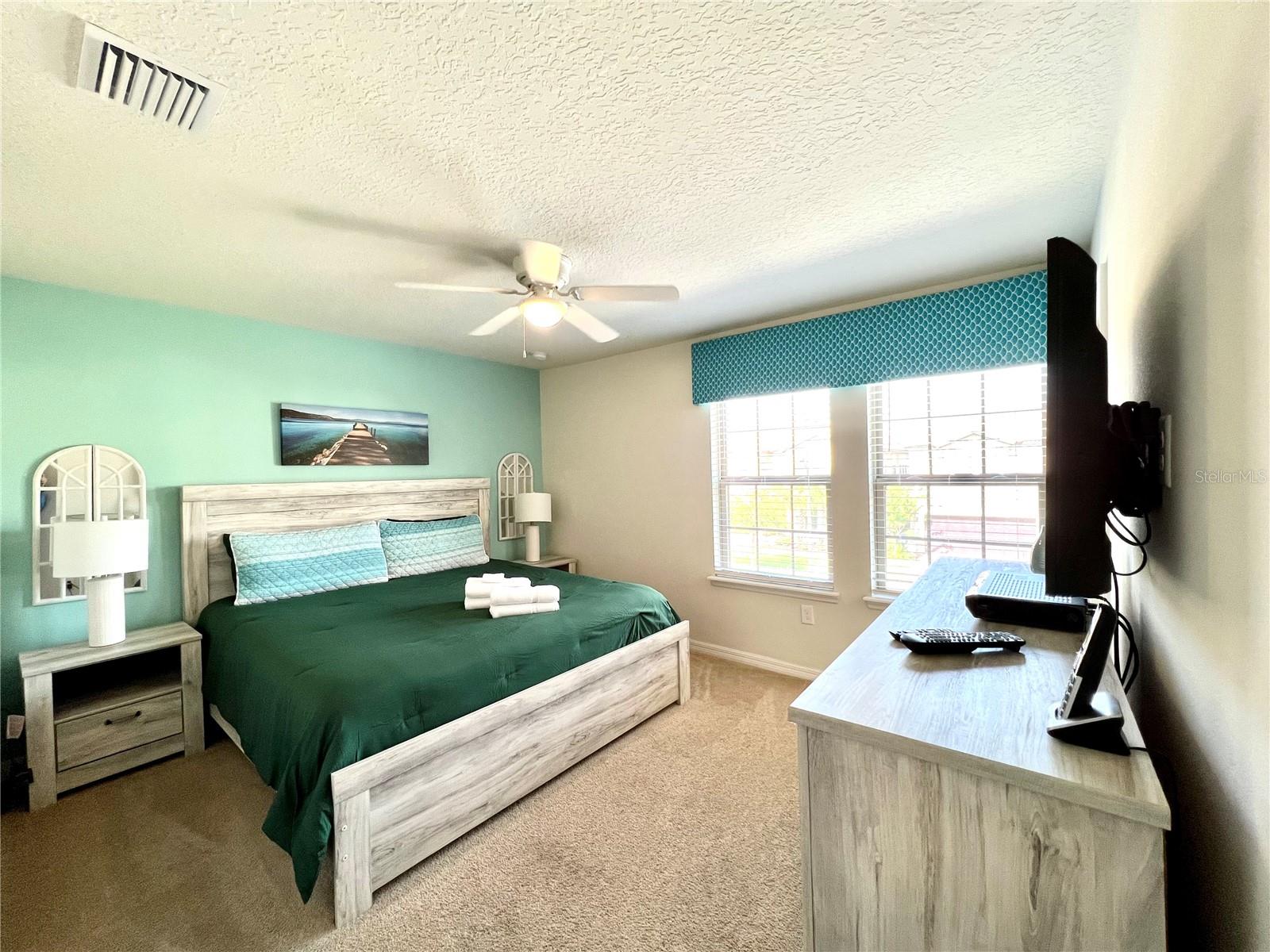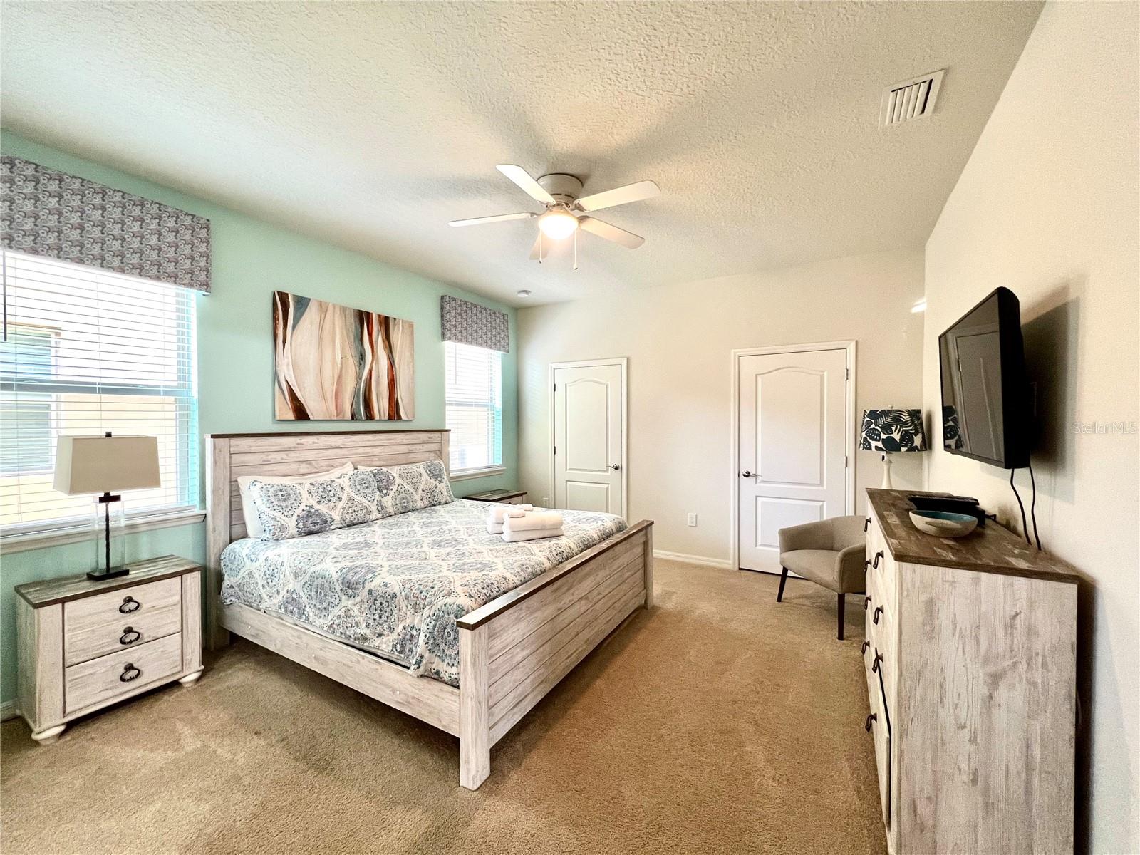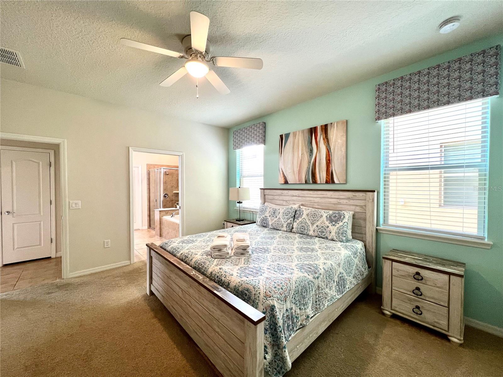 Motivated seller. Please click the Virtual tour link to view a video tour. This tastefully furnished 8 Bedroom, 6 Bath vacation rental property with a beautiful heated pool is in desirable resort style community Windsor at Westside, which is only about 8 miles away from Disney maintenance, with a luxury clubhouse, features heated pool and spa, lazy river, water park, fitness center, game room, basketball court, guard gated entrance. One master suite is downstairs and all 5 bedrooms have their own bathroom, plus a loft in second floor. Please schedule a showing today.