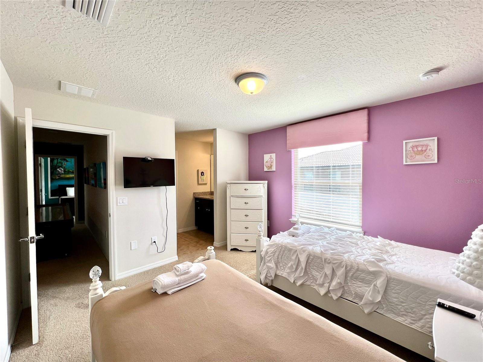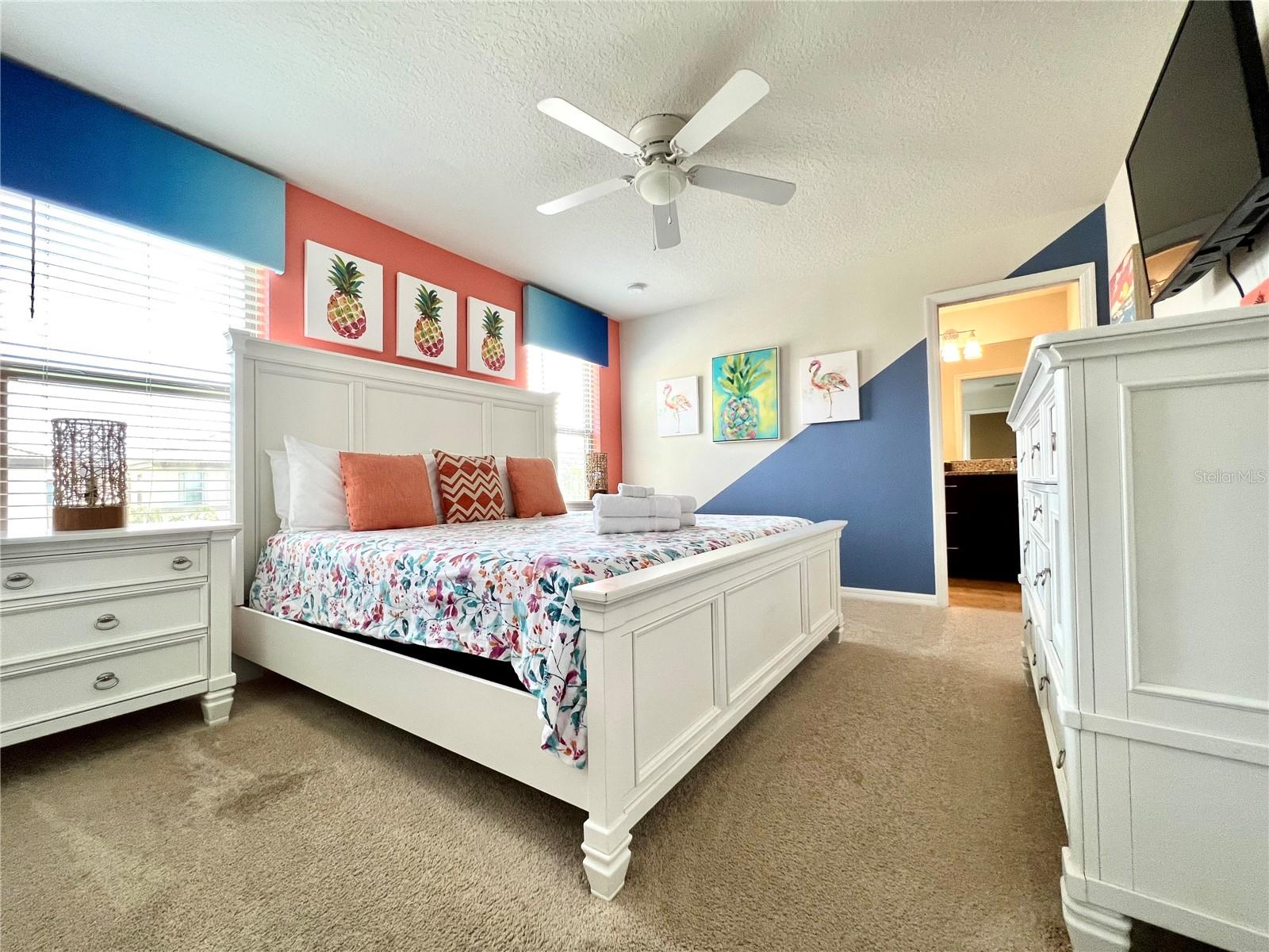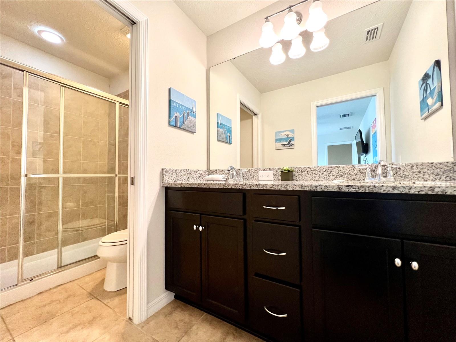 Motivated seller. Please click the Virtual tour link to view a video tour. This tastefully furnished 8 Bedroom, 6 Bath vacation rental property with a beautiful heated pool is in desirable resort style community Windsor at Westside, which is only about 8 miles away from Disney maintenance, with a luxury clubhouse, features heated pool and spa, lazy river, water park, fitness center, game room, basketball court, guard gated entrance. One master suite is downstairs and all 5 bedrooms have their own bathroom, plus a loft in second floor. Please schedule a showing today.